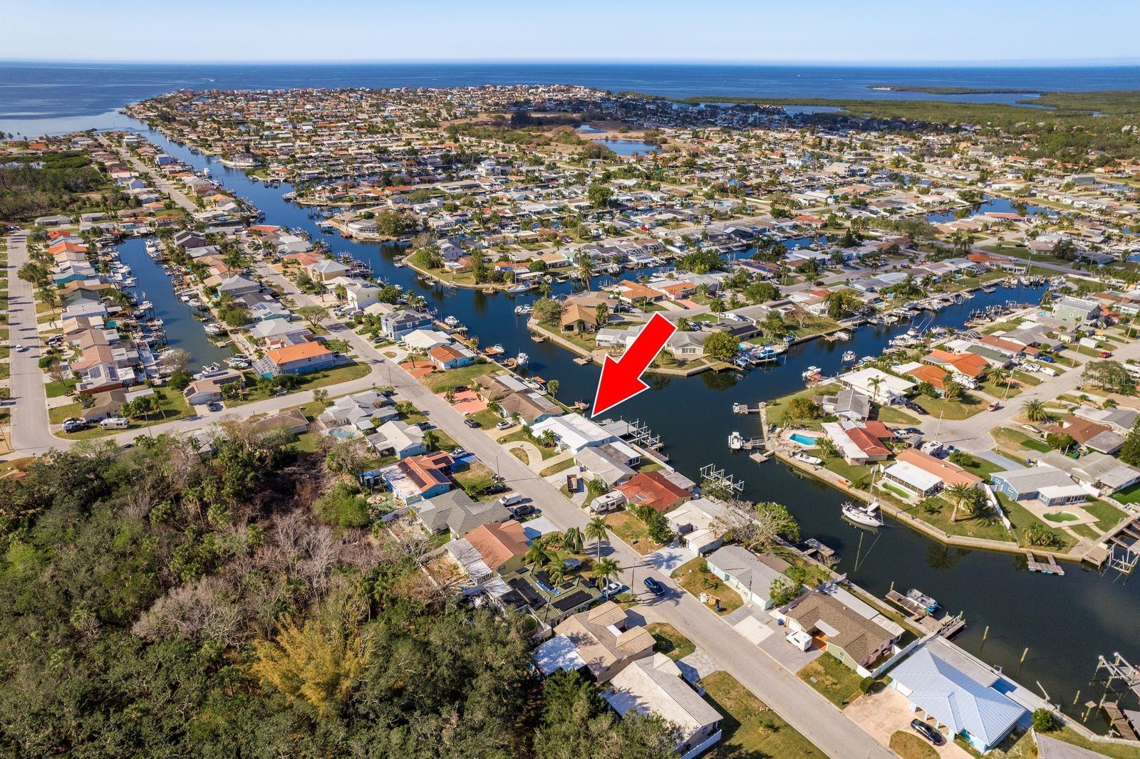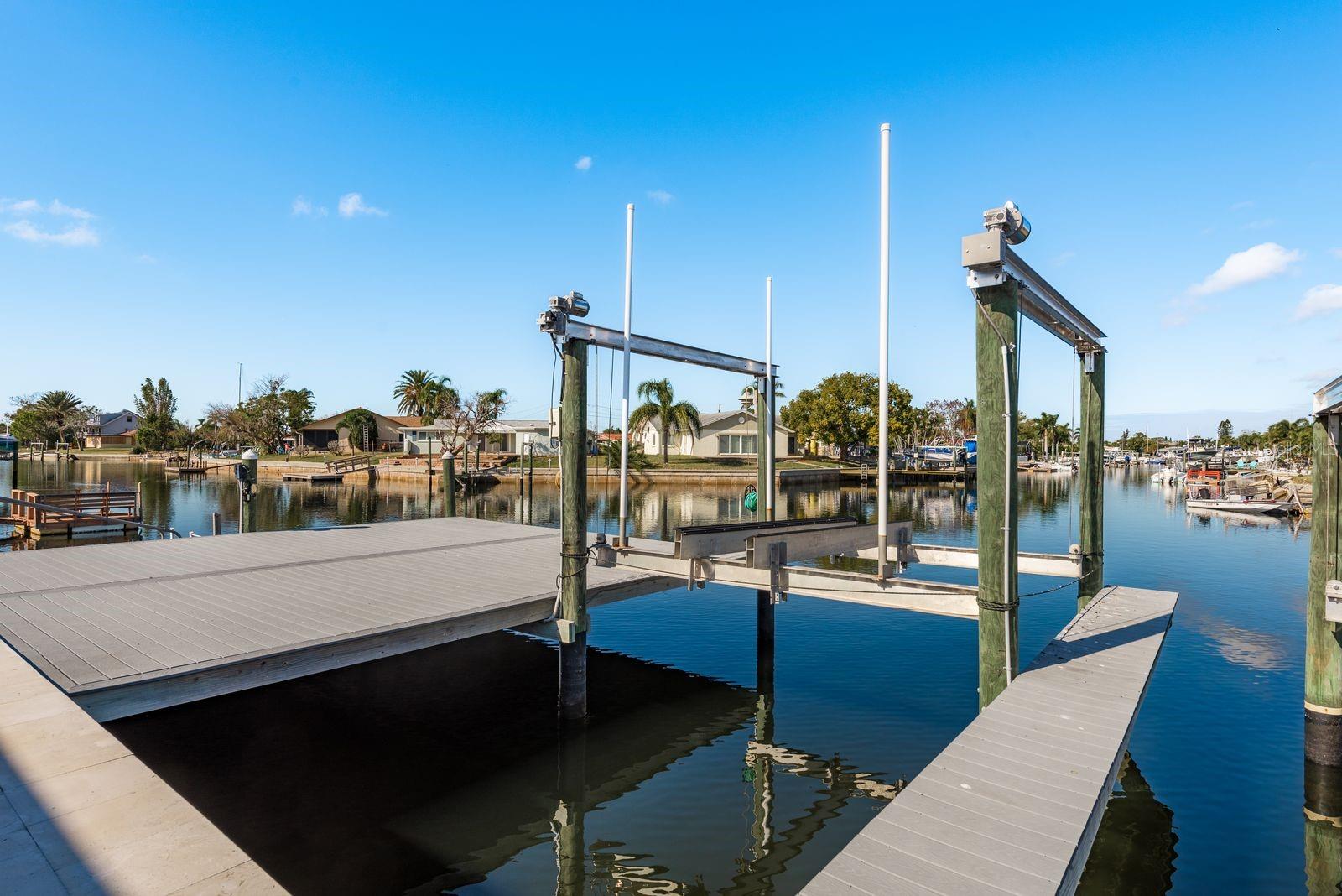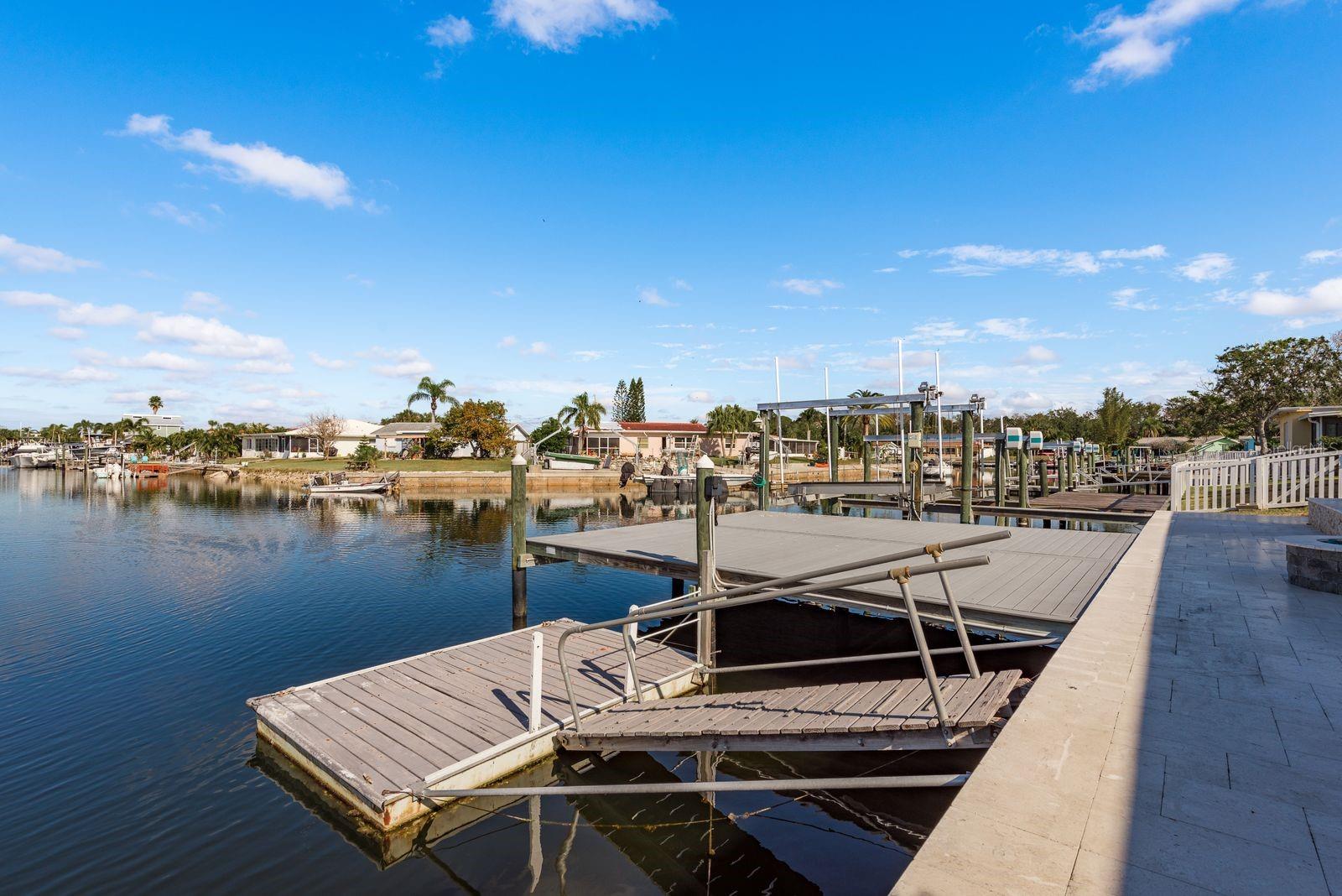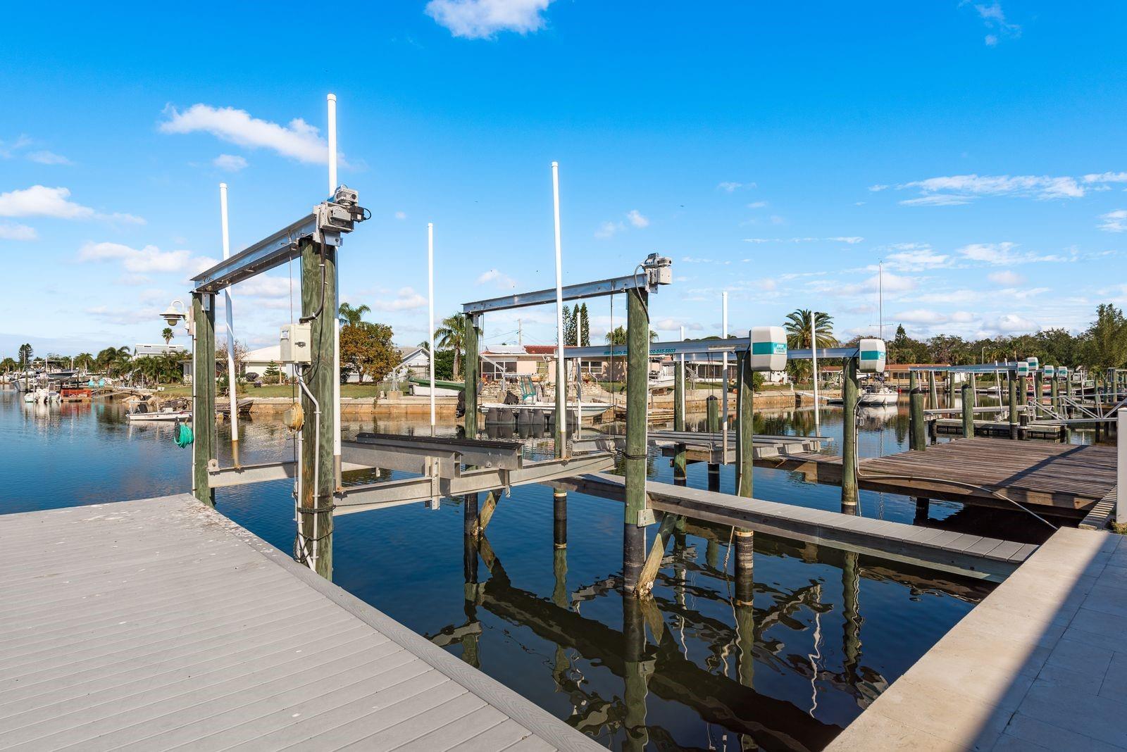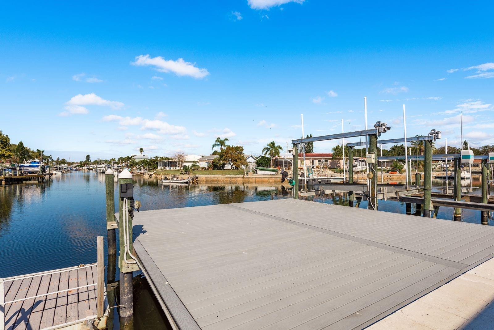 Amazing opportunity to make this your dream waterfront home. This spacious 3-bedrooms, 2-bathroom, 1-car garage, home featuring 66’ of waterfrontage with lift, fixed dock, and floating dock located in the highly sought-after community of Gulf Harbors sits on the main South Channel, a deep-water canal with unobstructed Gulf access and is only minutes away from open waters of the Gulf of Mexico! This home sustained flooding during hurricane Helene. Drywall, lower cabinets, and appliances have been removed, leaving a blank canvas for you to design your dream home. You have the option to join the Gulf Harbors members-only private sandy beach, which is only a short bike ride away, offering cabanas & grills and overlooking the Gulf of Mexico and Anclote Key. Downtown New Port Richey, just a short drive away is lively and quaint with many restaurants, bars, shops, and Sims Park where you can enjoy one of the many special events and outdoor concerts throughout the year or stroll along the beautiful riverwalk along the Cottee River. This home is ready for you to design and obtain your perfect tropical lifestyle!