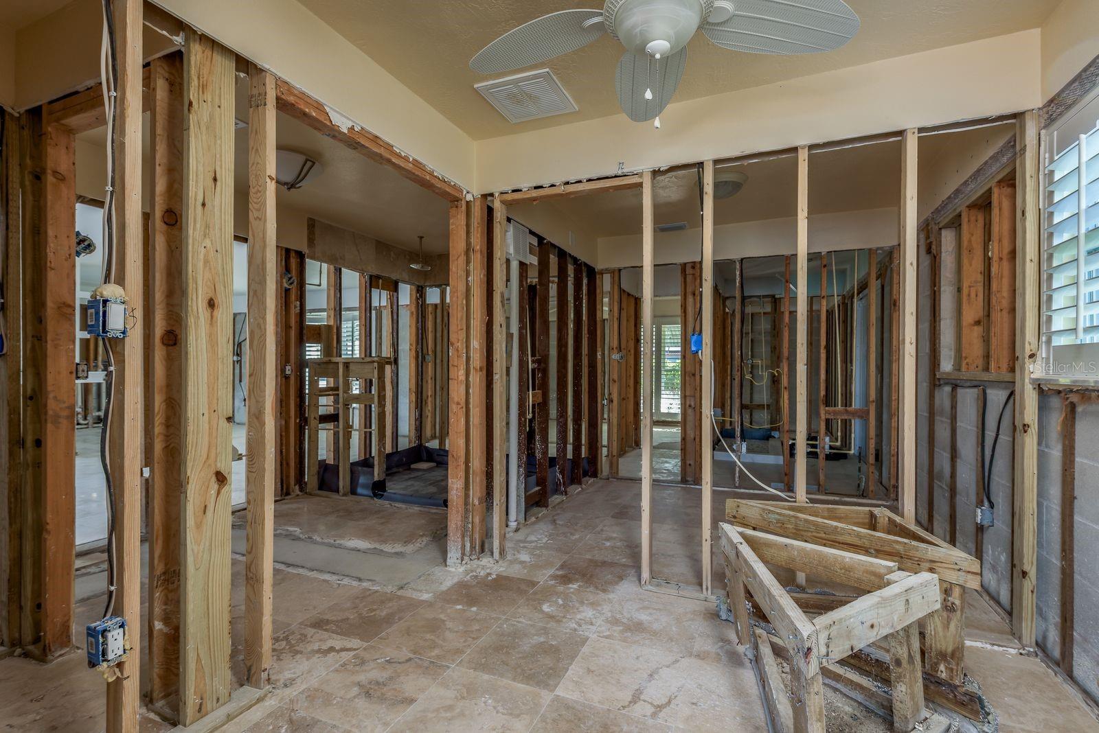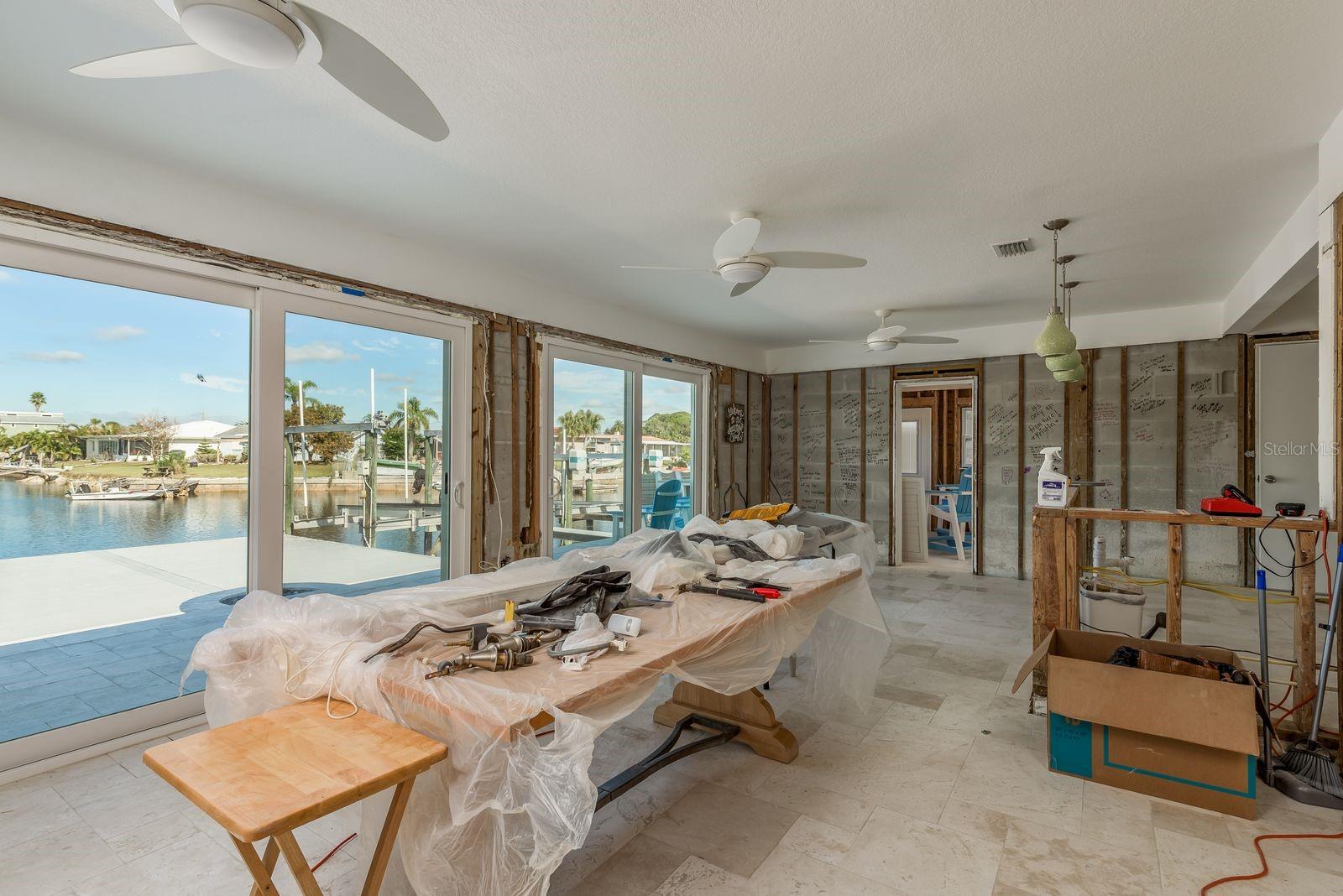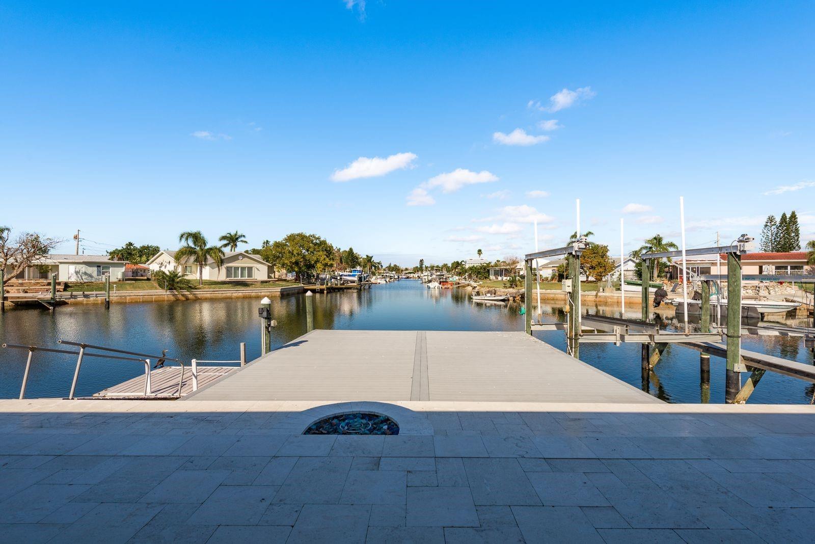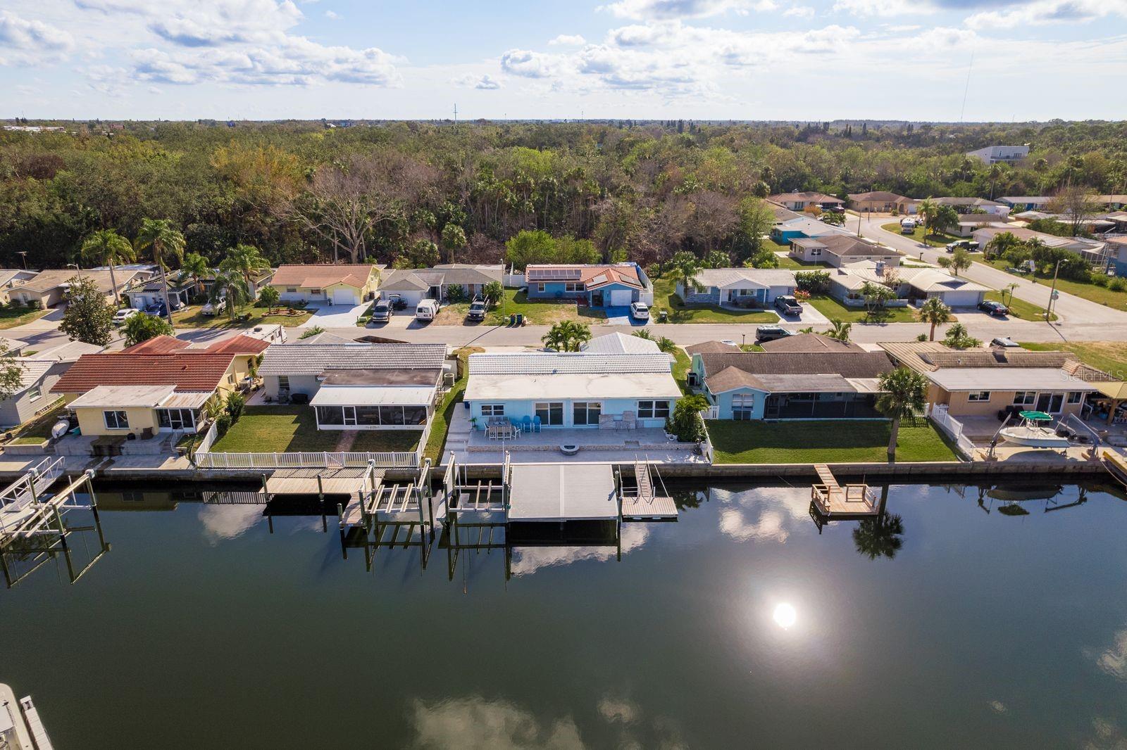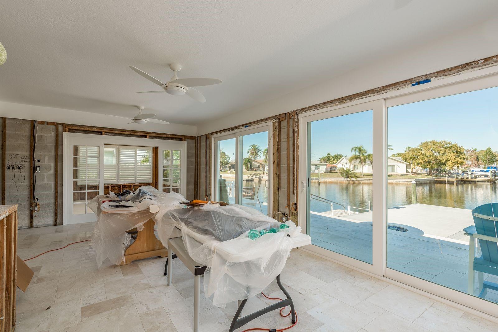 Amazing opportunity to make this your dream waterfront home. This spacious 3-bedrooms, 2-bathroom, 1-car garage, home featuring 66’ of waterfrontage with lift, fixed dock, and floating dock located in the highly sought-after community of Gulf Harbors sits on the main South Channel, a deep-water canal with unobstructed Gulf access and is only minutes away from open waters of the Gulf of Mexico! This home sustained flooding during hurricane Helene. Drywall, lower cabinets, and appliances have been removed, leaving a blank canvas for you to design your dream home. You have the option to join the Gulf Harbors members-only private sandy beach, which is only a short bike ride away, offering cabanas & grills and overlooking the Gulf of Mexico and Anclote Key. Downtown New Port Richey, just a short drive away is lively and quaint with many restaurants, bars, shops, and Sims Park where you can enjoy one of the many special events and outdoor concerts throughout the year or stroll along the beautiful riverwalk along the Cottee River. This home is ready for you to design and obtain your perfect tropical lifestyle!