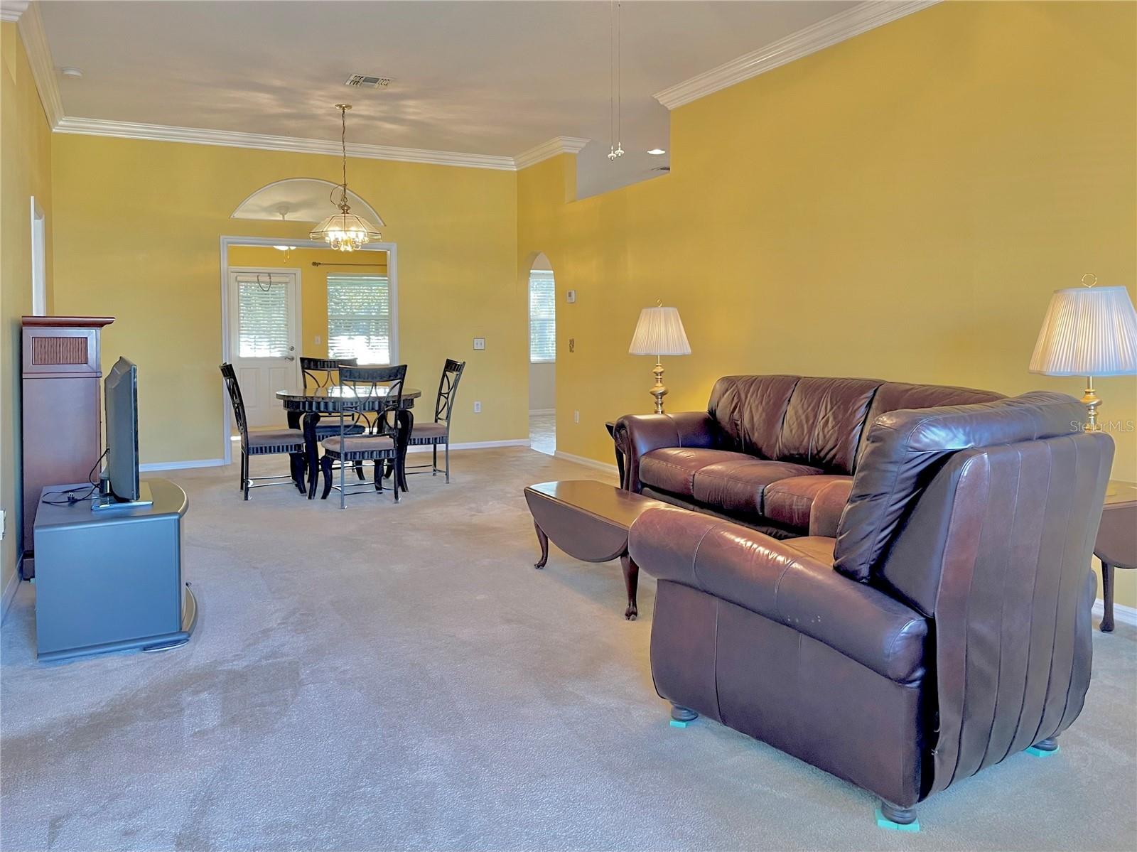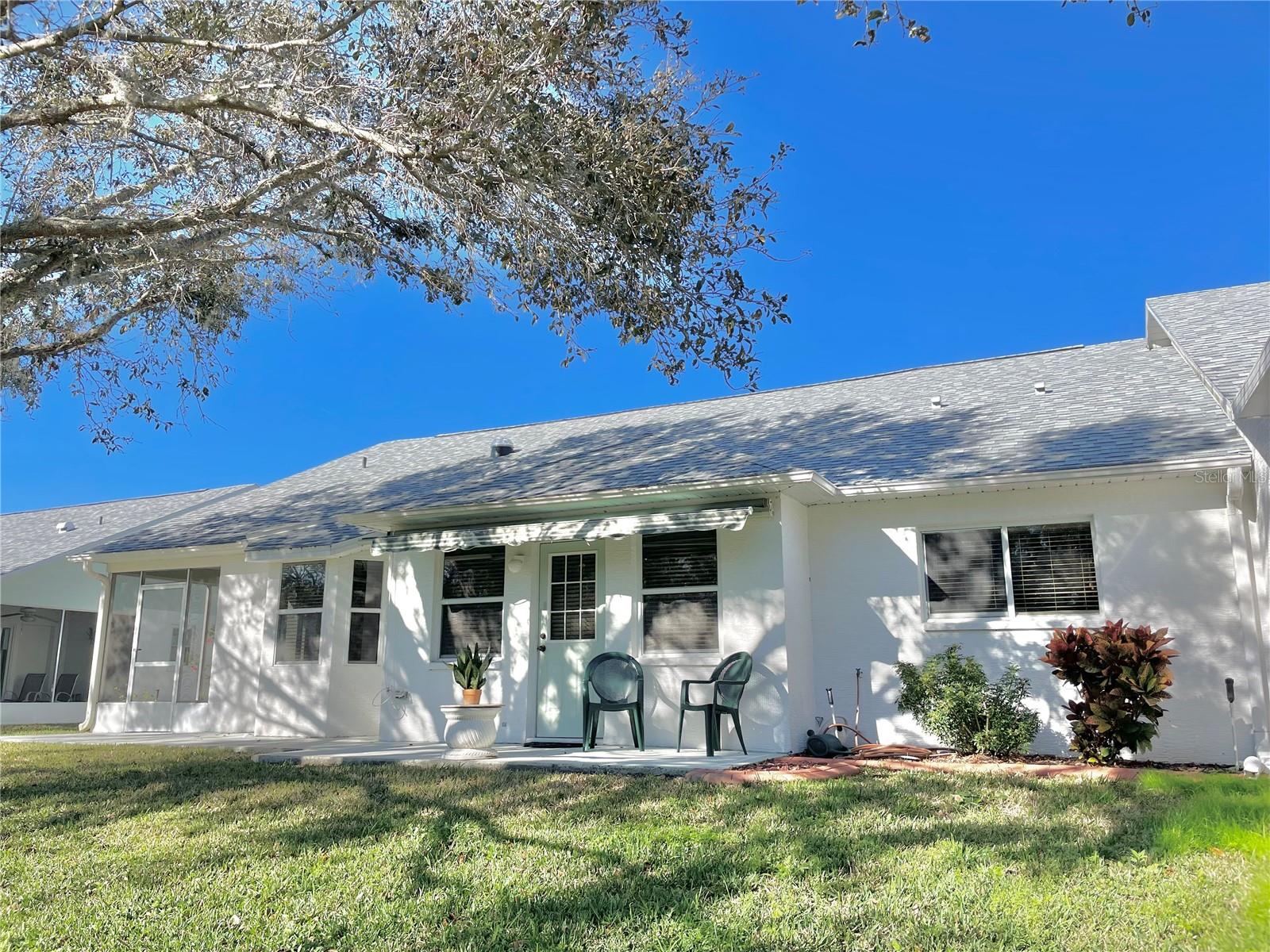 This is just the villa you've been looking for at a price you won't believe! A 2 bedroom PLUS a bonus room, 2 bathroom, 2 car garage END UNIT located on a retention pond that drains into the Anclote River and backs up to the Seven Springs Golf Course. No flooding during the storms! The space is set up beautifully with living/dining combo in the great room with a bonus room with pocket doors. The home has crown molding throughout. As you go through the archway to the kitchen, you find a breakfast bar, a dinette area, plenty of cabinet space, and pocketing sliding glass doors that lead out to the covered screen porch. Natural light comes into the kitchen area through the skylight tube and south-facing windows. There is an inside laundry room with a utility sink and pantry. The backyard has a stamped-designed concrete pad complete with an electric awning. It's the perfect space to sit and watch the butterflies, ducks, and turtles. The community is ALL AGES and has a pool and shuffleboard. Located in the heart of New Port Richey close to shopping, restaurants, hospitals, and beaches. The roof was replaced in 2021 and AC is 2016 with a 10 year warranty and serviced regularly. Exterior painted in Februrary 2025. All measurements are approximate.