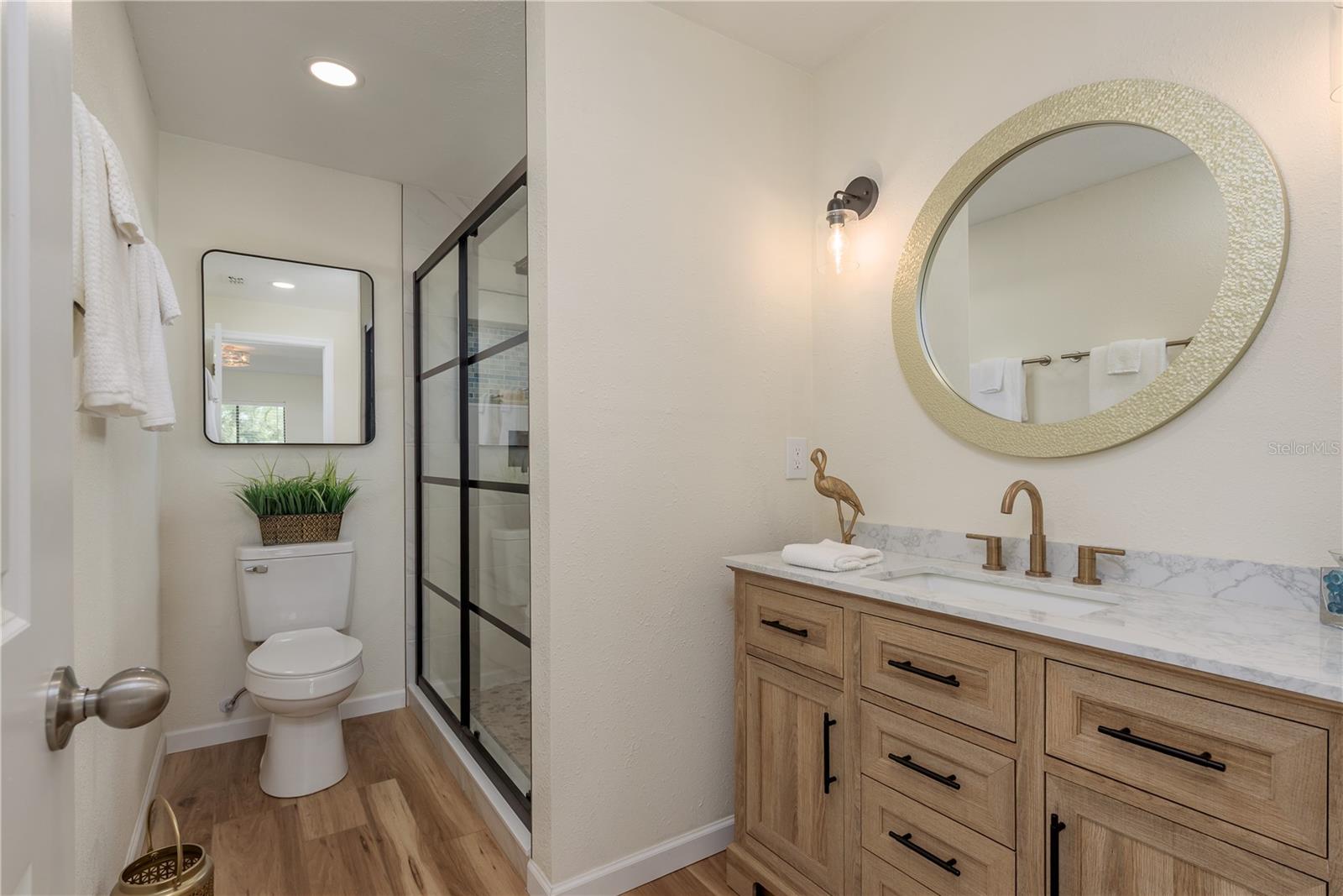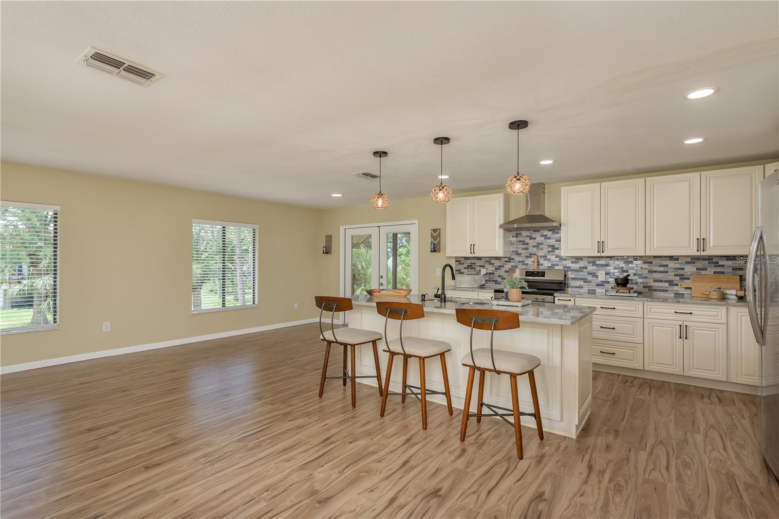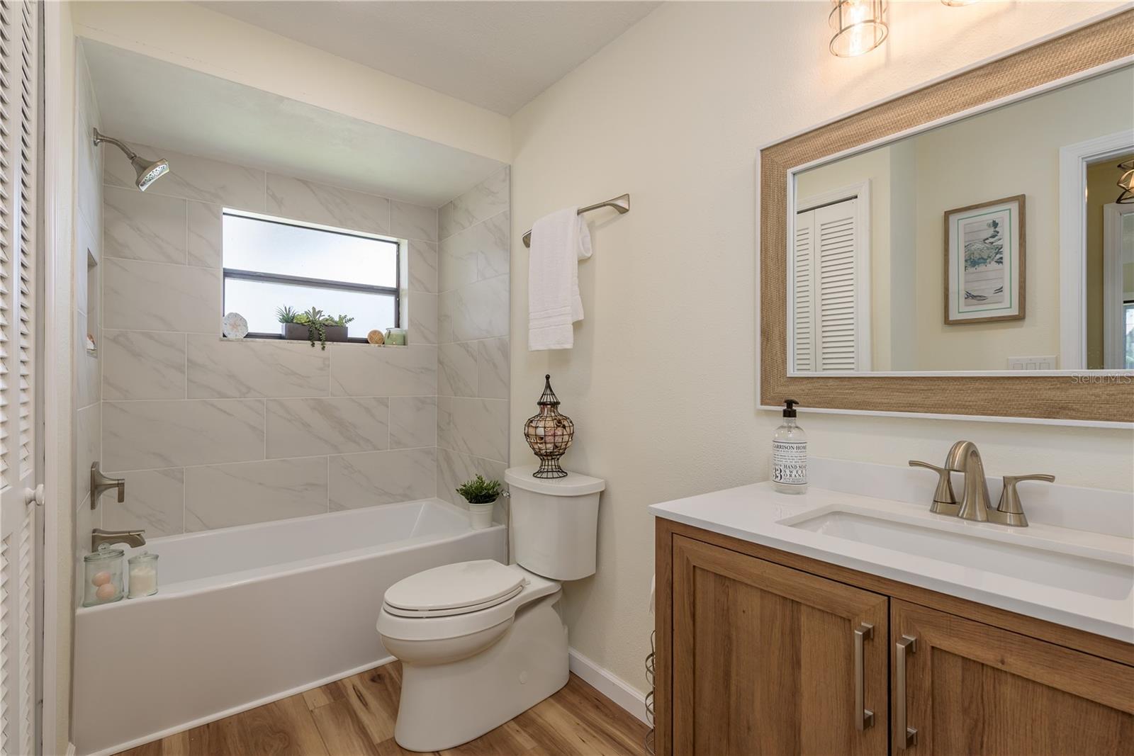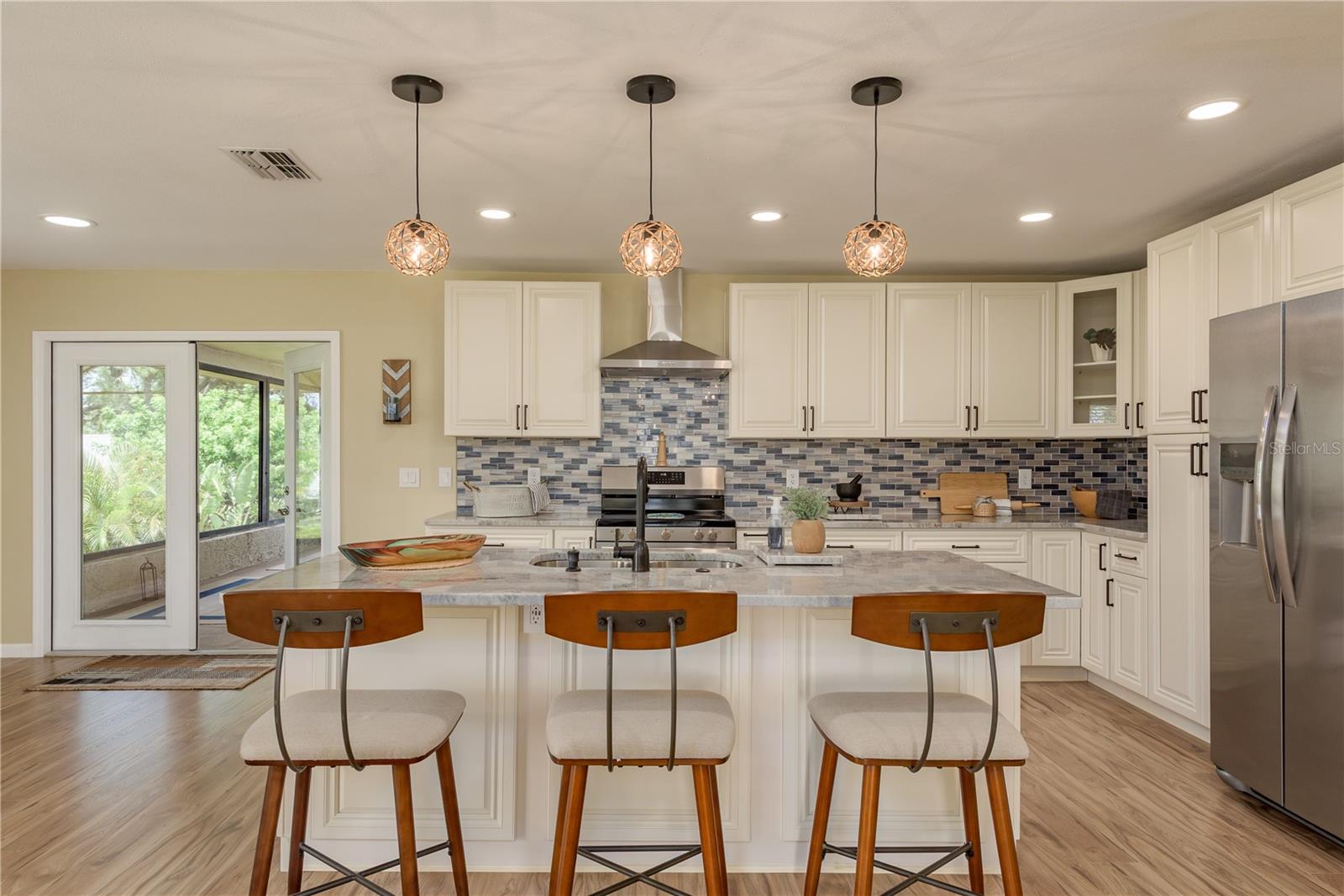 One or more photo(s) has been virtually staged. Owner financing options available! One or more photo(s) has been virtually staged. Right now you can own a fabulously remodeled high and dry home. Conveniently located in the highly sought after "Resort Style Living" waterfront neighborhood of Gulf Harbors Woodlands, you can enjoy easy access to parks, beaches, shops, restaurants and the vibrant booming downtown of New Port Richey! Worried about flooding? Your mind will be put at ease, as this home sits HIGH and DRY with almost 2000 sq. ft. (not included in the square footage of the home), of enclosed bonus area. The possibilities are endless in this massive space. EMPTY YOUR STORAGE UNITS!!! As you approach this grand home, you will be impressed with its stature. A 2-stall garage awaits your jet ski, kayaks, paddleboards and/ or golf cart, with an extra 1600 cu ft. of solid accessible storage space. An understated tropical vibe landscape awaiting your own colorful touches, draws you up and inviting staircase to find a gorgeous solid wood door with leaded glass inserts and coordinating sidelights. Step inside to find a warm modern coastal charm with new aesthetically pleasing lighting and ceiling fans, newly installed lovely vinyl flooring, new carpet in the bedrooms, fresh neutral paint and new baseboards. Entertaining is easy in the open concept kitchen featuring a lovely island with elegant soft close raised panel cabinetry, blue fantasy dolomite countertops, gorgeous colorful backsplash, stainless steel appliances (brand new), and plenty of room for cozy furnishings. Step through beautiful French doors onto a 240 square ft. screened porch where you may choose to enjoy your morning coffee or evening cocktail with a view of the estuary. The traditional split plan layout, featuring on one side, 2 bedrooms and a full bath allowing for guests or flex spaces such as a home office or studio. Head over to the master where you will be greeted with plenty of natural light, a very generous walk-in closet and a lovely ensuite. This golf cart friendly waterfront community has a very reasonable HOA fee. This fee provides some very nice perks such as an awesome pool with a clubhouse, tennis and pickleball courts, boat ramp, floating pull up dock and lots of activities throughout the year. In addition, you will have the option to become a member of the yacht club, which is right next door to the clubhouse. Also, for a small fee, join the private beach boasting 21 cabanas, picnic tables, chairs and private bathrooms w/showers. This prime location beach will likely be your favorite place to watch the sunset or host the next friends and family get together in this wonderful community. Don’t miss out, call today for a showing!