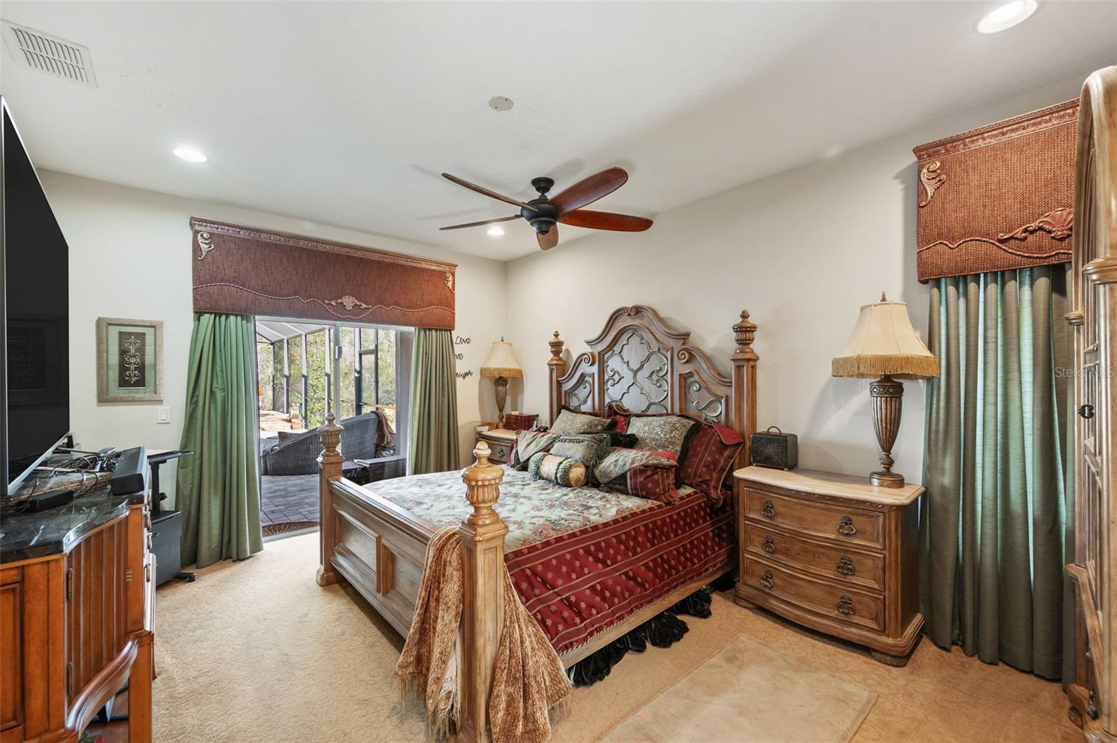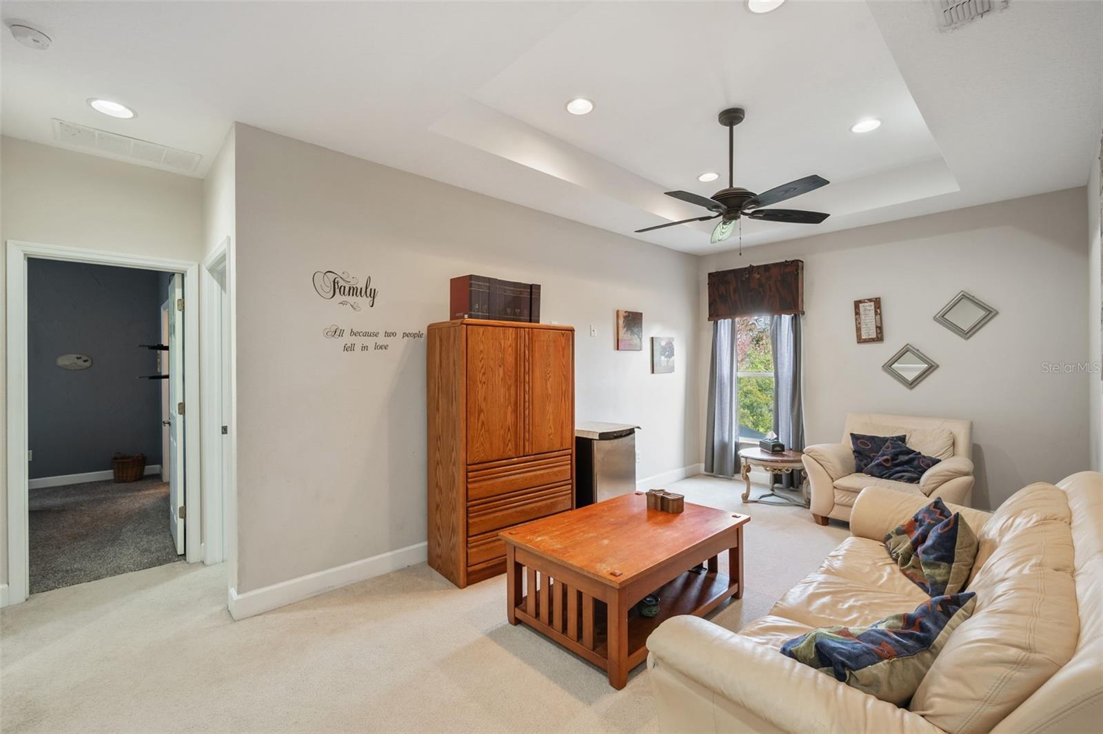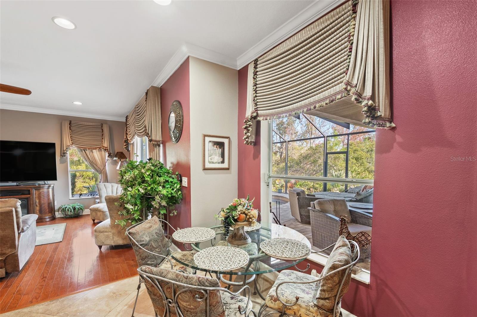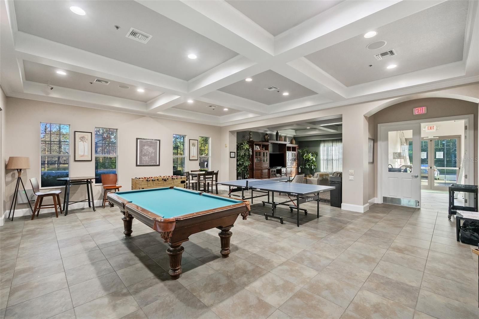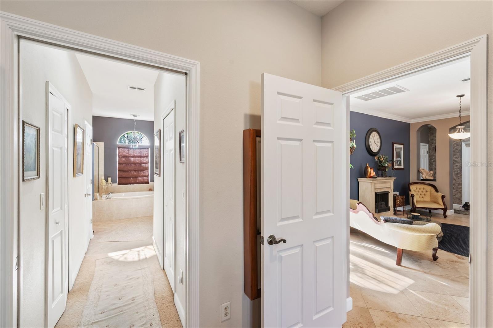 Set on a conservation lot, the property offers unparalleled privacy, with no neighbors to the right of the home, none behind the home, and none visible from the pool area. This peaceful and secluded setting is paired with the featured Huntington floorplan—the only home in the neighborhood with this unique elevation, making it a standout property. Offering 3,331 square feet of living space, 5 bedrooms, 4 bathrooms, a dedicated office, an upstairs bonus room, and a three-car garage, this home seamlessly blends thoughtful design with luxurious upgrades, creating the perfect retreat for modern living. Step inside and take in the carefully chosen details, starting with the diagonal travertine flooring throughout the common areas, an upgraded feature that adds a touch of sophistication. The gourmet kitchen is a chef’s dream, boasting custom glass cabinets with built-in lighting, Corian countertops, and a double ice-maker refrigerator. The open-concept design creates a seamless flow between the kitchen, dining, and living spaces, making it perfect for hosting family and friends. The primary bedroom suite, located on the main floor, is a luxurious sanctuary, featuring his-and-her walk-in closets, a chandelier-lit soaking tub, and a double shower with multiple heads. All bathrooms feature granite countertops, porcelain sinks, and upgraded light fixtures. Upstairs, you’ll find a bonus room, ideal for a game room or additional living space, along with four spacious bedrooms, a Jack-and-Jill bathroom, and a convenient laundry chute. The built-in intercom system ensures easy communication throughout the home. Outside, the backyard oasis awaits, centered around a heated saltwater pool and spa with self-cleaning pop-ups, requiring minimal maintenance—just rinse the filter every six weeks. The pool area, surrounded by a two-story pool cage, includes a working waterfall, a sun deck with pavers and slate rock, and a handheld remote control for the pool, spa, and waterfall settings. The propane hookup powers the pool heater and includes a convenient connector for your outdoor grill, making it a perfect setup for backyard gatherings. The home also features crown molding, wood flooring in the office, a generator hookup, an epoxy-finished garage floor, and a wired security system with exterior cameras connected to a monitor in the primary suite. The exterior features pavered driveways and walkways, upgraded gutters, and a screen door leading to the garage, ensuring functionality and curb appeal. Waters Edge offers a resort-style lifestyle with amenities such as a clubhouse, fitness center, community pool, and scenic lakes. With its unparalleled privacy, upgraded features, and one-of-a-kind floorplan, this home is more than a residence—it’s a lifestyle. Don’t miss your chance to own this rare and exceptional property. Schedule your private showing today!