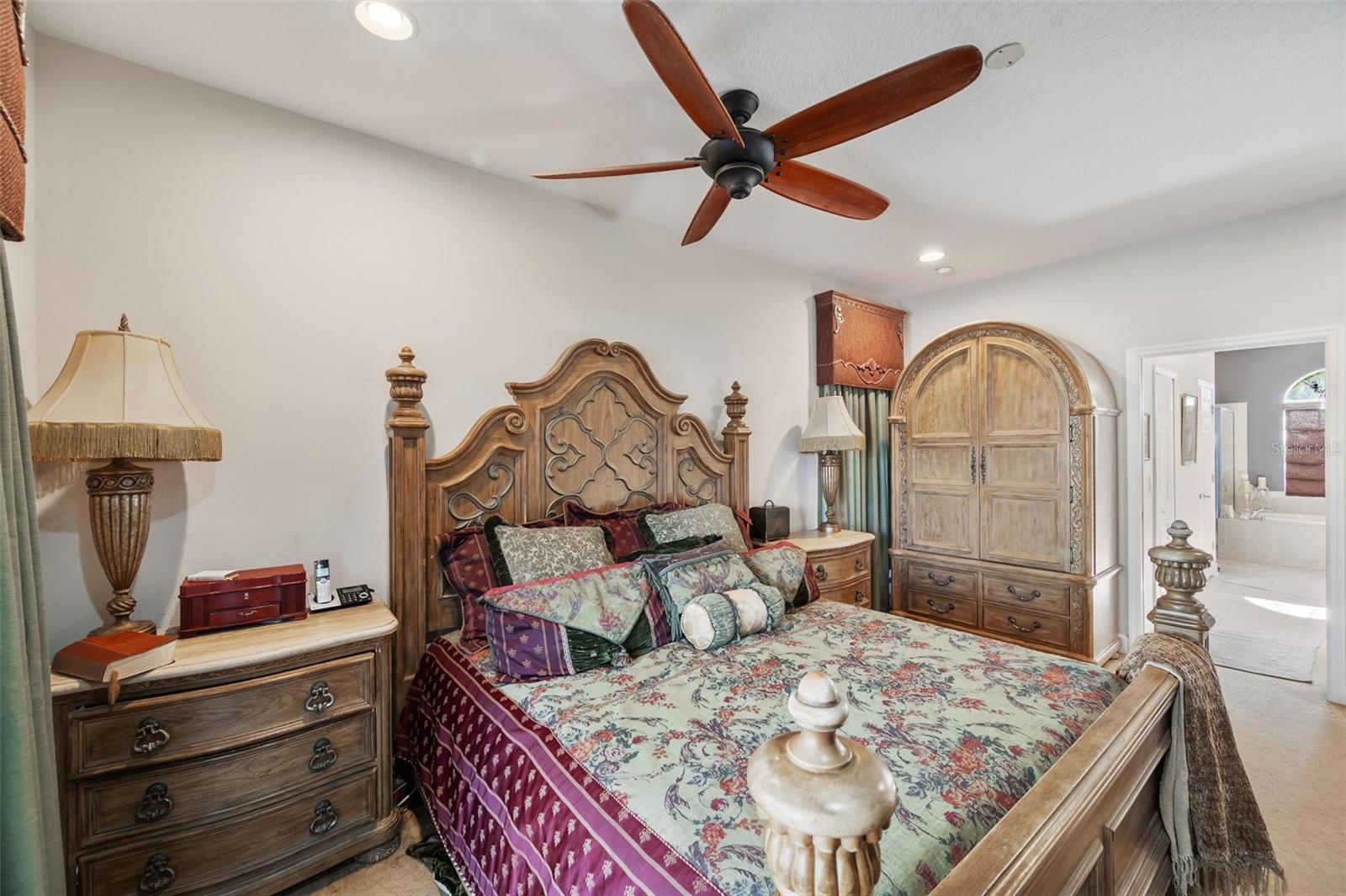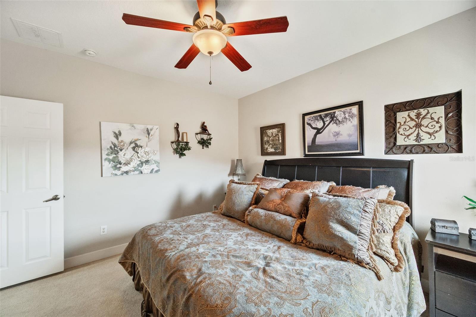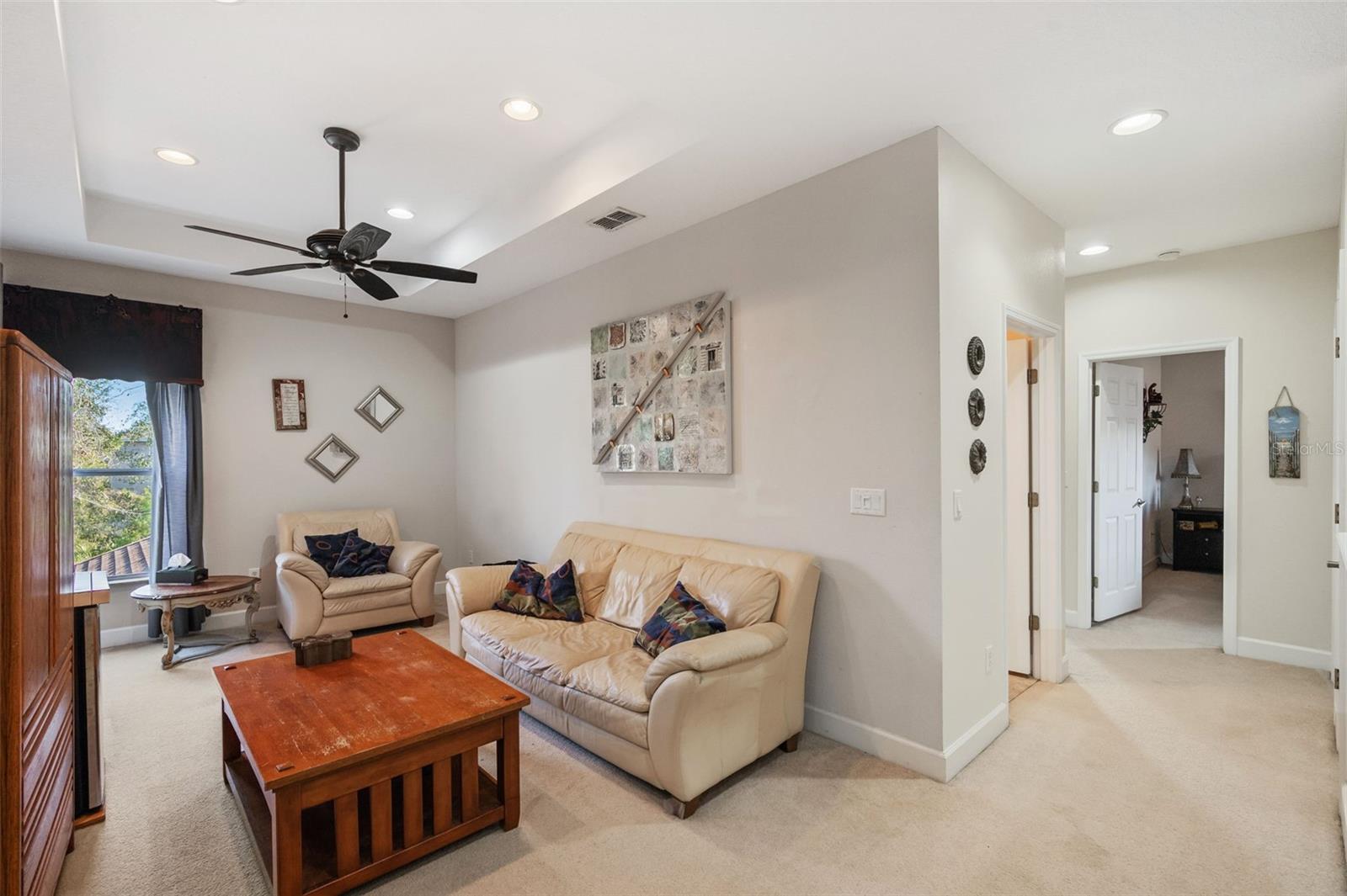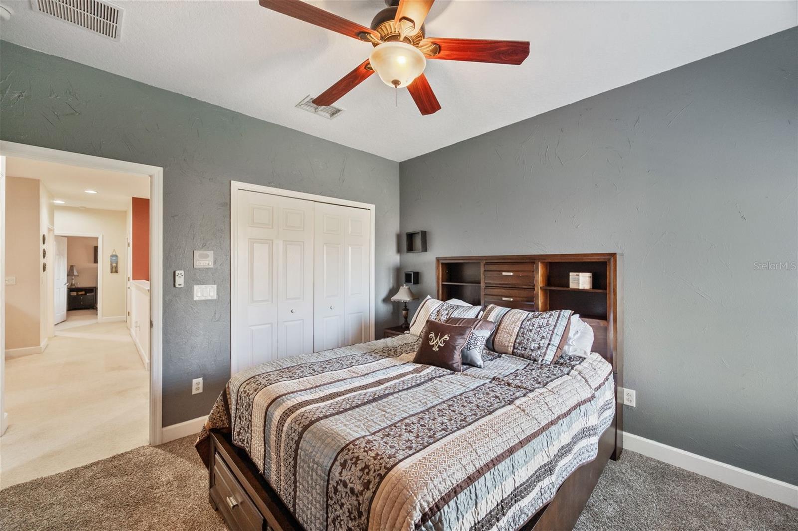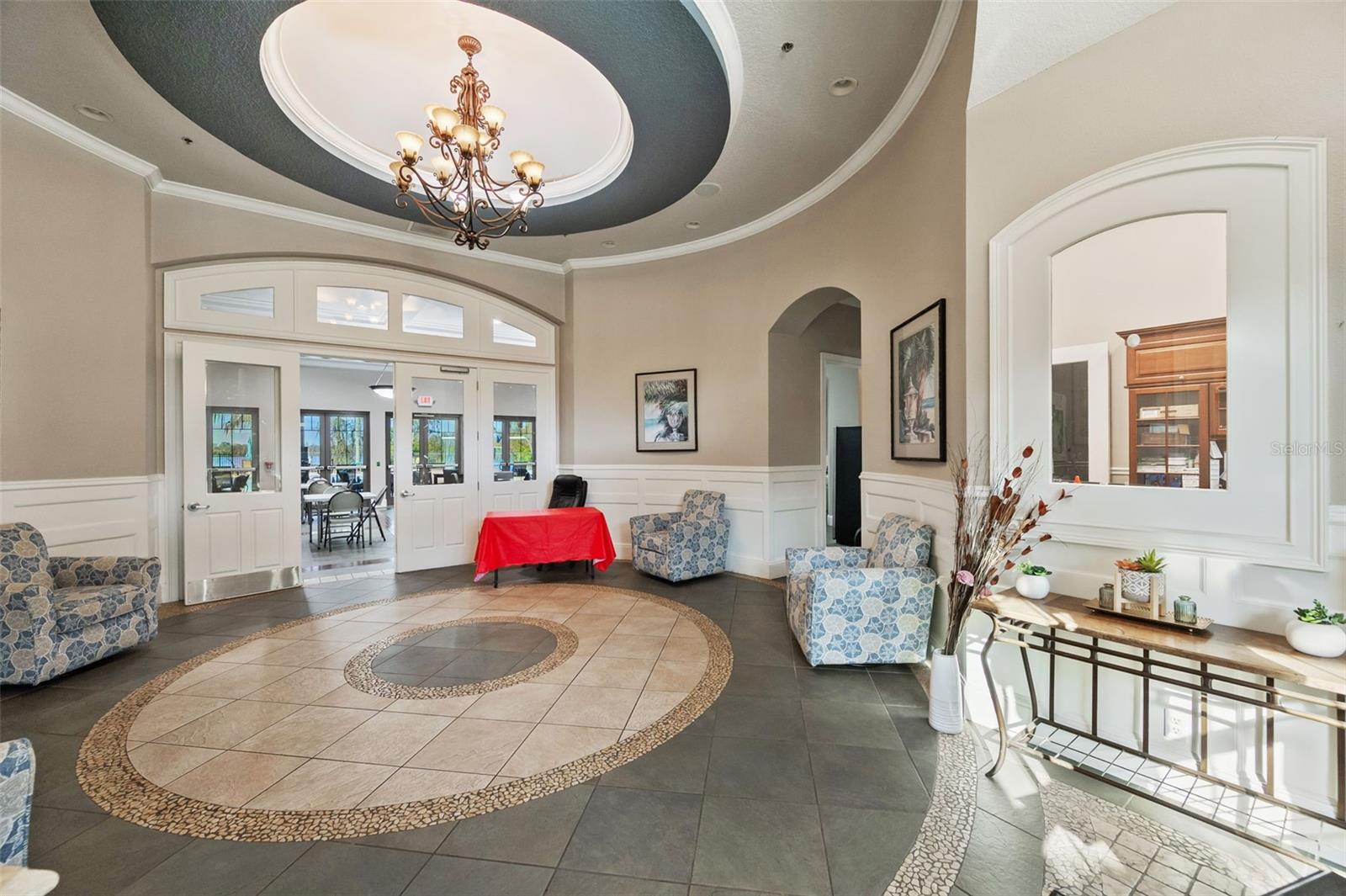 Set on a conservation lot, the property offers unparalleled privacy, with no neighbors to the right of the home, none behind the home, and none visible from the pool area. This peaceful and secluded setting is paired with the featured Huntington floorplan—the only home in the neighborhood with this unique elevation, making it a standout property. Offering 3,331 square feet of living space, 5 bedrooms, 4 bathrooms, a dedicated office, an upstairs bonus room, and a three-car garage, this home seamlessly blends thoughtful design with luxurious upgrades, creating the perfect retreat for modern living. Step inside and take in the carefully chosen details, starting with the diagonal travertine flooring throughout the common areas, an upgraded feature that adds a touch of sophistication. The gourmet kitchen is a chef’s dream, boasting custom glass cabinets with built-in lighting, Corian countertops, and a double ice-maker refrigerator. The open-concept design creates a seamless flow between the kitchen, dining, and living spaces, making it perfect for hosting family and friends. The primary bedroom suite, located on the main floor, is a luxurious sanctuary, featuring his-and-her walk-in closets, a chandelier-lit soaking tub, and a double shower with multiple heads. All bathrooms feature granite countertops, porcelain sinks, and upgraded light fixtures. Upstairs, you’ll find a bonus room, ideal for a game room or additional living space, along with four spacious bedrooms, a Jack-and-Jill bathroom, and a convenient laundry chute. The built-in intercom system ensures easy communication throughout the home. Outside, the backyard oasis awaits, centered around a heated saltwater pool and spa with self-cleaning pop-ups, requiring minimal maintenance—just rinse the filter every six weeks. The pool area, surrounded by a two-story pool cage, includes a working waterfall, a sun deck with pavers and slate rock, and a handheld remote control for the pool, spa, and waterfall settings. The propane hookup powers the pool heater and includes a convenient connector for your outdoor grill, making it a perfect setup for backyard gatherings. The home also features crown molding, wood flooring in the office, a generator hookup, an epoxy-finished garage floor, and a wired security system with exterior cameras connected to a monitor in the primary suite. The exterior features pavered driveways and walkways, upgraded gutters, and a screen door leading to the garage, ensuring functionality and curb appeal. Waters Edge offers a resort-style lifestyle with amenities such as a clubhouse, fitness center, community pool, and scenic lakes. With its unparalleled privacy, upgraded features, and one-of-a-kind floorplan, this home is more than a residence—it’s a lifestyle. Don’t miss your chance to own this rare and exceptional property. Schedule your private showing today!