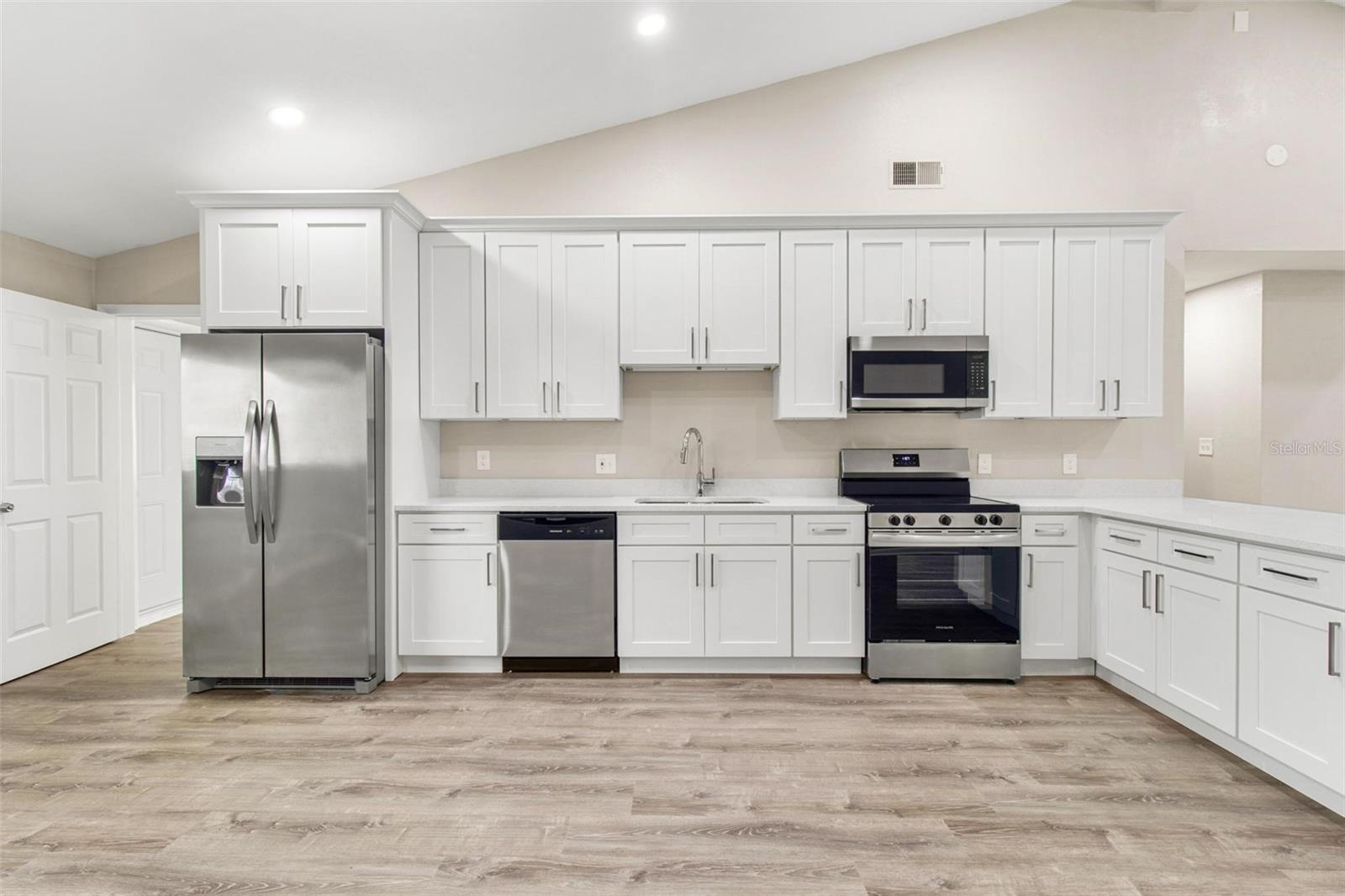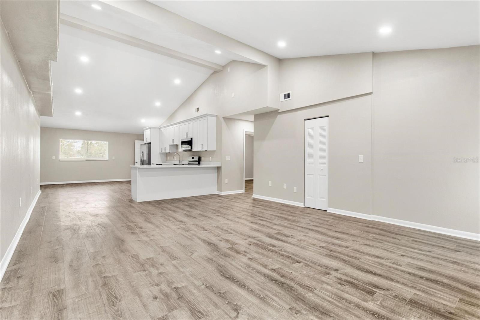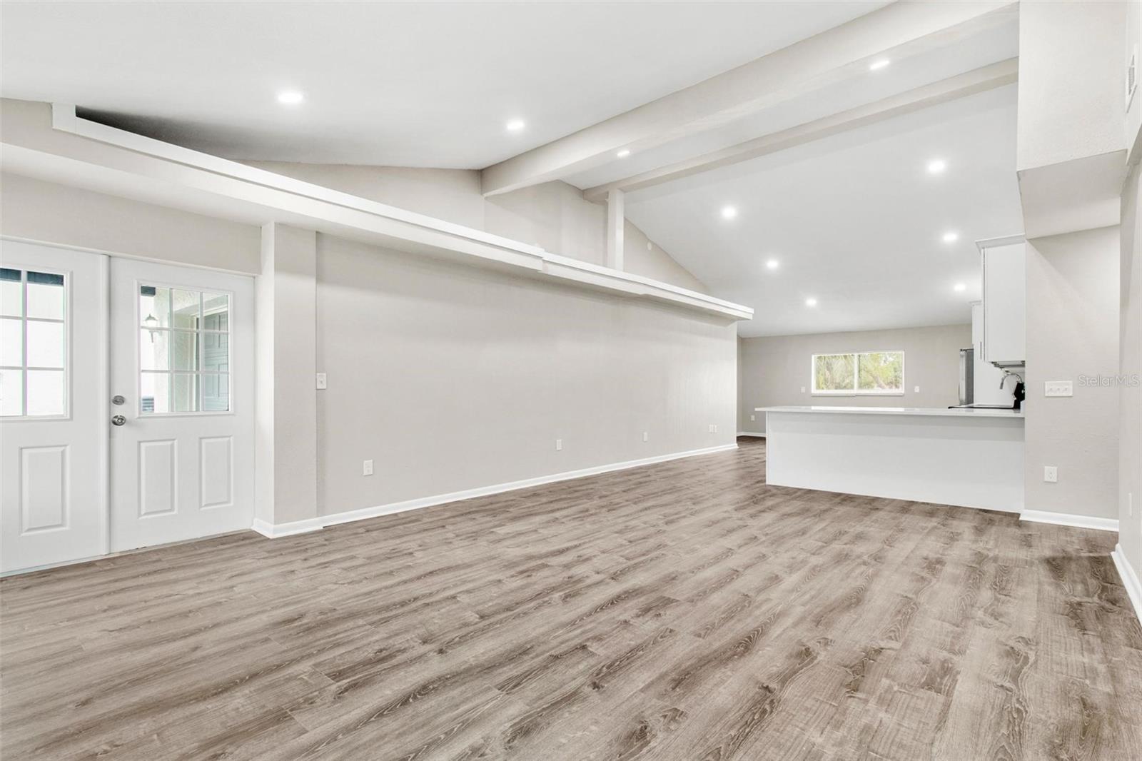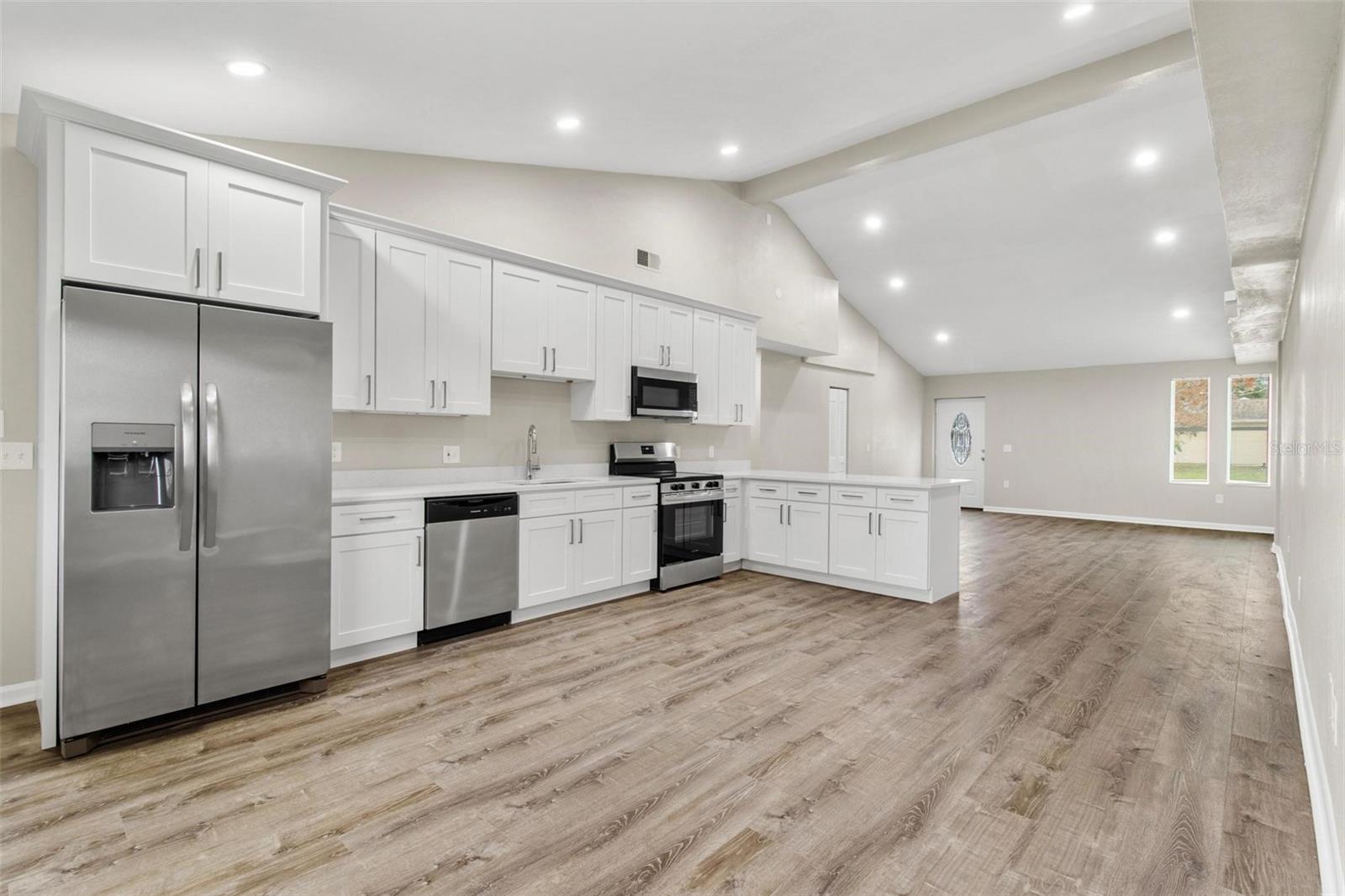 This fully renovated lake house offers modern updates and exceptional charm. Features include a new roof, brand-new bathrooms, HVAC/AC system, kitchen with wood cabinets, new appliances, and stunning new floors. The home boasts an open floor plan with volume ceilings and a skylight that fills the space with natural light. Situated on a large lot overlooking the lake, this property provides serene views and plenty of outdoor space. Located outside of flood zones, this home has never experienced flooding or damage from hurricanes. Move-in ready and perfect for enjoying lakeside living!