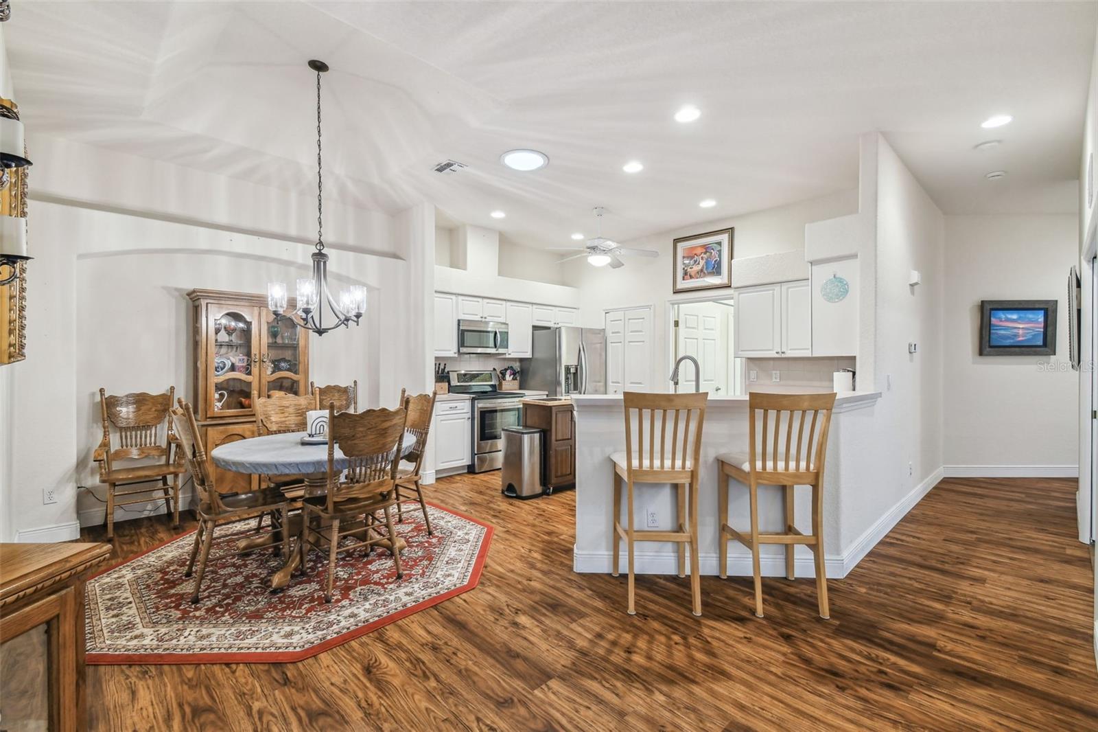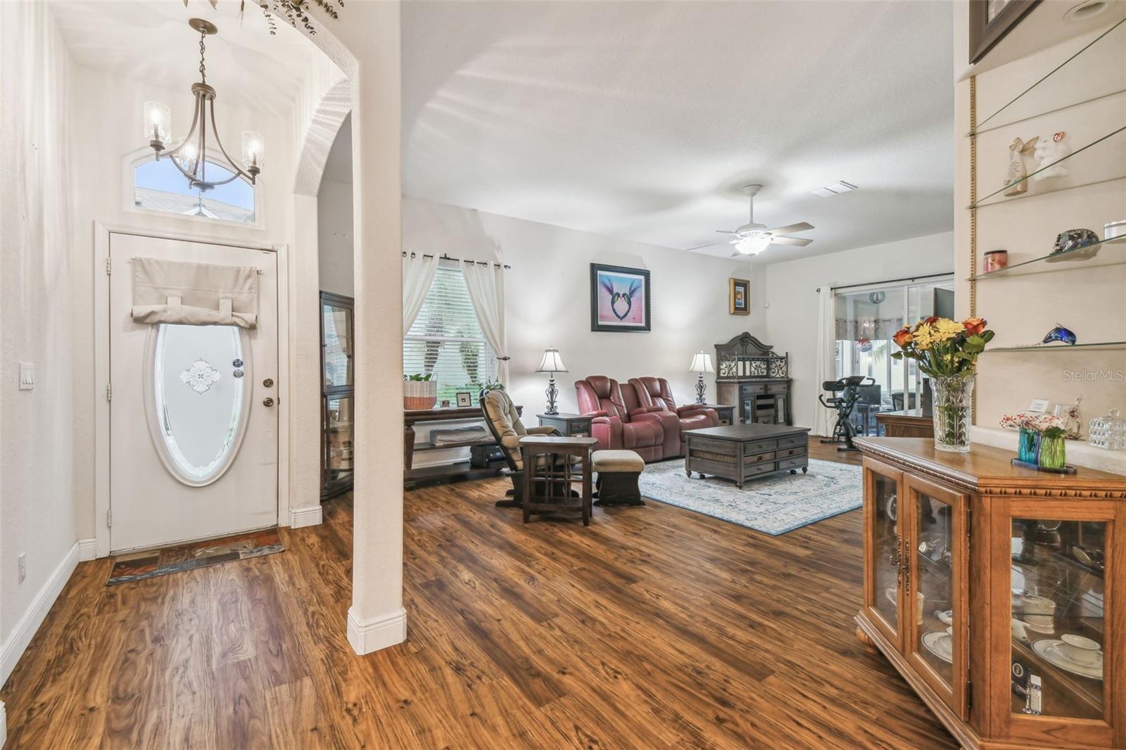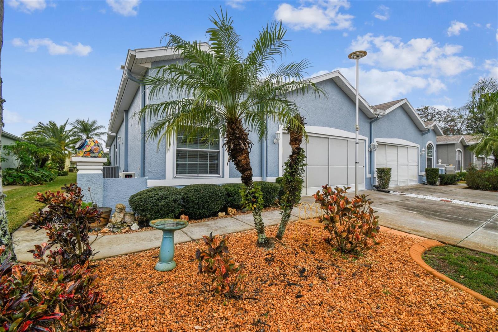 Move-In-Ready Gem in The Greens at Summertree – Perfect for Stress-Free Florida Living! Welcome to your ideal Florida retreat in the highly sought-after, pet-friendly and golf cart-friendly 55+ community of The Greens at Summertree. This meticulously maintained 3-bedroom, 2-bathroom home offers the perfect blend of modern comfort and resilience Equipped with newer impact windows, that have a transferrable warranty. Key Home Features: NEW Roof (2022) and Exterior Paint (2022) for long-lasting durability and curb appeal. Bright and airy split floor plan with vaulted ceilings that amplify the sense of space and light. Spacious primary suite with a walk-in closet, dual vanity, and an elegant walk-in shower — your personal sanctuary. Updated kitchen featuring sleek newer appliances, beautiful cabinetry, modern flooring, and a skylight that bathes the room in natural light. Convenient laundry area and pantry just off the kitchen for easy access and organization. An extended enclosed lanai provides the perfect space for enjoying the outdoors, whether relaxing or entertaining. A two-car garage for plenty of storage, space for your golf cart, or extra room for your hobbies. Resort-Style Living with Unmatched Amenities: Golf course access — tee off right in your own community. Heated pool for year-round swimming, no matter the season. A full fitness center, tennis courts, shuffleboard, bocce, and pickleball for the active lifestyle you deserve. Clubhouse offering social events, billiards, and card games to keep you engaged and connected with neighbors. Gated community with sidewalks and reclaimed water irrigation to ensure both security and sustainability. The association handles cable TV, pool maintenance, roof upkeep, exterior painting, grounds maintenance, and trash collection, allowing you to enjoy a worry-free, maintenance-free lifestyle. Prime Location: Located just 15 minutes from the Suncoast Expressway, you’re perfectly positioned for easy access to Tampa, Clearwater, and St. Petersburg. Enjoy the best of both worlds with beaches and top-tier medical facilities only 20 minutes away. Don’t miss this rare opportunity to own a hurricane-strong, move-in-ready home in one of Florida’s most desirable 55+ communities. Call to schedule your private tour today—this home is waiting for you! All info deemed to be accurate buyer buyer/agent to verify
