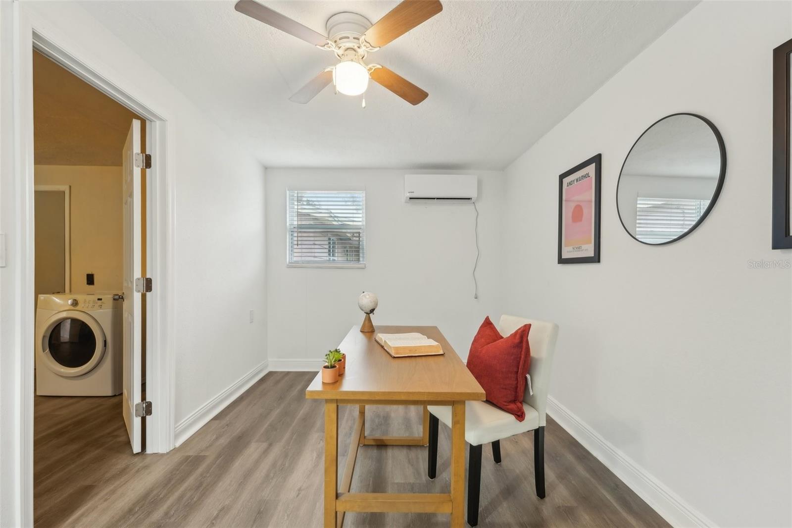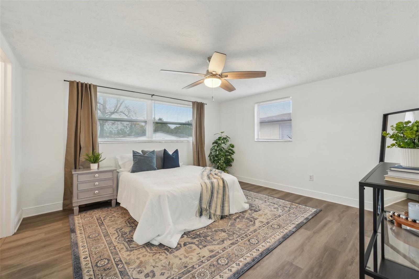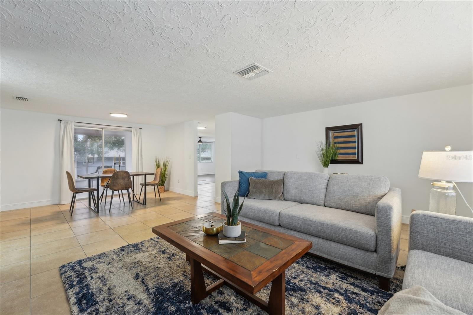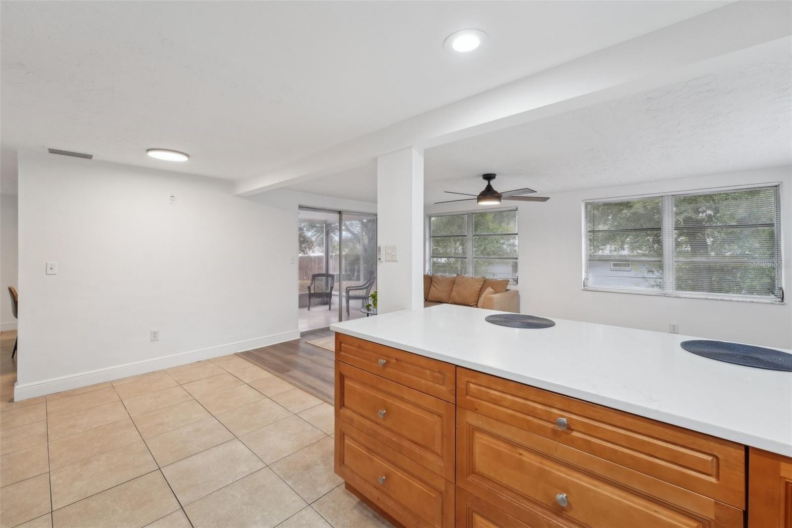 Seller will offer $5k buyer credit to use towards closing costs and/or buying down the rate. This beautifully updated home combines modern comforts with timeless charm, making it the perfect retreat for a small family or anyone seeking a low-maintenance lifestyle. Ideally located near shopping, dining, and major travel routes, this property offers unparalleled convenience and appeal. Step inside to discover elegant ceramic tile flooring in the living room and kitchen area and brand new laminate flooring in the bedrooms. The heart of the home is the upgraded kitchen, featuring sleek stainless steel appliances, stunning Quartz countertops, and ample space for meal prep and entertaining. Both bathrooms have been fully renovated, showcasing modern finishes and thoughtful design. Recent upgrades include a newer roof, fresh interior and exterior paint jobs, and energy-efficient LED lighting throughout. The garage has been expertly converted into a spacious office/laundry room, now equipped with a new split-unit air conditioner and newly replaced windows, making it an ideal space for remote work or hobbies. Five additional updated windows enhance the home’s natural light and energy efficiency. The lanai, complete with a nearly new grill, is perfect for hosting outdoor gatherings or enjoying quiet evenings. This home is truly move-in ready, with every detail thoughtfully addressed to provide a cozy and modern living experience. Don’t miss the chance to own this gem! Schedule your showing today and make it yours before it’s gone!