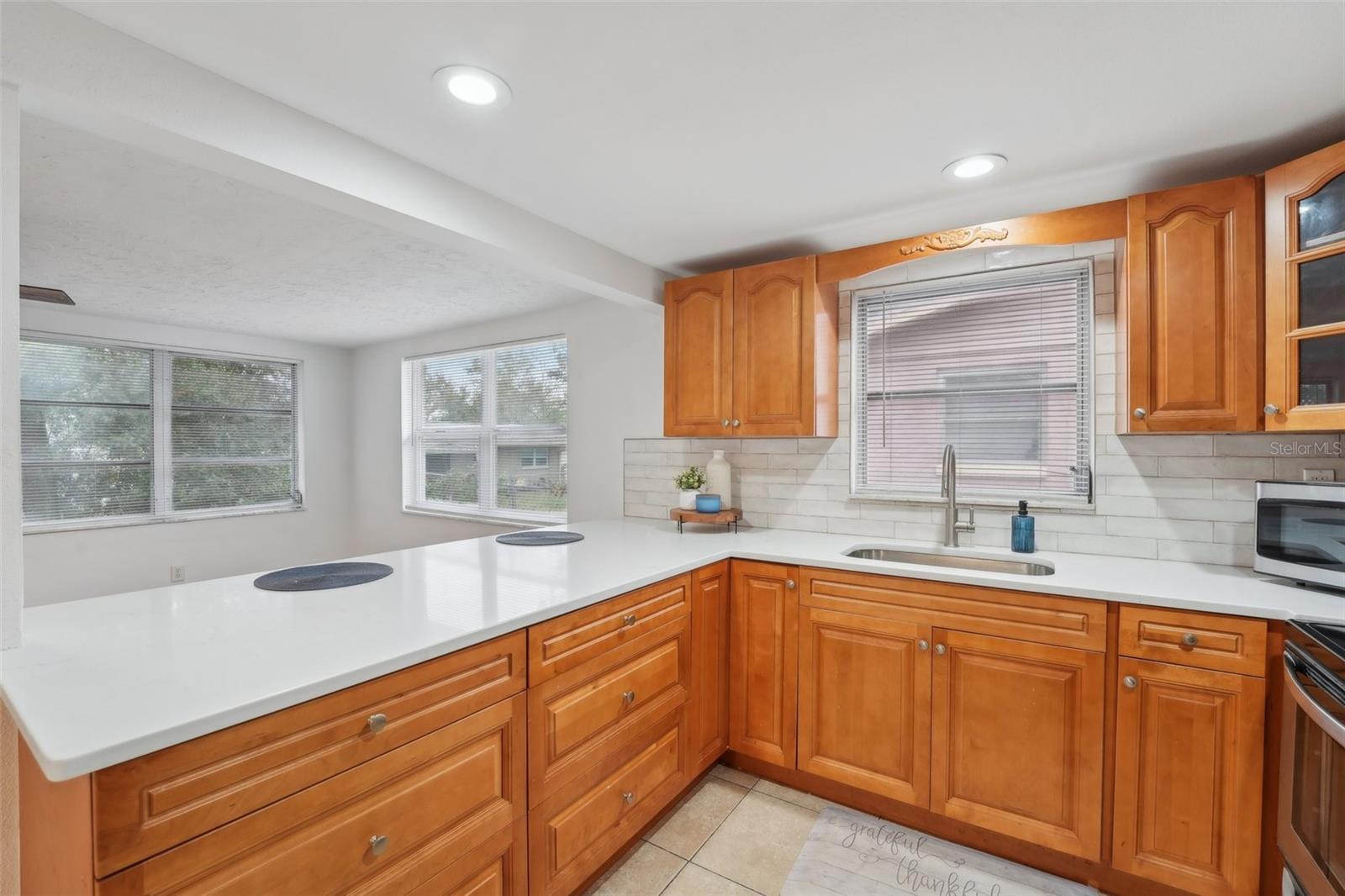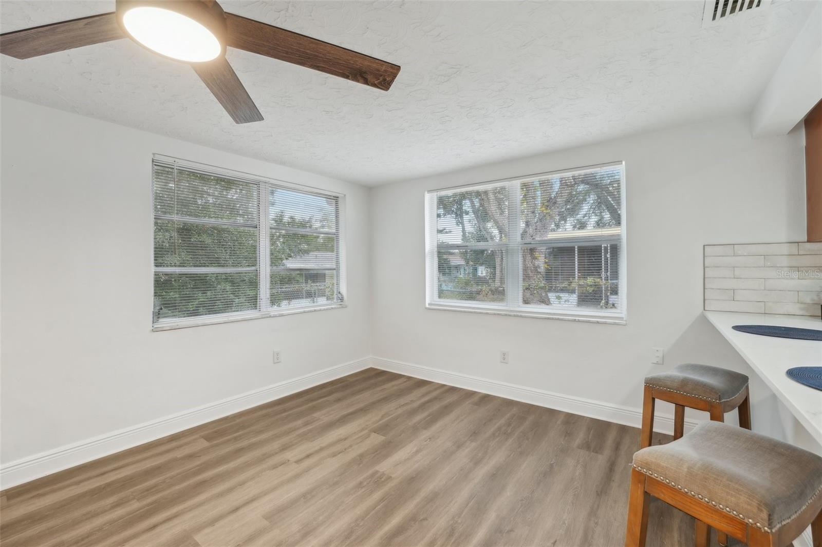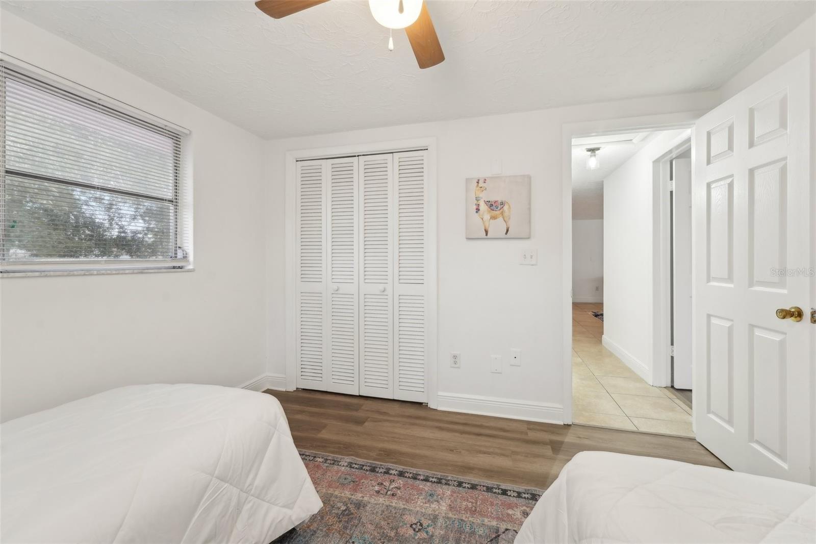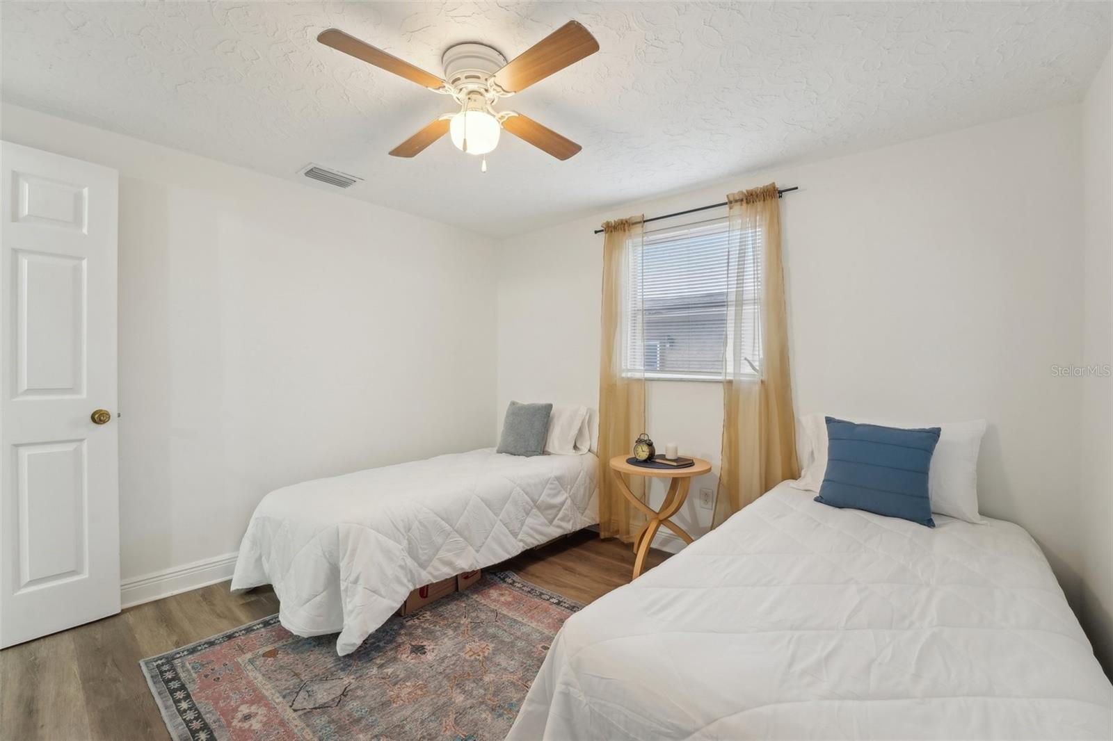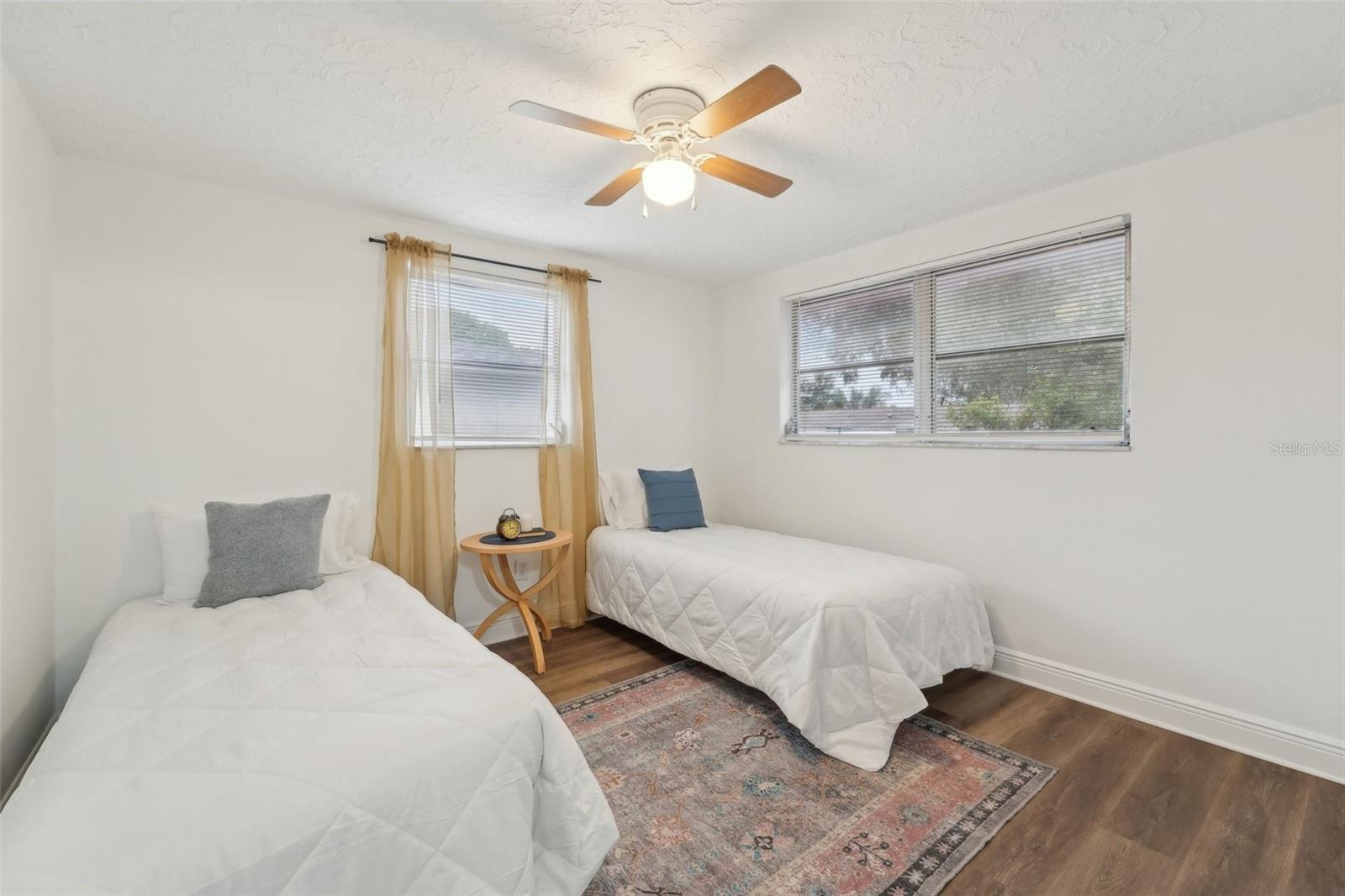 Seller will offer $5k buyer credit to use towards closing costs and/or buying down the rate. This beautifully updated home combines modern comforts with timeless charm, making it the perfect retreat for a small family or anyone seeking a low-maintenance lifestyle. Ideally located near shopping, dining, and major travel routes, this property offers unparalleled convenience and appeal. Step inside to discover elegant ceramic tile flooring in the living room and kitchen area and brand new laminate flooring in the bedrooms. The heart of the home is the upgraded kitchen, featuring sleek stainless steel appliances, stunning Quartz countertops, and ample space for meal prep and entertaining. Both bathrooms have been fully renovated, showcasing modern finishes and thoughtful design. Recent upgrades include a newer roof, fresh interior and exterior paint jobs, and energy-efficient LED lighting throughout. The garage has been expertly converted into a spacious office/laundry room, now equipped with a new split-unit air conditioner and newly replaced windows, making it an ideal space for remote work or hobbies. Five additional updated windows enhance the home’s natural light and energy efficiency. The lanai, complete with a nearly new grill, is perfect for hosting outdoor gatherings or enjoying quiet evenings. This home is truly move-in ready, with every detail thoughtfully addressed to provide a cozy and modern living experience. Don’t miss the chance to own this gem! Schedule your showing today and make it yours before it’s gone!