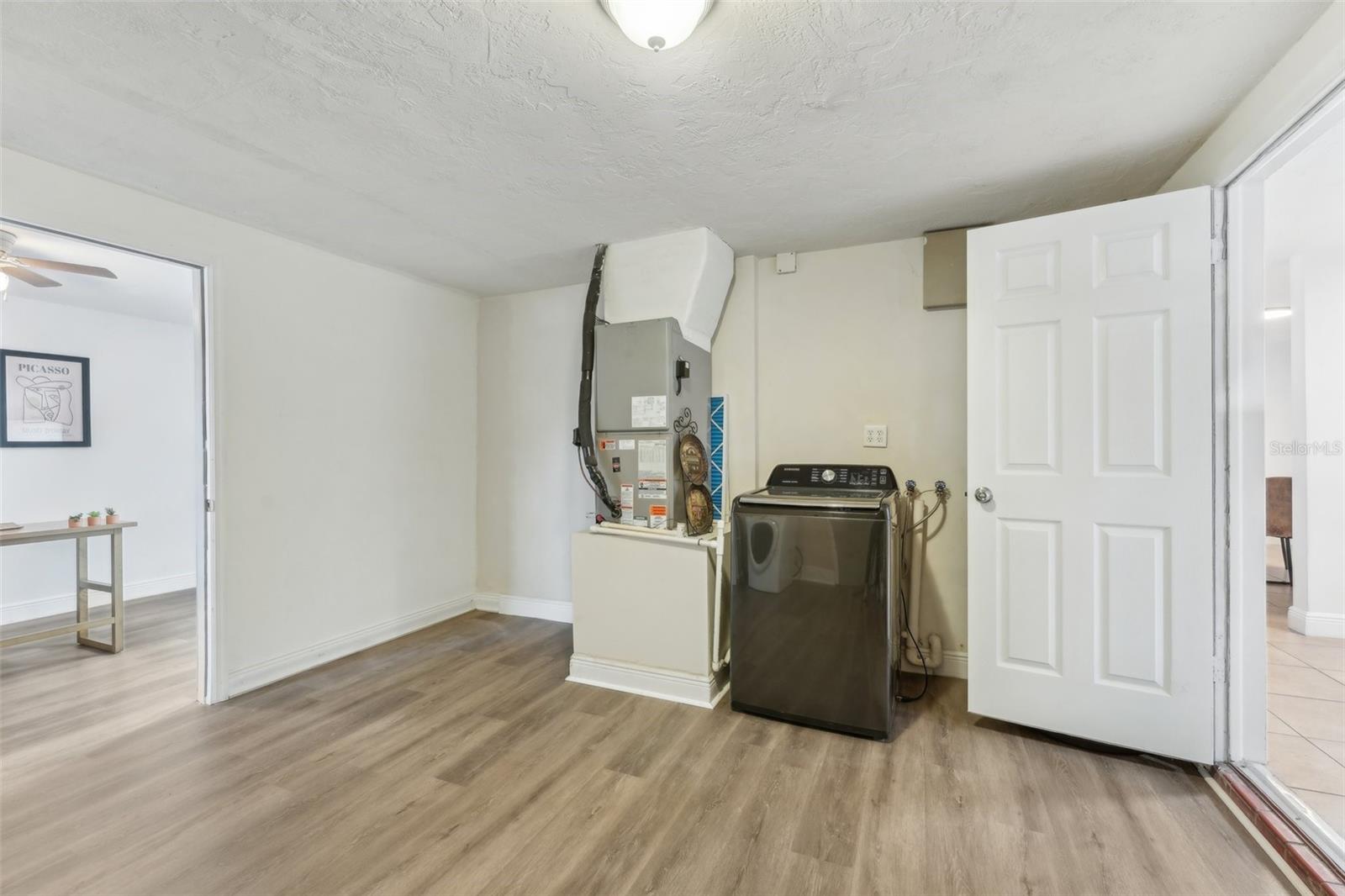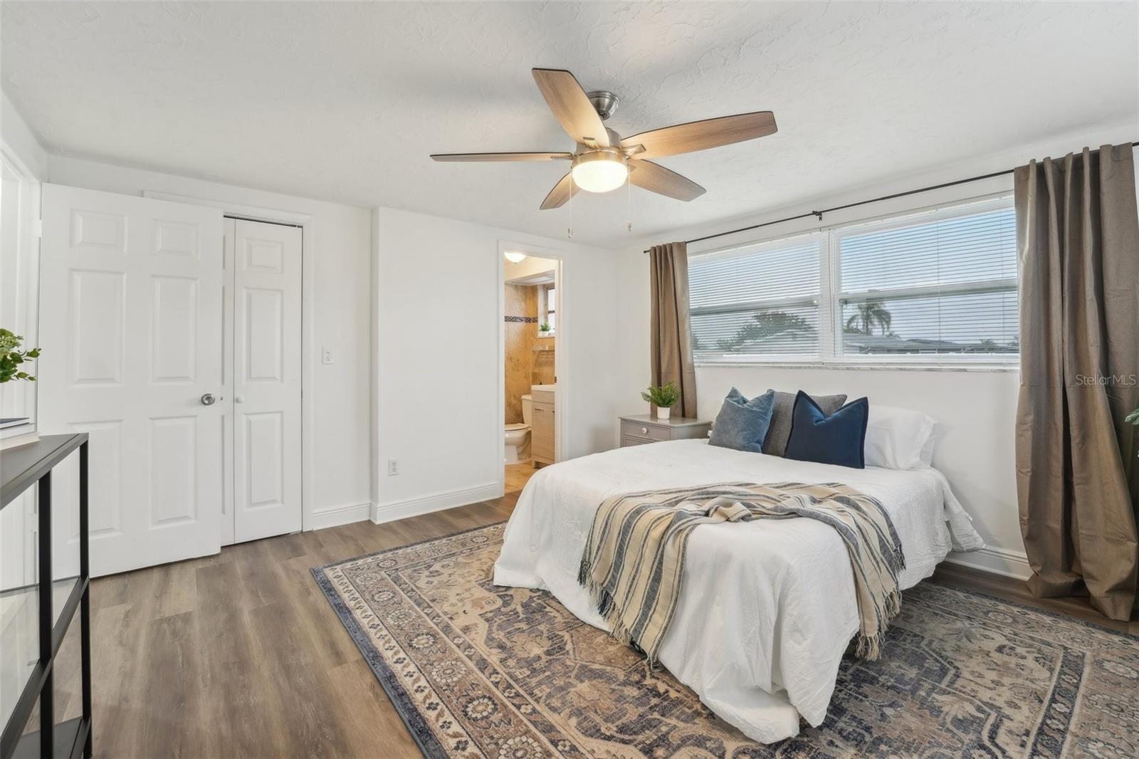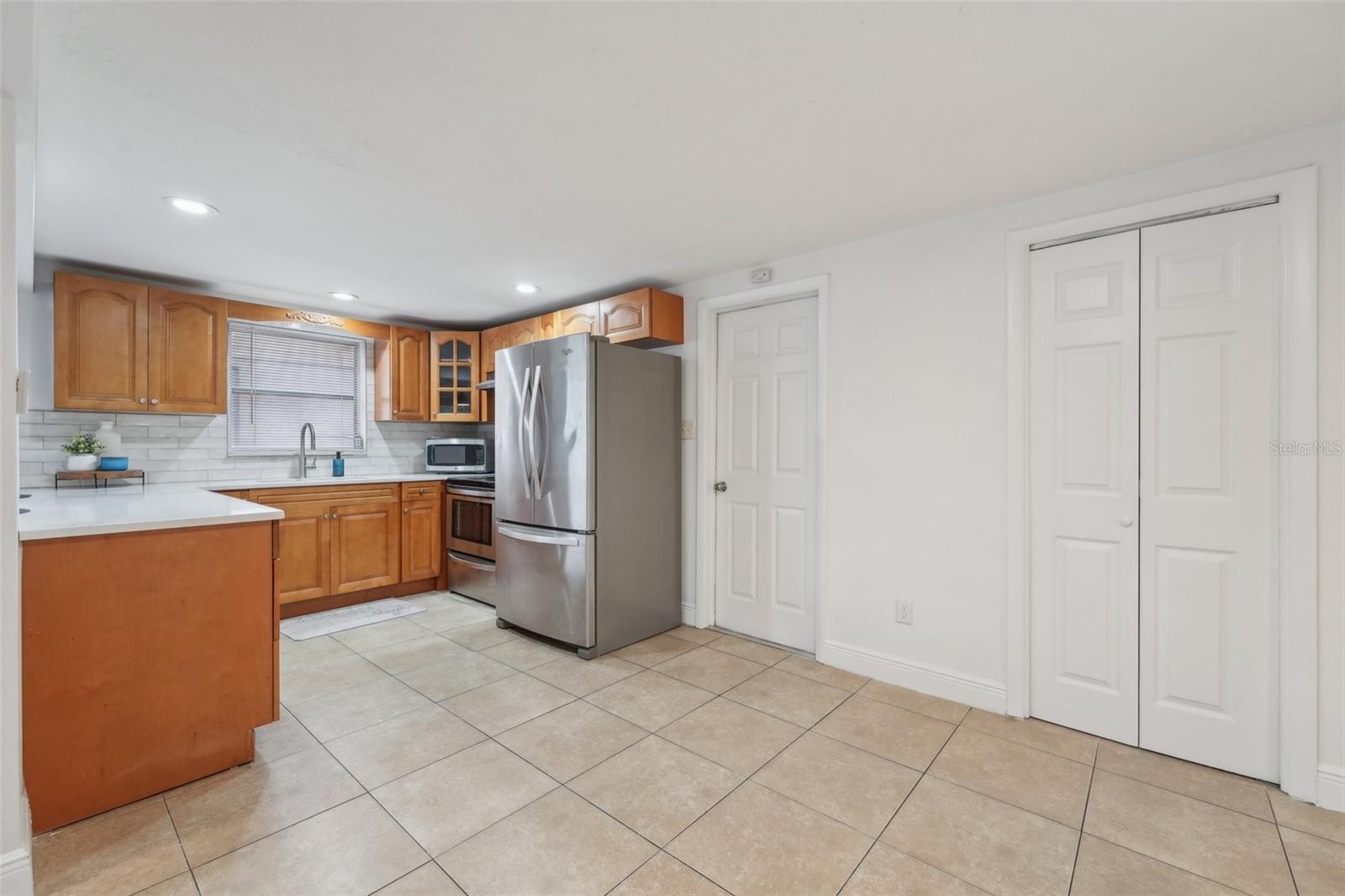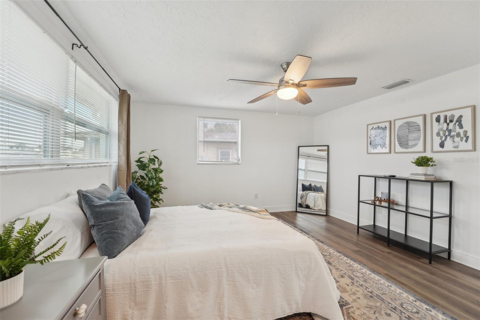Seller will offer $5k buyer credit to use towards closing costs and/or buying down the rate. This beautifully updated home combines modern comforts with timeless charm, making it the perfect retreat for a small family or anyone seeking a low-maintenance lifestyle. Ideally located near shopping, dining, and major travel routes, this property offers unparalleled convenience and appeal. Step inside to discover elegant ceramic tile flooring in the living room and kitchen area and brand new laminate flooring in the bedrooms. The heart of the home is the upgraded kitchen, featuring sleek stainless steel appliances, stunning Quartz countertops, and ample space for meal prep and entertaining. Both bathrooms have been fully renovated, showcasing modern finishes and thoughtful design. Recent upgrades include a newer roof, fresh interior and exterior paint jobs, and energy-efficient LED lighting throughout. The garage has been expertly converted into a spacious office/laundry room, now equipped with a new split-unit air conditioner and newly replaced windows, making it an ideal space for remote work or hobbies. Five additional updated windows enhance the home’s natural light and energy efficiency. The lanai, complete with a nearly new grill, is perfect for hosting outdoor gatherings or enjoying quiet evenings. This home is truly move-in ready, with every detail thoughtfully addressed to provide a cozy and modern living experience. Don’t miss the chance to own this gem! Schedule your showing today and make it yours before it’s gone!