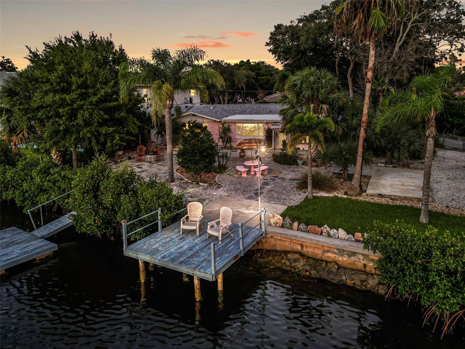 AMAZING OPPORTUNITY! INCREDIBLE WATERFRONT PROPERTY! AS IS, Remediation from Hurricane Helene is complete and this home is a perfectly clean palette; ready for you to put the finishing touches on your Secluded, Paradise Oasis! LOCATION IS A GEM! Quick and easy access to the Gulf of Mexico, Private westerly facing home boasts the most incredible views and sunsets providing you with an abundance of extra space to accommodate your boats, aquatic toys and even a motorhome! Oversized, quiet, and fenced, the lot is situated on a private peninsula with only two more houses beyond the property. Uniquely protected by a 97-foot seawall with two private docks, one stationery and one floating. From your own backyard, you can fish, boat, or kayak and be out on the open waters of the Gulf or be downtown on the river in just a few minutes. With serene surroundings, you won’t have the feeling of being on top of your neighbors. You will love this unique blend of privacy and openness that is hard to find anywhere else! Floorplan is ideal with a flowing open feel, a huge Primary Bedroom with a private bath, shower, and oversized walk-in closet. Wake up every morning to the tranquility of your unspoiled, breathtaking view from the comfort of your bed. There is no way to describe the beauty of the setting, as it must be seen to be genuinely appreciated. Tile floors throughout make your seaside lifestyle even easier to maintain. There is a NEW ROOF (2021) and NEW HVAC CENTRAL AIR AND HEAT complete with transferable warranties. The OVERSIZED TWO CAR GARAGE can store everything you need and could be used as a workshop with plenty of room to spare or can easily be converted into another bedroom. This property is so unique that once you see this home and it's amazing views, you are sure to fall in love. Don’t miss out on this remarkable opportunity. This home would be perfect for short-term rentals. You will be proud of all the 5-star reviews on this Paradise Retreat! Present all offers. ***The home was not substantially damaged by the storm and may be repaired in any way that you wish.*** 3D walkthrough and interior photos were prior to Helene*** General Contractor Quote to Repair Home to Pre Hurricane Condition $55k. Quote available upon request.