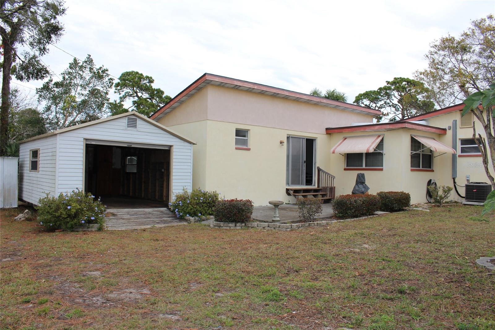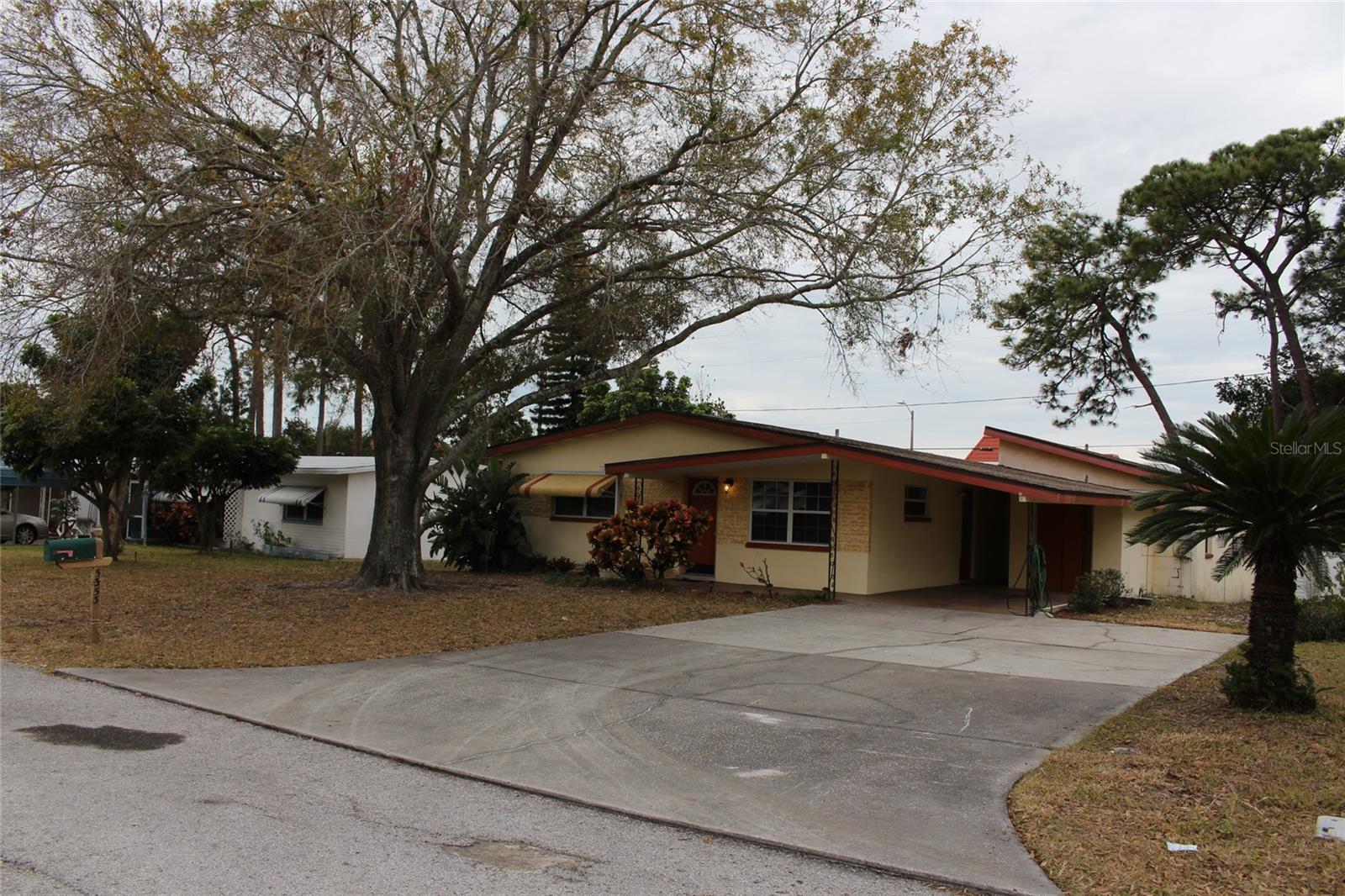 Nice and affordable. 2 bedroom, 2 bath home located near Downtown New Port Richey, the Pithlachsascotte River, Tarpon Springs and easy access to US 19. Close to shopping, restaurants, entertainment and medical. Located about 35-40 minuted to Tampa Internatiinal Airport and St Pete/Clearwater International Airport. Home has a newer roof, 9/2024, water heater 2018, Trustee thinks the A/C is around 2018. Both bedrooms are nice size. There is a large family room with a vaulted ceiling, plant shelves and a large walk in closet plus a full bath. Nice sized kitchen with an adjoining dining area. There is a large utility room off the carport for additional storage with a full size washer and dryer. Behind the carport is a huge workshop or storage building. The room sizes shown are estimated and the buyer should measure the rooms for exact dimensions and verify all printed information,