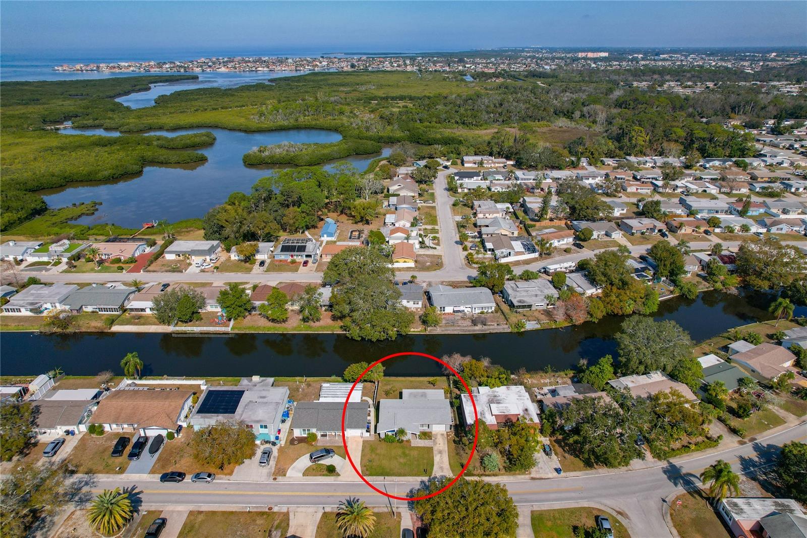 This Beautiful 3 Bedroom, 2 bath, 1 car garage, waterfront home with 1,344 sqft is move in ready! You will be wowed by the water view as soon as you step through the front door into this open floor plan, light and bright home! Living area features crown molding, neutral ceramic tile throughout the home. All new blinds have been installed on all the windows. The remodeled kitchen features a breakfast bar, stainless steel appliances, granite tile counters and gorgeous tile backsplash. Large, fenced yard directly on a freshwater canal. Remodeled bathrooms with tiled shower in master and tub with tile in common bathroom. Brand new roof in May 2021. New AC in July 2020. New Water Heater in January 2020. All new interior and exterior paint in May 2021.