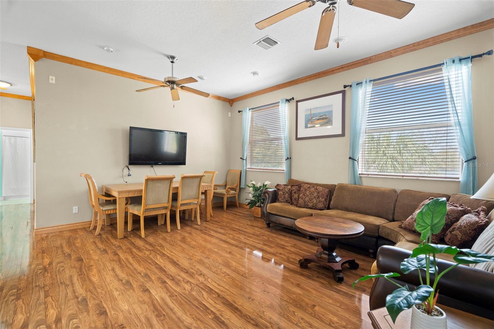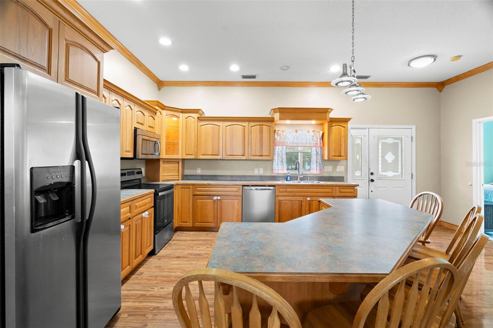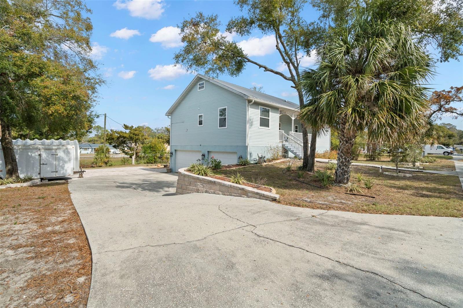 This exceptional property, blocks away from the vibrant downtown New Port Richey, presents a rare opportunity to own a spacious home on a 1/3-acre lot. Perfect for multi-generational living, this home features a separate living level (MOTHER-IN-LAW SUITE?) and an array of thoughtful upgrades. The home has been carefully maintained and offers plenty of living space. The upstairs is bright and open, featuring a living, dining, and kitchen area that’s perfect for family gatherings. With 3 large bedrooms, a laundry room, and ample closet space, the main level is designed for comfort and convenience. High ceilings enhance the feeling of openness throughout. Enjoy the large rocking chair front porch, recently tiled, with a view of New Port Richey’s original "main" street, lined with trees. The lower level offers additional living space with a private entrance, including a 1-bedroom suite, a full kitchen, and versatile rooms that can be used for living, dining, recreation, or an art studio. The space was recently reconfigured with quality craftsmanship and includes a 2-car garage for added convenience. Step outside to a large screened lanai with new tile flooring, overlooking a peaceful water retention pond frequented by ducks and shorebirds, offering both tranquility and privacy. The property also includes a partially fenced yard, newly added pavers for a 2nd driveway, enhanced landscaping with newly planted trees, and a block retaining wall. Need more storage? The large outbuilding can accommodate a golf cart (New Port Richey is golf-cart friendly!), workshop materials, campers, or even a boat. There’s plenty of parking, with alley access and space on all sides of the house. This unique property offers endless possibilities with its expansive living areas, private suite, and prime location near downtown New Port Richey. It’s the perfect blend of historic charm and modern convenience.