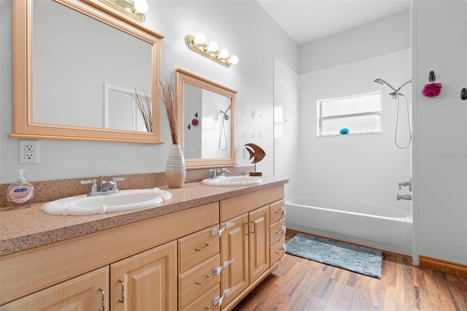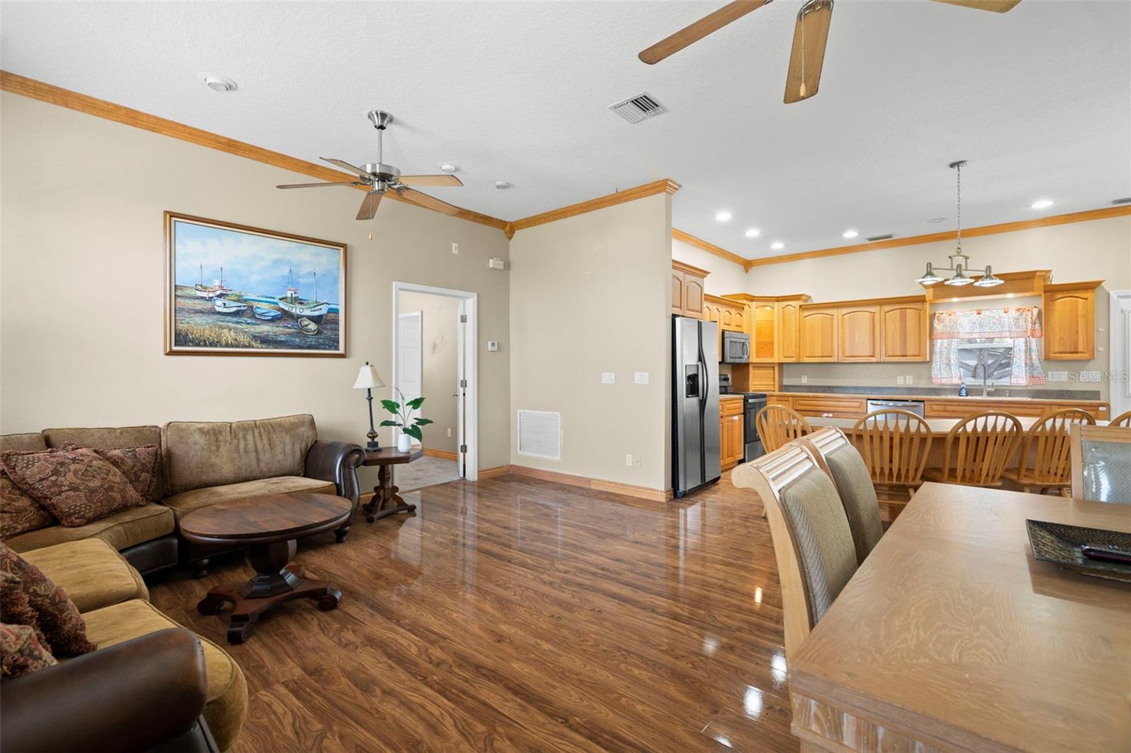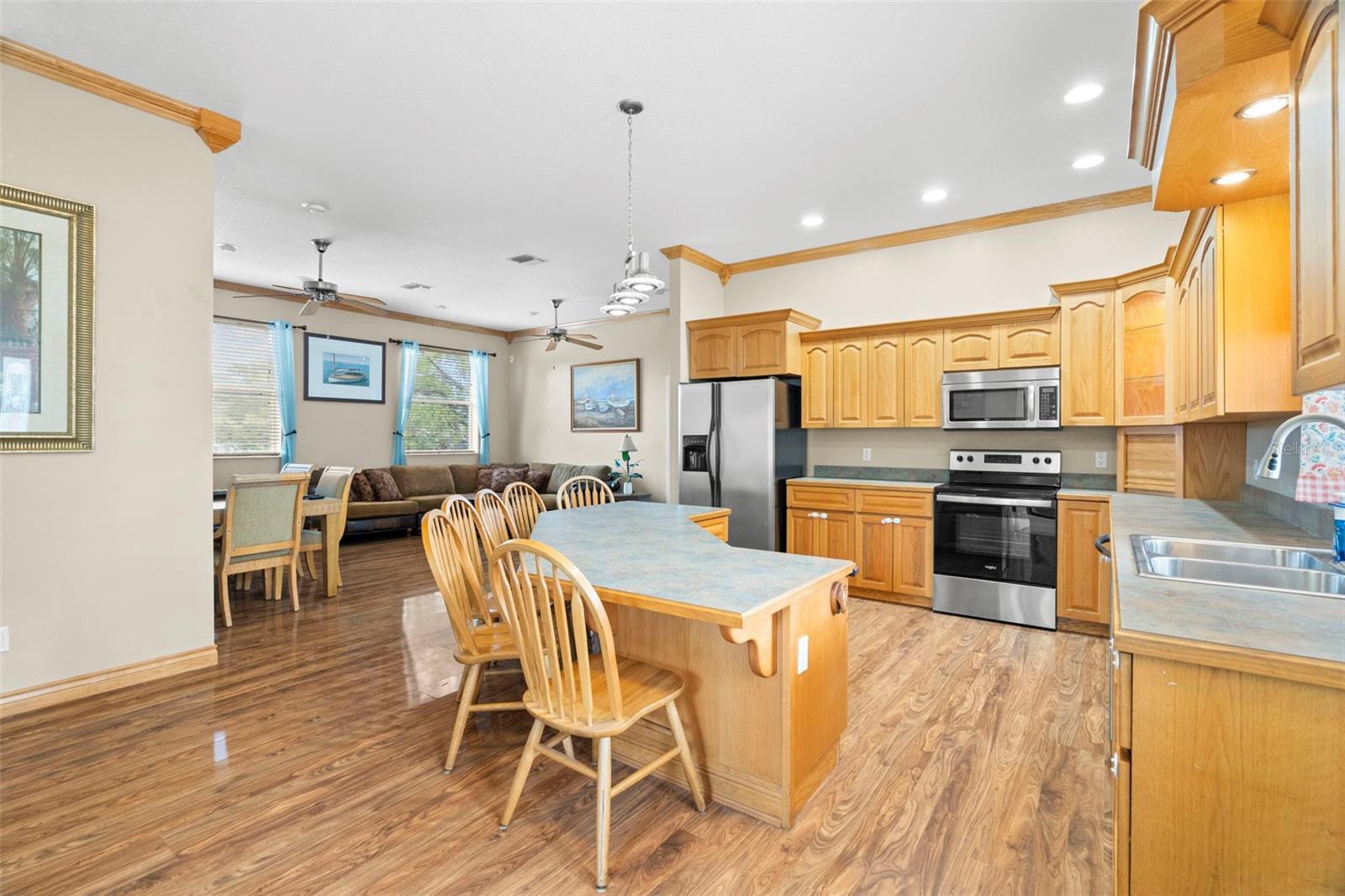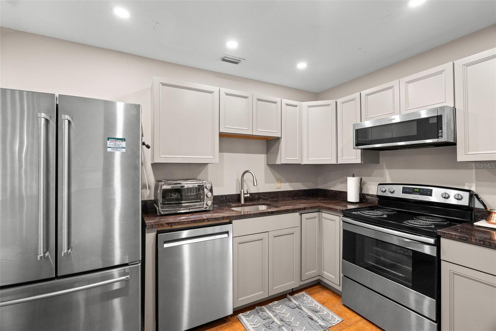 This exceptional property, blocks away from the vibrant downtown New Port Richey, presents a rare opportunity to own a spacious home on a 1/3-acre lot. Perfect for multi-generational living, this home features a separate living level (MOTHER-IN-LAW SUITE?) and an array of thoughtful upgrades. The home has been carefully maintained and offers plenty of living space. The upstairs is bright and open, featuring a living, dining, and kitchen area that’s perfect for family gatherings. With 3 large bedrooms, a laundry room, and ample closet space, the main level is designed for comfort and convenience. High ceilings enhance the feeling of openness throughout. Enjoy the large rocking chair front porch, recently tiled, with a view of New Port Richey’s original "main" street, lined with trees. The lower level offers additional living space with a private entrance, including a 1-bedroom suite, a full kitchen, and versatile rooms that can be used for living, dining, recreation, or an art studio. The space was recently reconfigured with quality craftsmanship and includes a 2-car garage for added convenience. Step outside to a large screened lanai with new tile flooring, overlooking a peaceful water retention pond frequented by ducks and shorebirds, offering both tranquility and privacy. The property also includes a partially fenced yard, newly added pavers for a 2nd driveway, enhanced landscaping with newly planted trees, and a block retaining wall. Need more storage? The large outbuilding can accommodate a golf cart (New Port Richey is golf-cart friendly!), workshop materials, campers, or even a boat. There’s plenty of parking, with alley access and space on all sides of the house. This unique property offers endless possibilities with its expansive living areas, private suite, and prime location near downtown New Port Richey. It’s the perfect blend of historic charm and modern convenience.