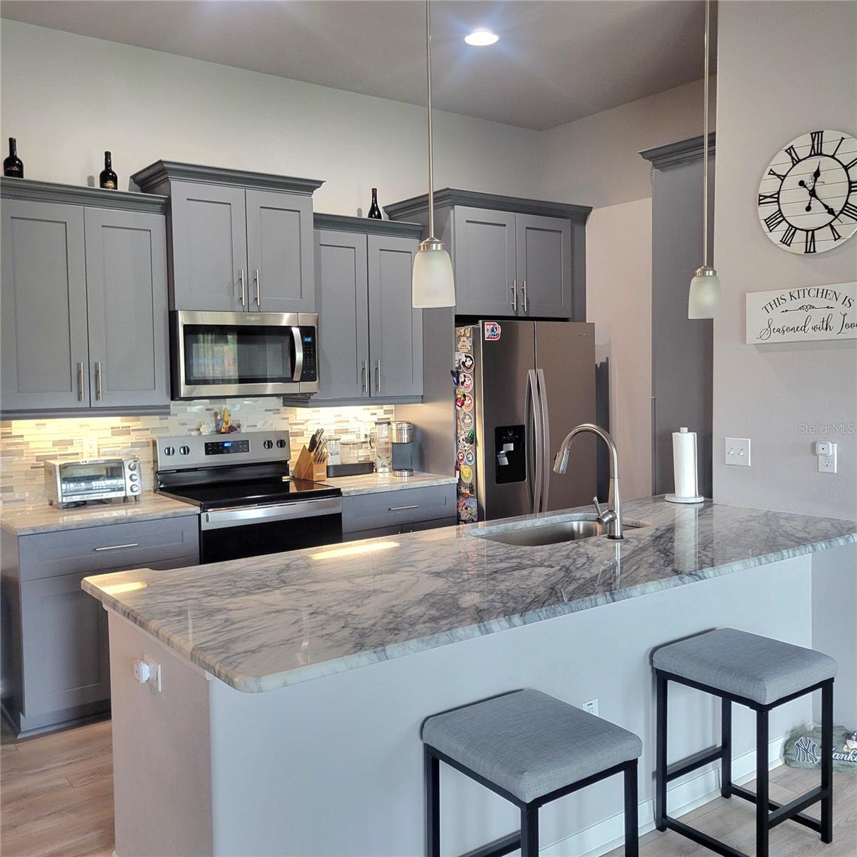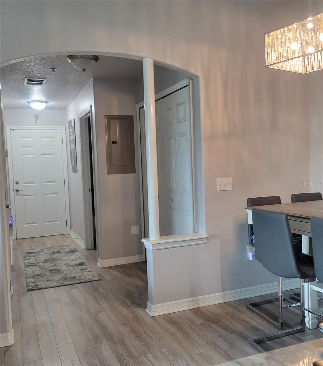 Embrace the coastal vibe in this two bedroom two bath condo with BONUS ROOM and GARAGE. Where Luxury and Convenience came together. Hop on the ELEVATOR up to the third floor or get your steps in and take the stairs. Light and bright, OPEN FLOOR PLAN with split bedrooms. Modern touches throughout such as NO CARPETING, VAULTED CEILINGS, ECOBEE STATE OF THE ART THERMOSTAT, ADT SECURITY SYSTEM, NEW STAINLESS STEEL STOVE and MICROWAVE, TOUCHLESS KITCHEN FAUCET. Gourmet kitchen with PANTRY, Stunning GRANITE COUNTERTOPS and BREAKFAST BAR... Sliding glass doors which leads to your soon to be your BALCONY so you can unwind, relax and enjoy those amazing SUNSETS right from your condo. The PRIMARY bedroom has a ceiling fan and features a CUSTOM CALIFORNIA CLOSET with warranty, EN SUITE BATHROOM has a custom designed shower, DUEL SHOWER HEADS, glass shower door, GRANITE VANITY. On the ground level there's a one car GARAGE with EPOXY FLOORING and a 16x10 BONUS ROOM French doors that leads to a PATIO off the bonus room that gives you extra OUTDOOR LIVING SPACE... The charming Regency Palms community features POOL, HOT TUB, CABANA, BBQ AREA, DOG PARK.. Green key free Beach is located down the road with picnic areas and nature trails or Optional private Beach Club in Gulf Harbors minutes away for a yearly membership fee of approx $200 a family if you choose to join.. Historic Main street in Downtown NPR is up the street where you can enjoy the Quaint shops, Restaurants, Bars and occasional street activities, concerts and more... Own a piece of FLORIDA REAL ESTATE and start ENJOYING THE COASTAL LIFESTYLE