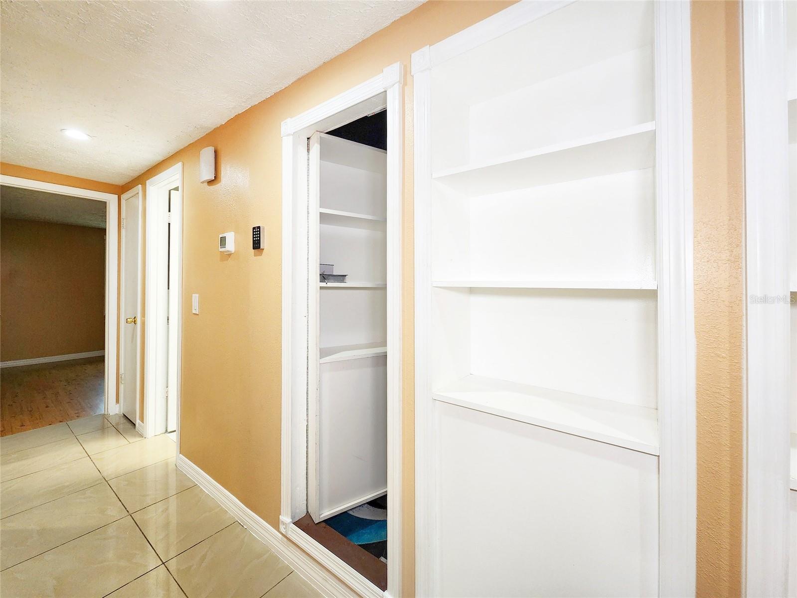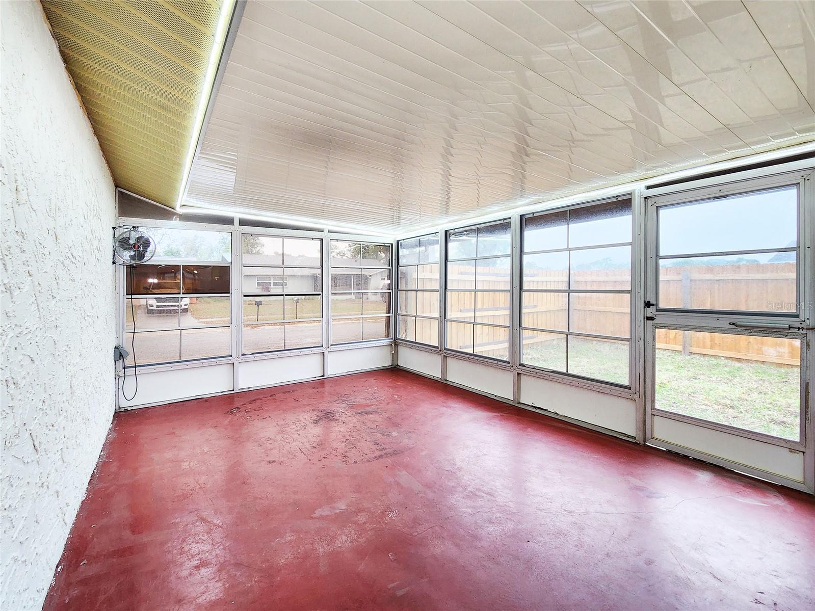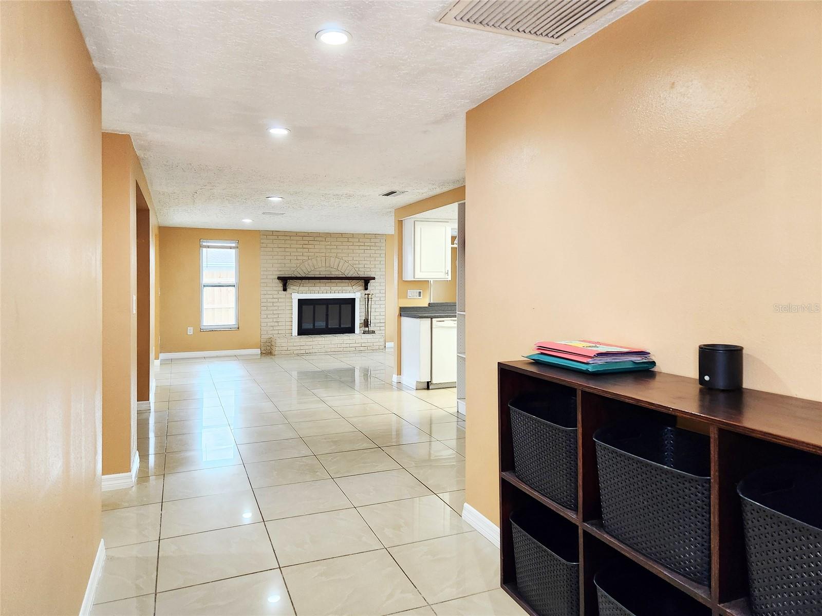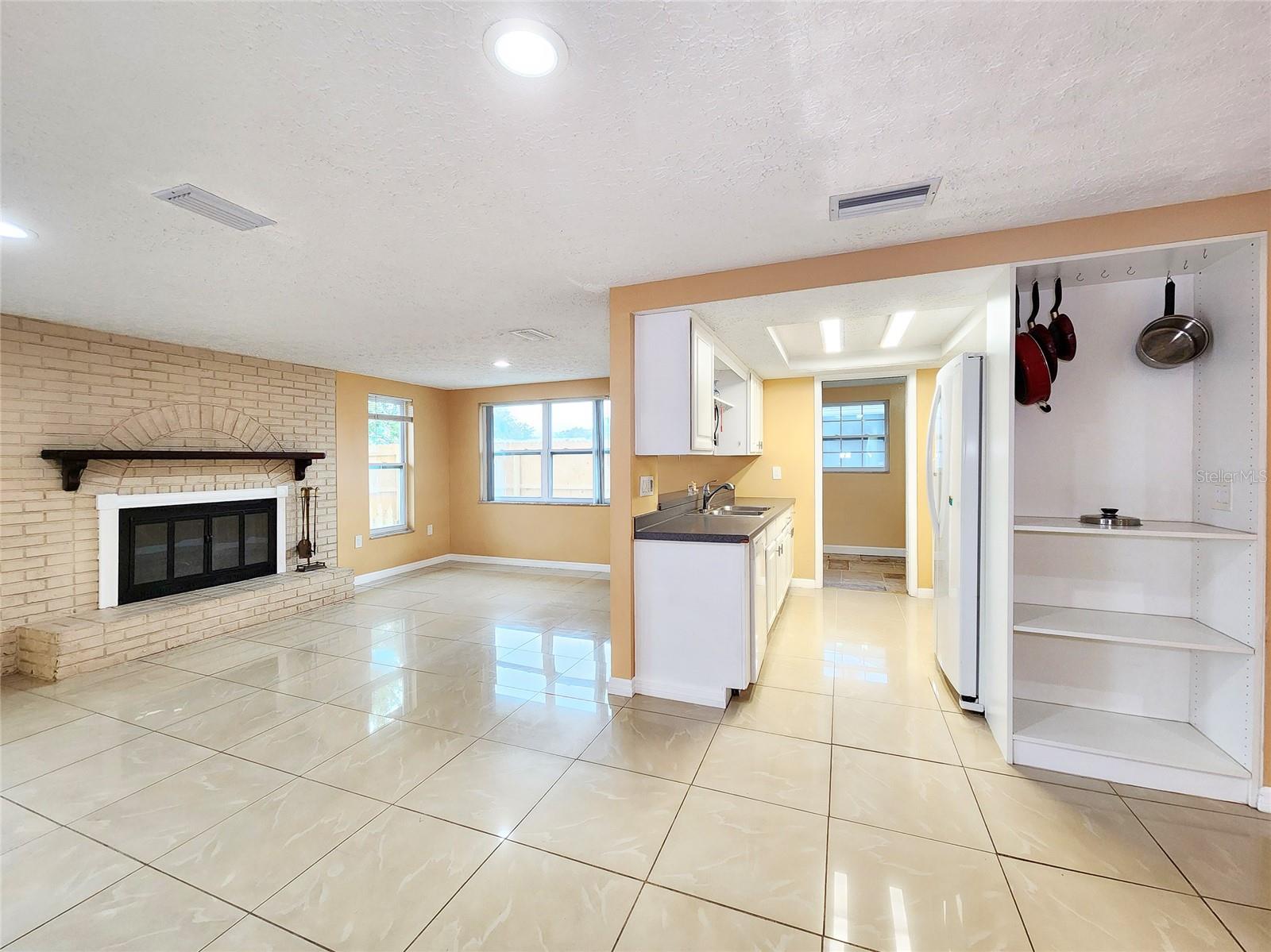 Discover this expansive and truly distinctive residence—one of the largest homes in the entire neighborhood! Step inside to experience a versatile floor plan brimming with character and thoughtful features. A welcoming wood-burning fireplace sets the tone in the main living area, complemented by a practical pass-through kitchen designed for effortless entertaining. Most of the home showcases impressive 20-inch tile flooring, combining style with durability. The freshly painted interior and modern recessed LED lighting create a bright, inviting atmosphere throughout. Tucked away off the main hallway, you’ll uncover a hidden room—an ideal spot for a private study, hobby space, cozy hideaway or gaming room. Known as a "Murphy Room", this secret room is tucked away behind a bookshelf in the hall.. what fun! The primary suite is spacious and elevates everyday living with LED lighting featuring a soothing midnight glow option. Enjoy the added living space of the finished Florida room, perfect for lounging or hosting guests. Energy-efficient double-pane windows help keep utility costs in check, while the seller notes a newer roof and an AC system installed in 2020. For added security and comfort, the home is pre-wired for a generator. Outdoors, a partially covered patio provides the perfect place to sip your morning coffee, and the backyard has been freshly sodded and includes a low-gated dog run where your four-legged companions can safely play. This one-of-a-kind property blends comfort, function, and unique charm—come see it for yourself and imagine the possibilities!