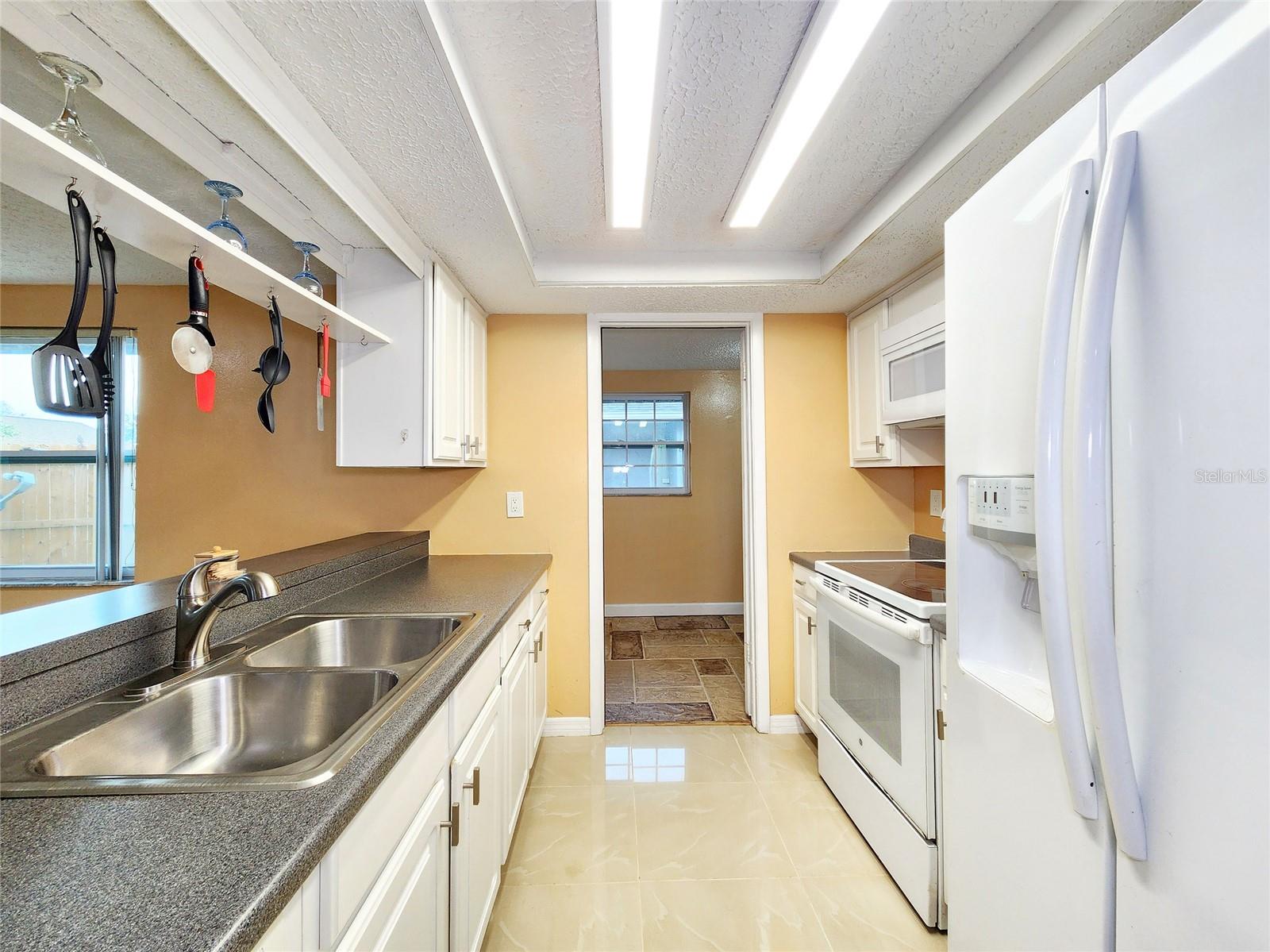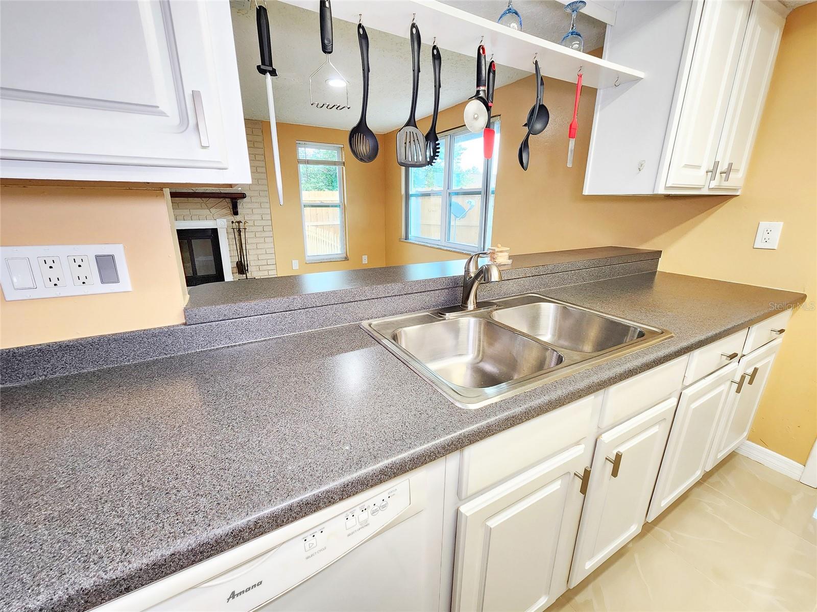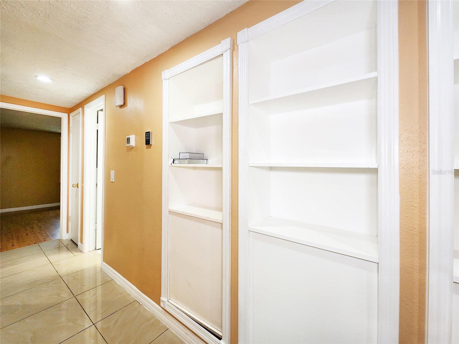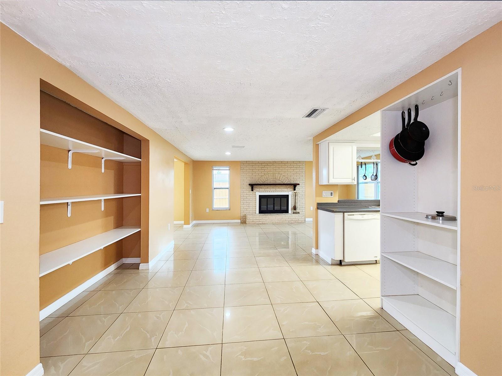 Discover this expansive and truly distinctive residence—one of the largest homes in the entire neighborhood! Step inside to experience a versatile floor plan brimming with character and thoughtful features. A welcoming wood-burning fireplace sets the tone in the main living area, complemented by a practical pass-through kitchen designed for effortless entertaining. Most of the home showcases impressive 20-inch tile flooring, combining style with durability. The freshly painted interior and modern recessed LED lighting create a bright, inviting atmosphere throughout. Tucked away off the main hallway, you’ll uncover a hidden room—an ideal spot for a private study, hobby space, cozy hideaway or gaming room. Known as a "Murphy Room", this secret room is tucked away behind a bookshelf in the hall.. what fun! The primary suite is spacious and elevates everyday living with LED lighting featuring a soothing midnight glow option. Enjoy the added living space of the finished Florida room, perfect for lounging or hosting guests. Energy-efficient double-pane windows help keep utility costs in check, while the seller notes a newer roof and an AC system installed in 2020. For added security and comfort, the home is pre-wired for a generator. Outdoors, a partially covered patio provides the perfect place to sip your morning coffee, and the backyard has been freshly sodded and includes a low-gated dog run where your four-legged companions can safely play. This one-of-a-kind property blends comfort, function, and unique charm—come see it for yourself and imagine the possibilities!