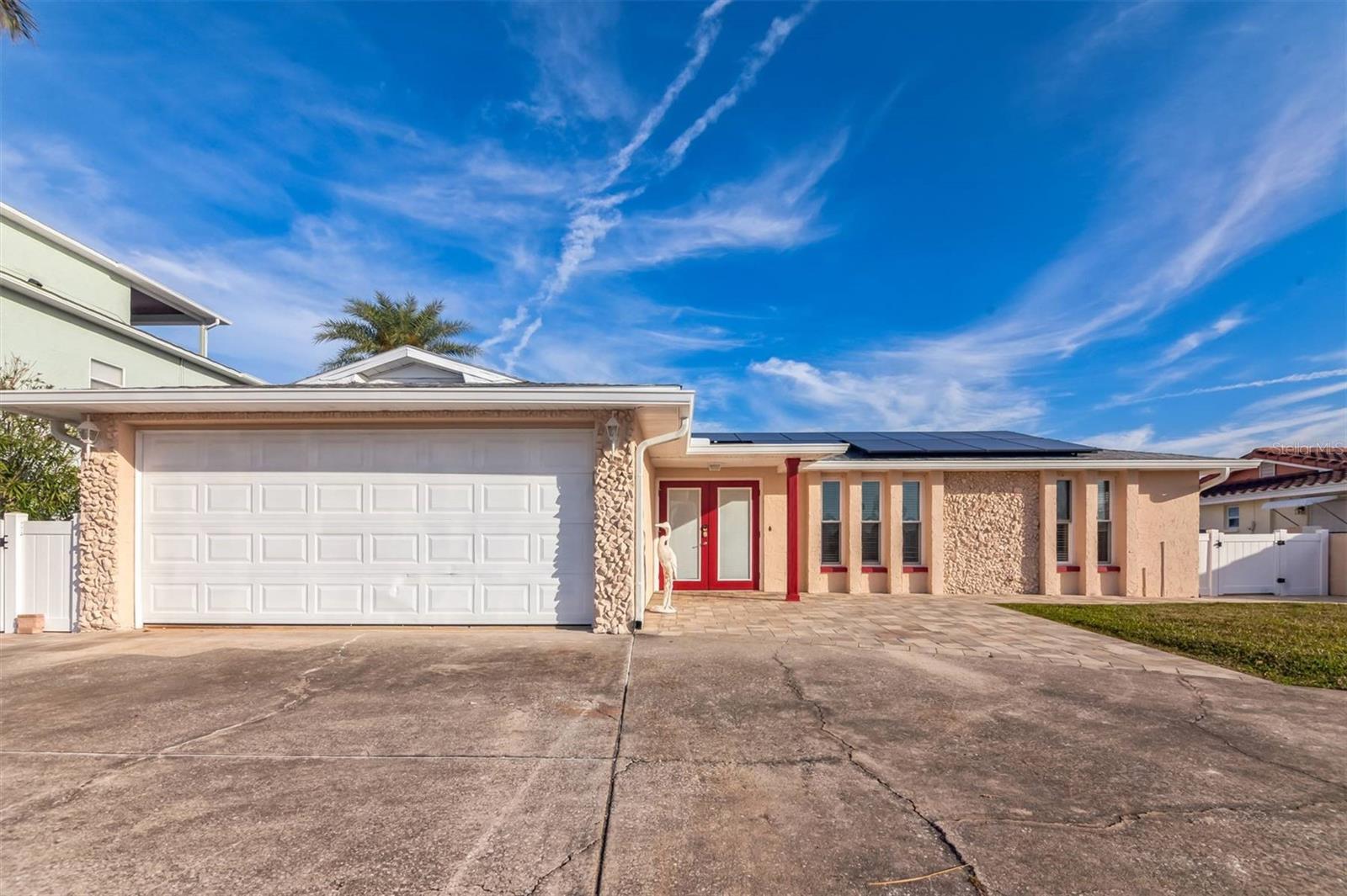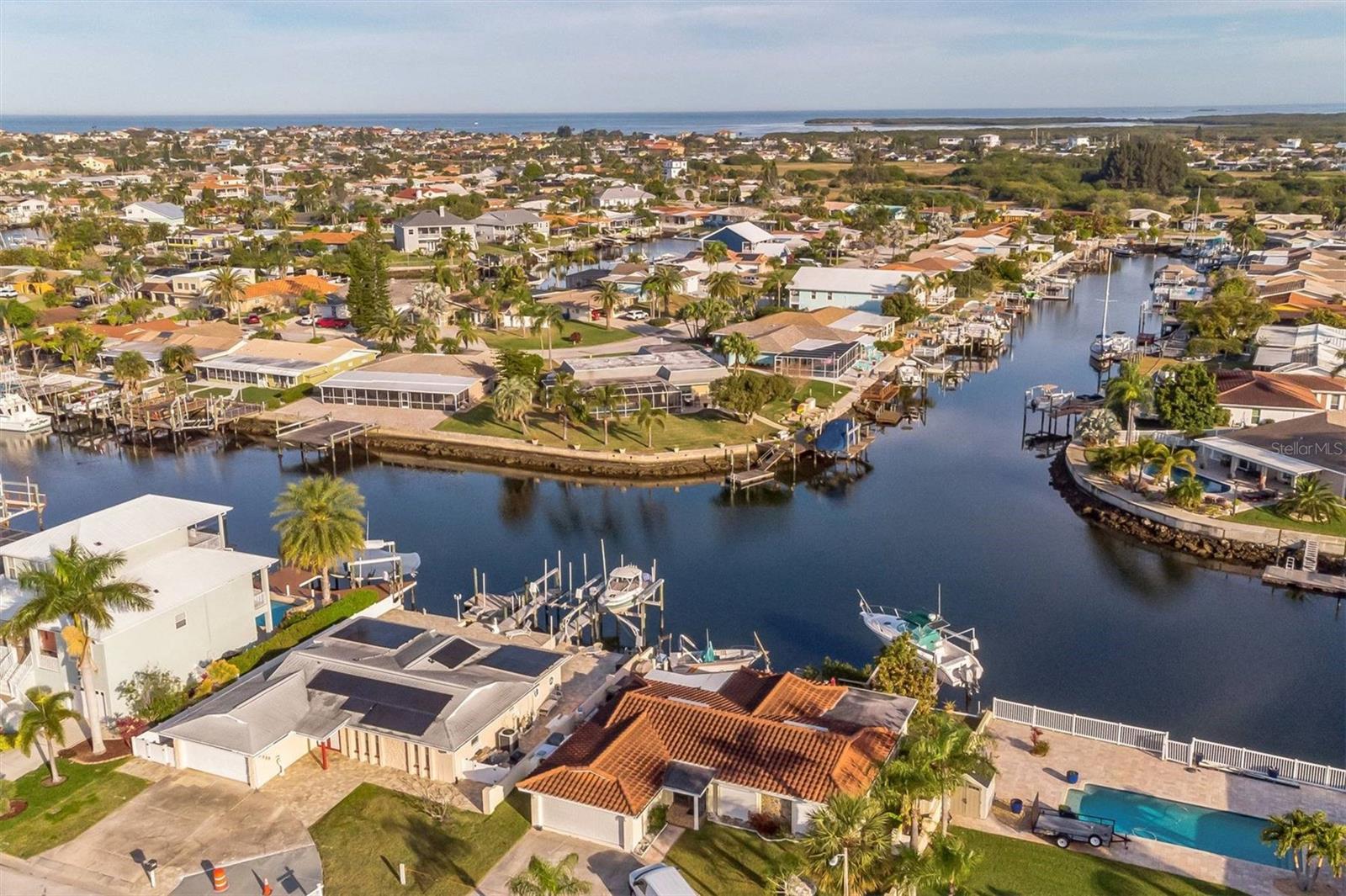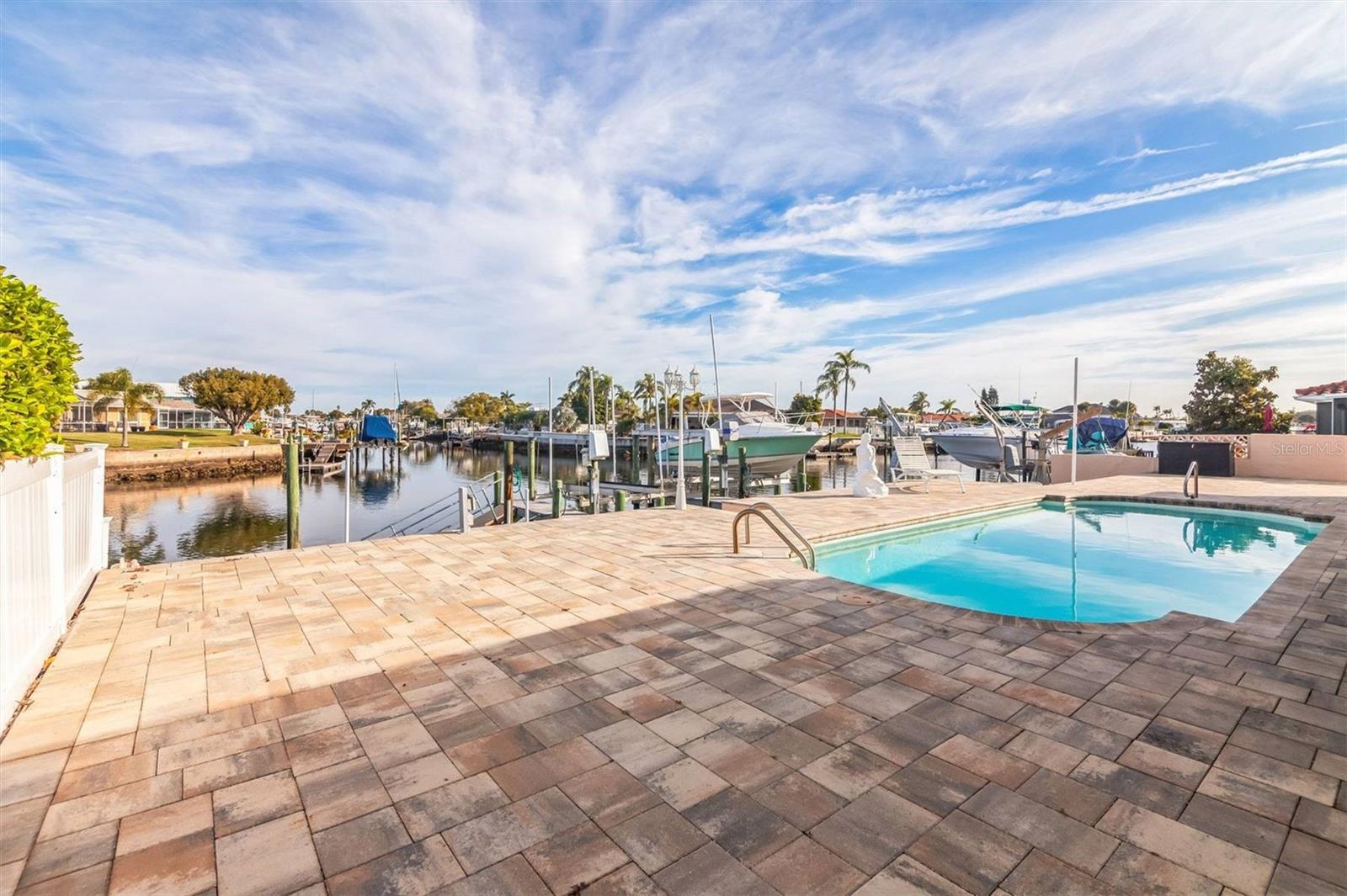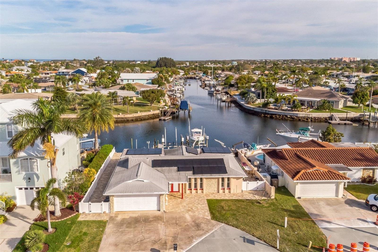 FLOOD INSURANCE IS TRANSFERRABLE!!! 500 FEET TO OPEN GULF. 30 FOOT HEATED POOL. TWO BOAT LIFTS. NO ELECTRIC BILL, SOLAR PAID OFF. REMODELED INSIDE AND OUT. OWNER WILL CONSIDER 50% OWNERSHIP TO A SNOWBIRD. This completely remodeled home boasts a stunning kitchen with granite countertops, a granite island, and new, high-end, soft-close wood cabinets (19 total!). Remodeled bathrooms feature new tile showers and floors, an oversized tub, and new soft-close wood vanities with cultured marble sinks. New interior and exterior doors, 5-inch baseboards, and Levolor no-string blinds throughout. Updated lighting fixtures include bedroom fan/light, kitchen/dining area lights, garage lights, and exterior lights. Double-pane windows. Relax in the newly resurfaced 30-foot fiberglass heated pool (new Hayward pump and salt system) and take advantage of the new solar system (no electric bill!). Boaters will love the new 13,000lb and 11,000lb boat lifts, davits for a third vessel, a brand-new floating boat dock, and a jet ski floating dock. New flagstone pavers surround the home and pool. New gutters with underground drainage to canal. New privacy vinyl fence. 7-year-old A/C with a 15-year warranty. Generator transfer switch. Located on a quiet dead-end street. Don't miss this opportunity!