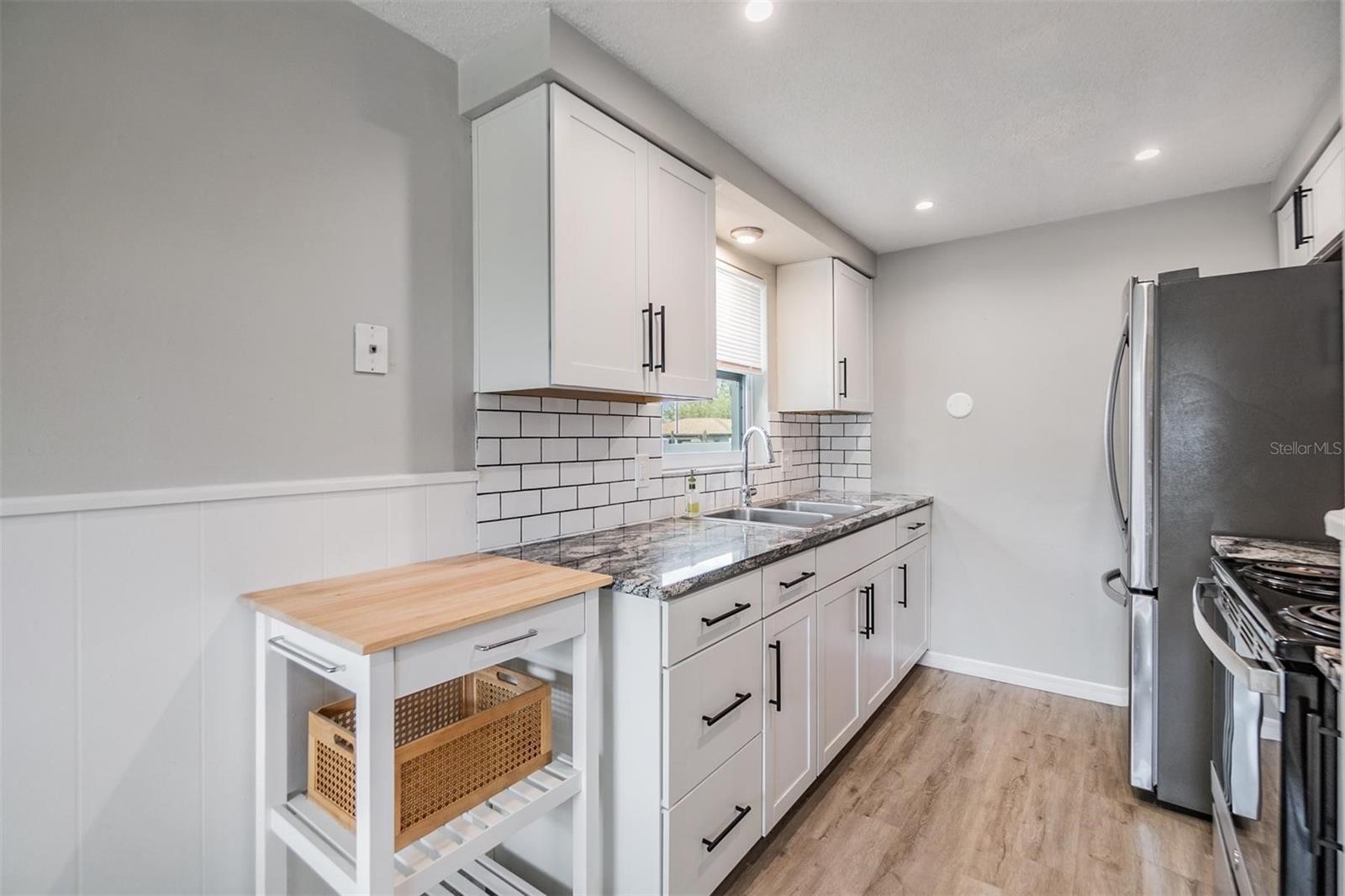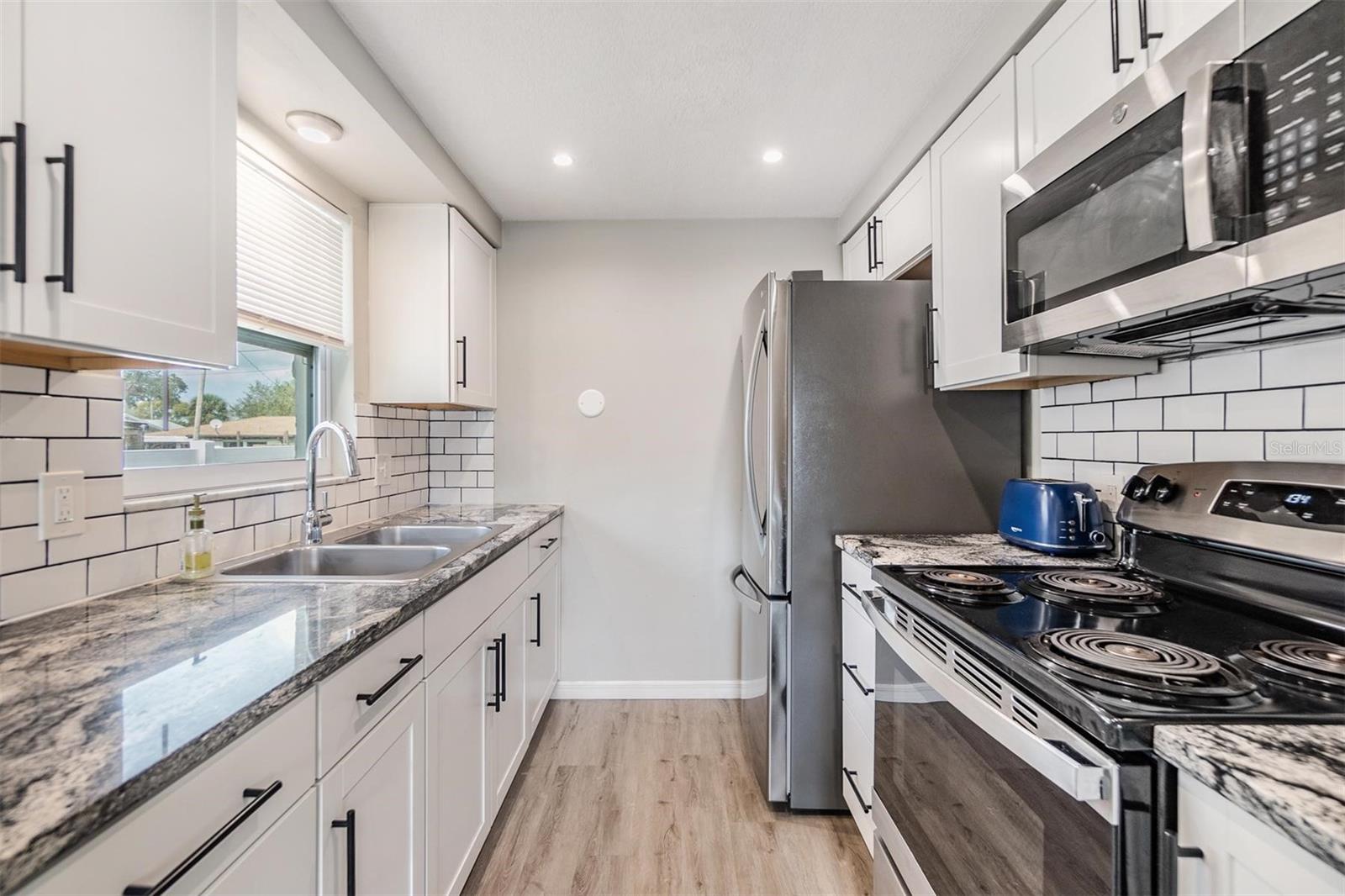 Charming & Move-In Ready Home Near Historic Downtown New Port Richey! Welcome to this beautifully updated 3-bedroom, 1-bathroom home, ideally located just minutes from Sims Park, stunning beaches, shopping, dining, and entertainment. With NO HOA or CDD, enjoy the freedom to make this home truly your own! Inside, you'll find modern upgrades throughout, including laminate flooring, custom granite countertops, wood cabinets, stainless steel appliances, and a stylish tile backsplash. The bathroom has been refreshed with a new vanity, while recessed lighting, ceiling fans, and updated light fixtures add a contemporary touch. Recent updates include fresh interior and exterior paint, a 2021 water heater, 2021 HVAC condenser and handler, and a 2021 electrical panel. Outside, the property offers a covered carport, additional parking pad, and private rear alley access. Don’t miss out on this incredible opportunity—schedule your private showing today!