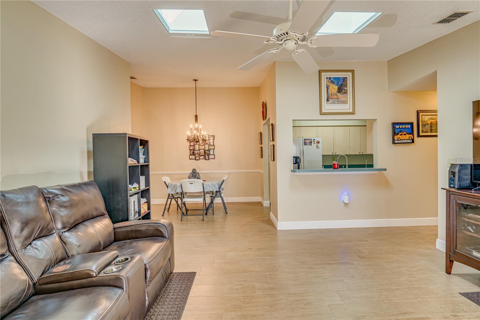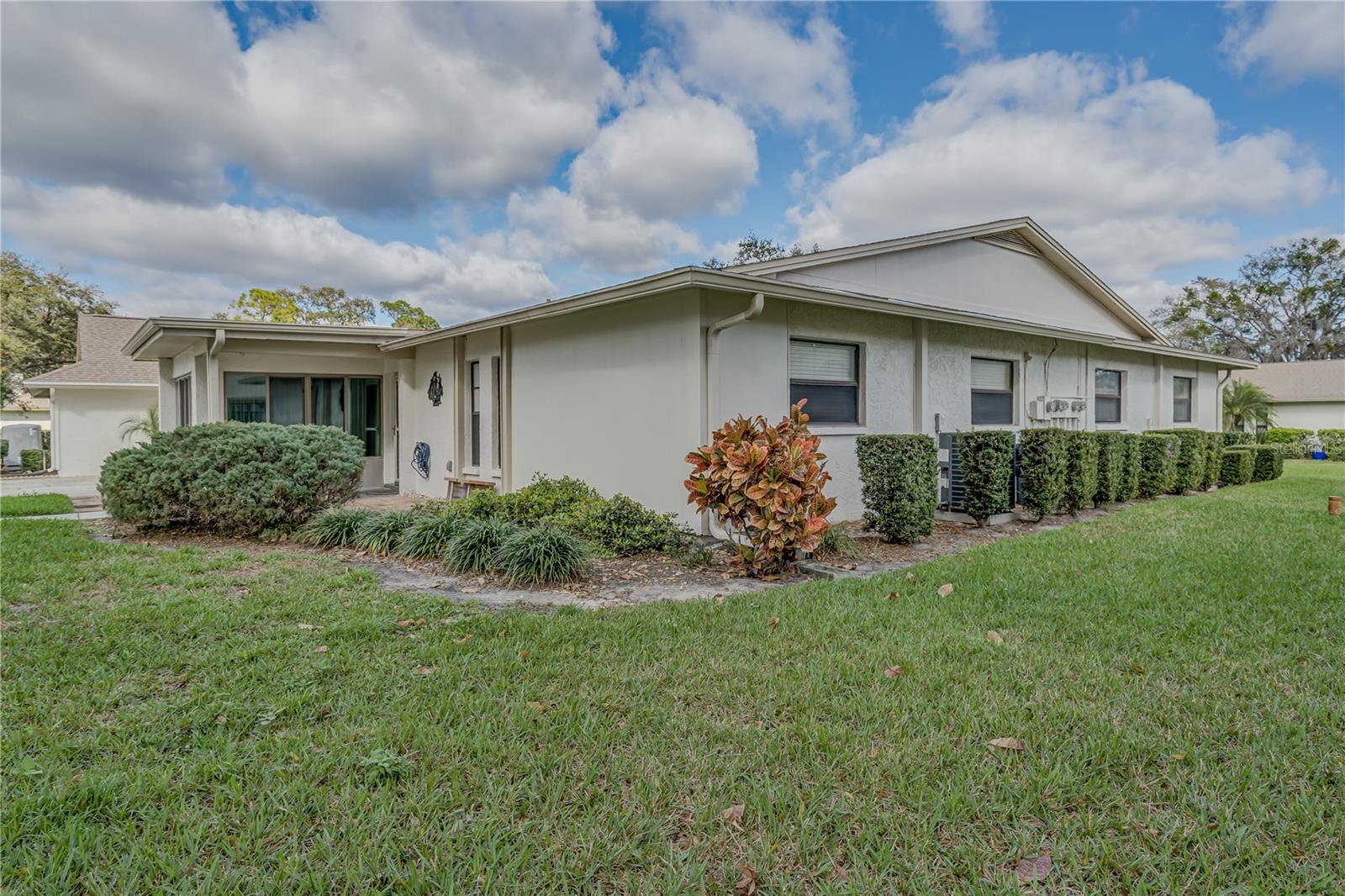 Seven Springs is the ULTIMATE in RESORT STYLE living! This SPECTACULAR COMMUNITY has absolutely everything that you could possibly want or that you have dreamed of. You have two GOLF COURSES, DRIVING RANGE, PUTTING GREEN, 2 SWIMMING POOLS, one of which is heated for year round enjoyment, well maintained PICKELBALL + TENNIS COURTS, a beautiful CLUBHOUSE which is always buzzing with activity...such a great place to meet up and connect, RESTAURANT, 2 BARS and a PRO SHOP. There are plenty of activities to keep yourself as active as you like. This 2 bedroom 2 bath villa with an attached garage, inside utility room, and plenty of parking is exactly what you have been looking for. As you enter, you will immediately notice the vaulted ceiling and wood like, neutral ceramic tiles throughout, that will compliment any color or your decor. The skylights provide so much natural light which makes this villa very warm and comfortable. The kitchen is open with plenty of counter space which is great for entertaining and interacting with guests. Enclosed patio provides you with extra space which gives you so many additional options. Primary bedroom is oversized with a LARGE walk in closest. Both bathrooms have been recently updated! The inside utility room (WASHER + DRYER INCLUDED) has plenty of storage with a new BARN DOOR that leads into the garage. Some furniture transfers to the new owners, please see list. Roof replace in 2020, water heater 2 years old, newer ceiling fans. Did I mention that this is NOT a +55 community...NOT in a FLOOD ZONE...PET FRIENDLY...CLOSE TO SHOPPING AND GREAT RESTAURANTS...AND... is the BEST PRICED UNIT IN SEVEN SPRINGS? WELCOME TO YOUR NEW RESORT STYLE LIVING...YOU ARE GOING TO LOVE IT!