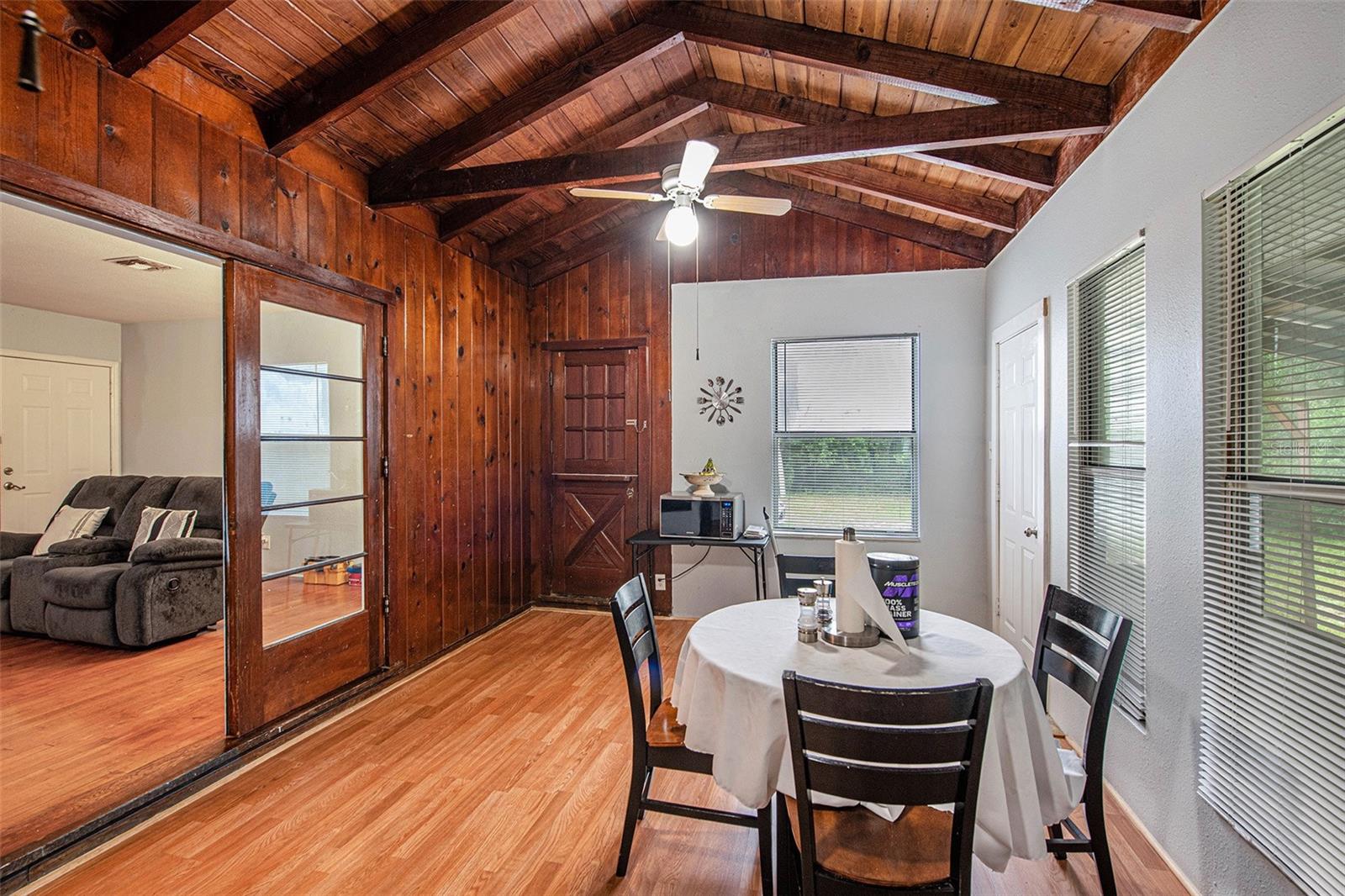 Beautiful 3-bedroom and 2-bathroom home located in an HOA-free community. This home is just minutes away from Moon Lake Park which offers a public boat ramp and beach. It's a perfect spot to take out your toys. This property is seated on an oversized lot, almost ½ an acre lot! Roof 2018; A/C 2017; 2019 new deep well and pump. Remodeled master bath and secondary bathroom. Plenty of room to entertain in the large family room with knotty pine cathedral ceilings, and French doors. This could be perfect for an investor, or it could be a great investment if it’s your first home. The house has a split plan and the Master bedroom with its master bath, main kitchen, and kitchen eating area, the other part of the house has a 2-bedroom one bathroom, a living room with a fireplace, and a dining room with an extra kitchen. This property could be a great starter for investors looking for passive income.