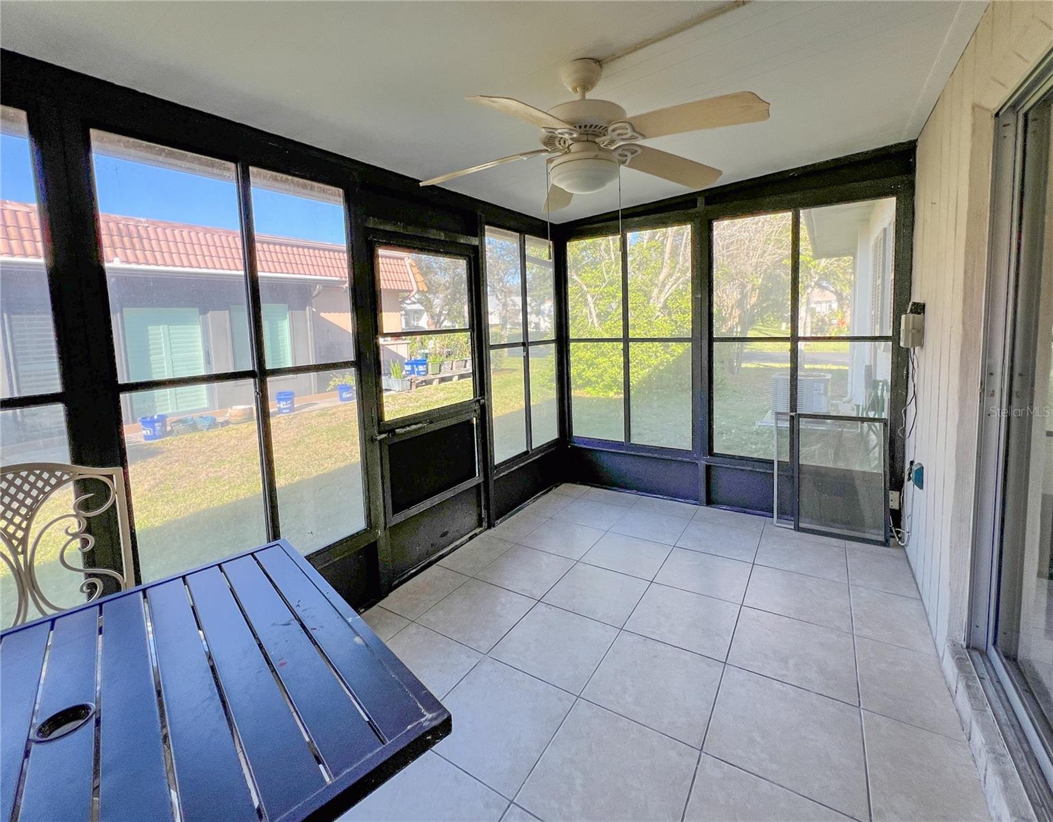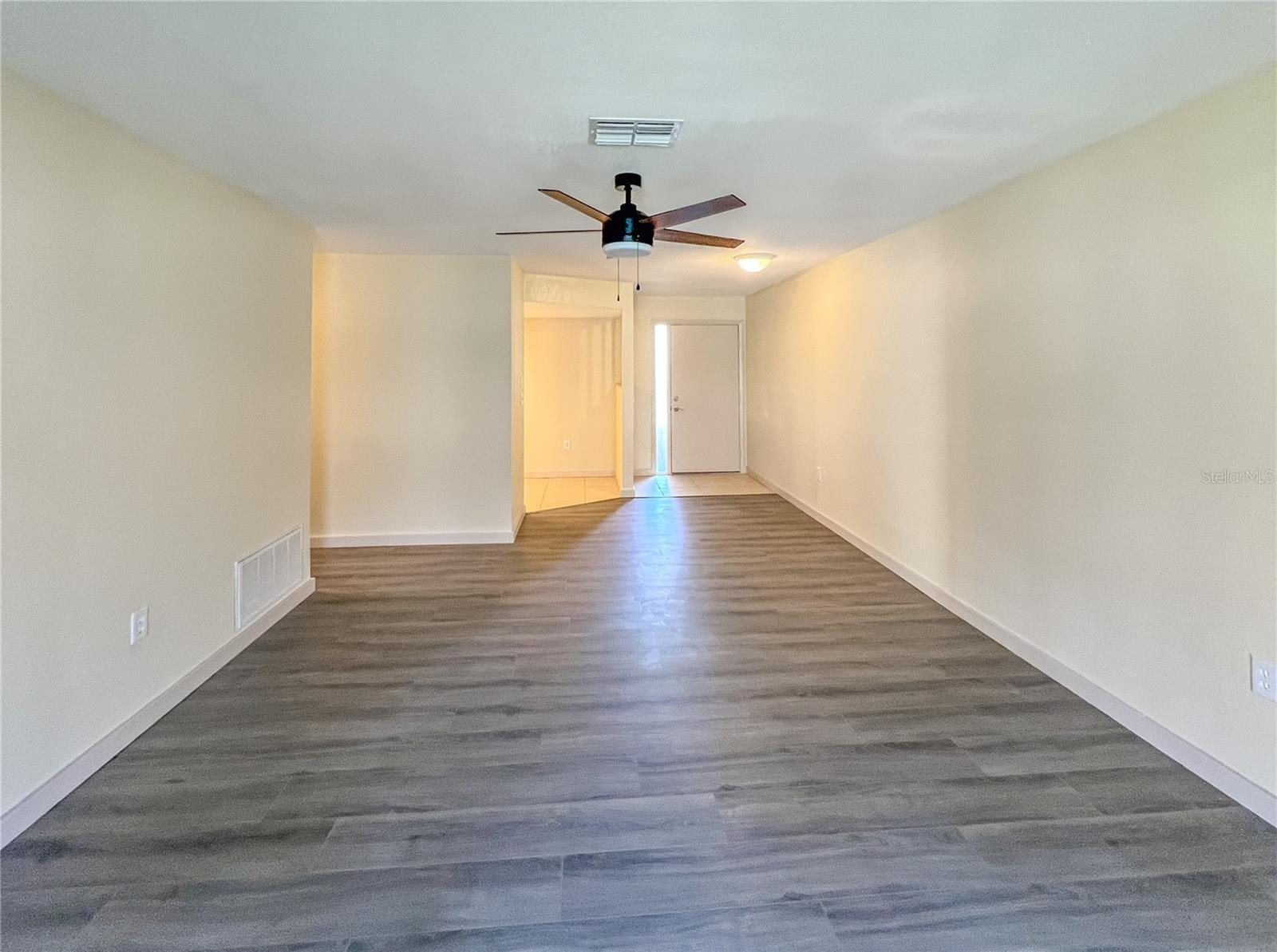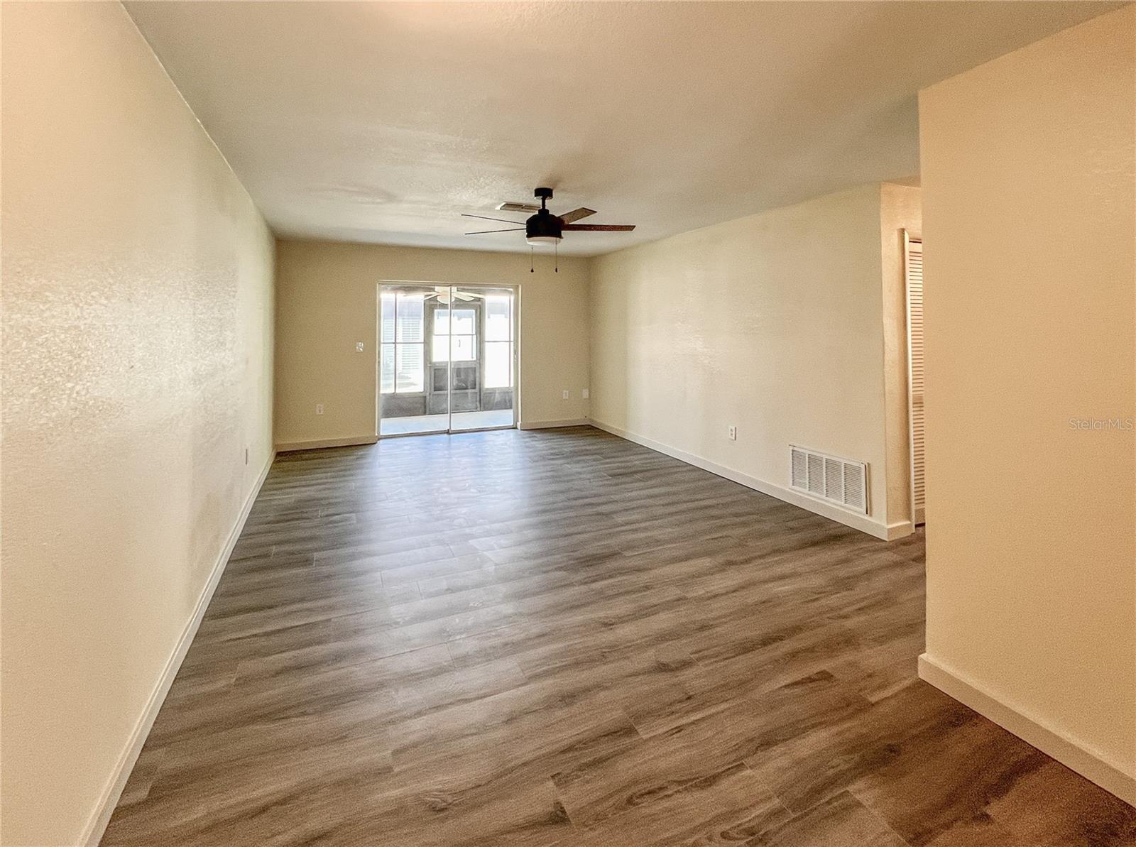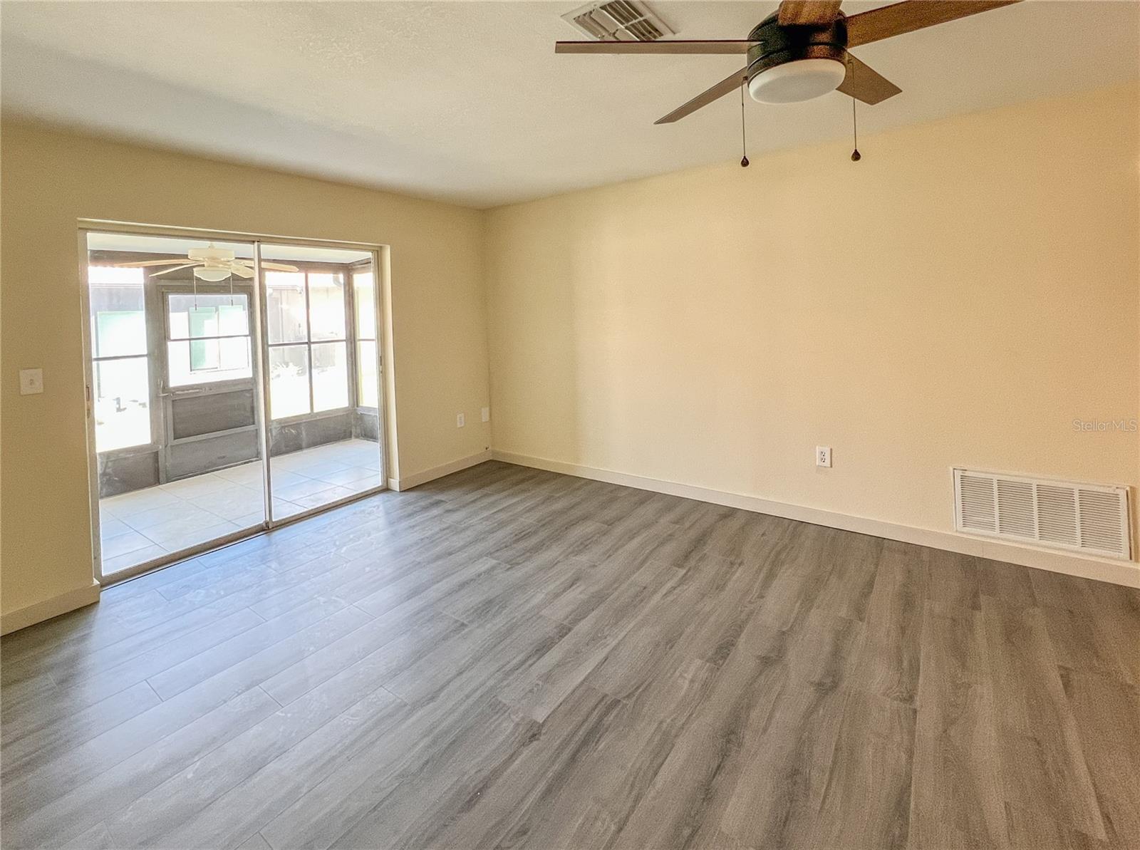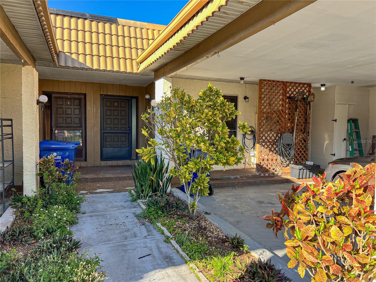 One or more photo(s) has been virtually staged. Charming Villa offering resort-style living at an affordable price! Fresh paint and new luxury vinyl flooring throughout give this homey Villa soothing "flow" and a spacious feel, highlighting the open-concept floor plan of the home. The Primary Bedroom features two windows for copious amounts of natural light, a generously sized walk-in closet, and an en-suite Bathroom. The elements of this Bathroom include an updated vanity, walk-in shower (no tub), and tile floors. Across the hall, you'll find the spacious second bedroom—an excellent choice for a guest room, home office, or cozy den, depending on your needs. The Second/Hallway Bathroom has some light updates, such as plumbing fixtures and tile floors, and includes both a shower and a tub. The front door leads into the open-concept common living areas, which include a Dining Room and a large Living Room. The lighting fixture and ceiling fan have been upgraded in these areas, and luxury vinyl plank flows through the space. The ceiling has been retextured, and the entire space has been freshly painted, both the walls and the ceiling. The Kitchen features tile flooring and the perfect spot for a bistro table and chairs or a kitchen hutch. A large Utility Room is adjacent to the Kitchen providing the washer and dryer hookups as well as plenty of space for storage and a Kitchen Pantry. An entry door in the utility room opens to the carport, allowing you to park, unload your vehicle, and bring your groceries and other wares inside while staying protected from the elements. A generously sized All Seasons Room with vinyl windows accommodates year-round outdoor living space, and features tile flooring and a ceiling fan. This home has a new roof (11/2024), newer A/C (2023), and the interior has just been painted. Just blocks from Little Rd and SR 54, the home is conveniently located in the Villa Del Rio community which offers a community pool, shuffleboard, and a huge green space. It is a short drive to waterfront dining, shopping, schools, and an abundance of parks. Examples include downtown New Port Richey and Tarpon Springs, Fred Howard Park, and Anclote River Park, and much, much more. Better hurry! A turnkey home in this price range and with a low, low HOA fee of only $56/month won't last long in this market. Make your appointment to see this home and make your offer right away! The property is sold "as-is, where-is" for the seller's convenience.