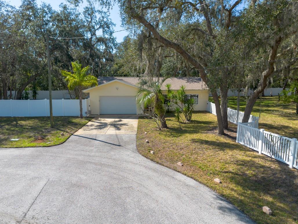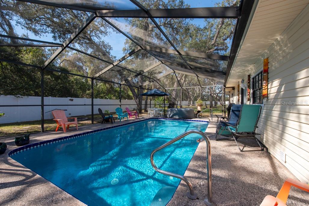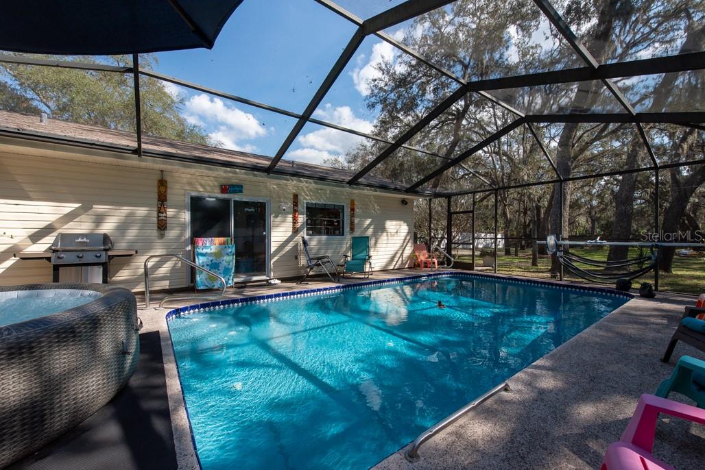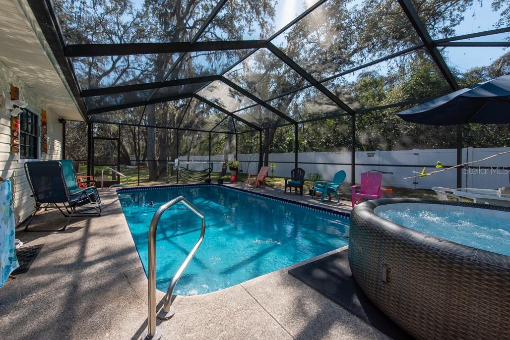 Tucked away at the end of a peaceful cul-de-sac, this completely renovated 2-bedroom, 2-bath home offers the perfect blend of modern comfort and serene outdoor living. Situated on nearly an acre of fully fenced land, this property provides unparalleled privacy with no flood zone concerns and zero hurricane damage. Step into a beautifully updated interior where every detail has been meticulously refreshed—no projects, no worries, just pure enjoyment. The pride of ownership is evident throughout, with a pristine, well-maintained space ready for its next owner. Out back, a true paradise awaits. Float in your sparkling pool, unwind in the hot tub, and take in the sights and sounds of nature, from soaring birds to playful owls. Whether you're cultivating a garden, relaxing under the open sky, or simply soaking in the peaceful surroundings, this home delivers an unmatched lifestyle. Don’t miss this rare opportunity for a move-in-ready retreat with no HOA or CDD restrictions—schedule your showing today!