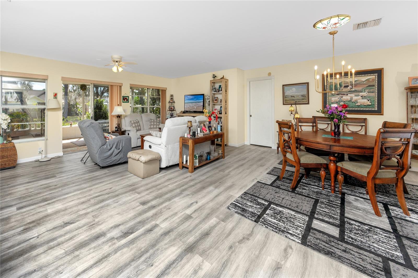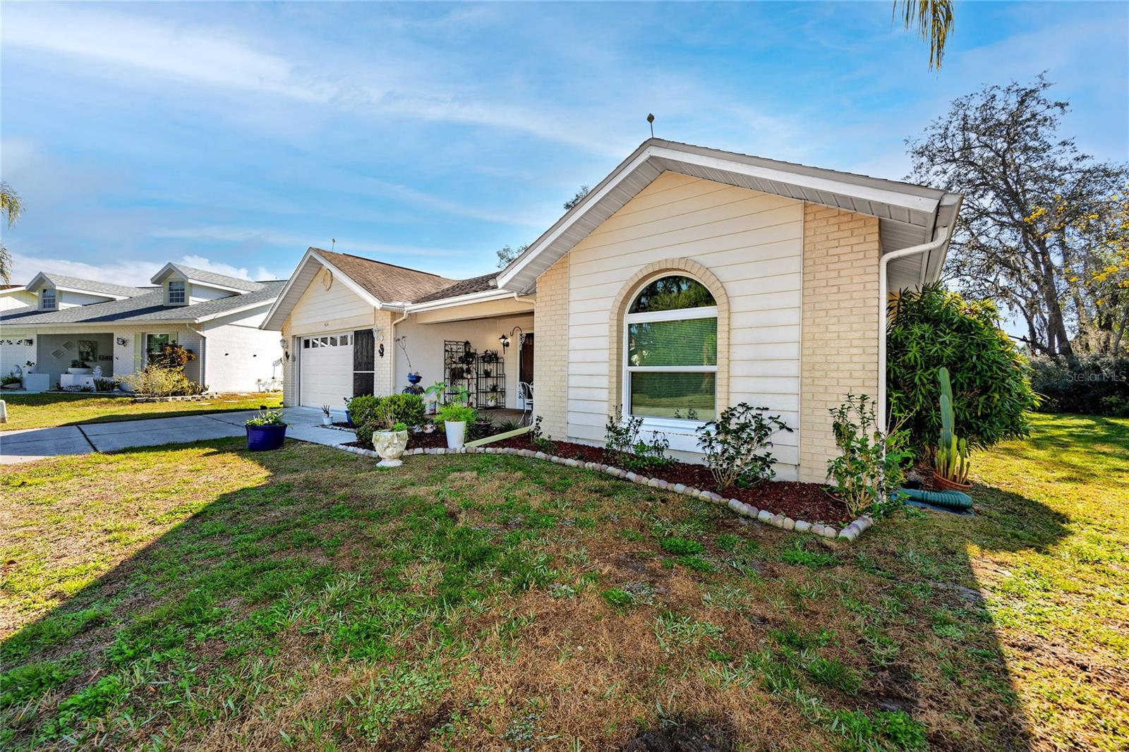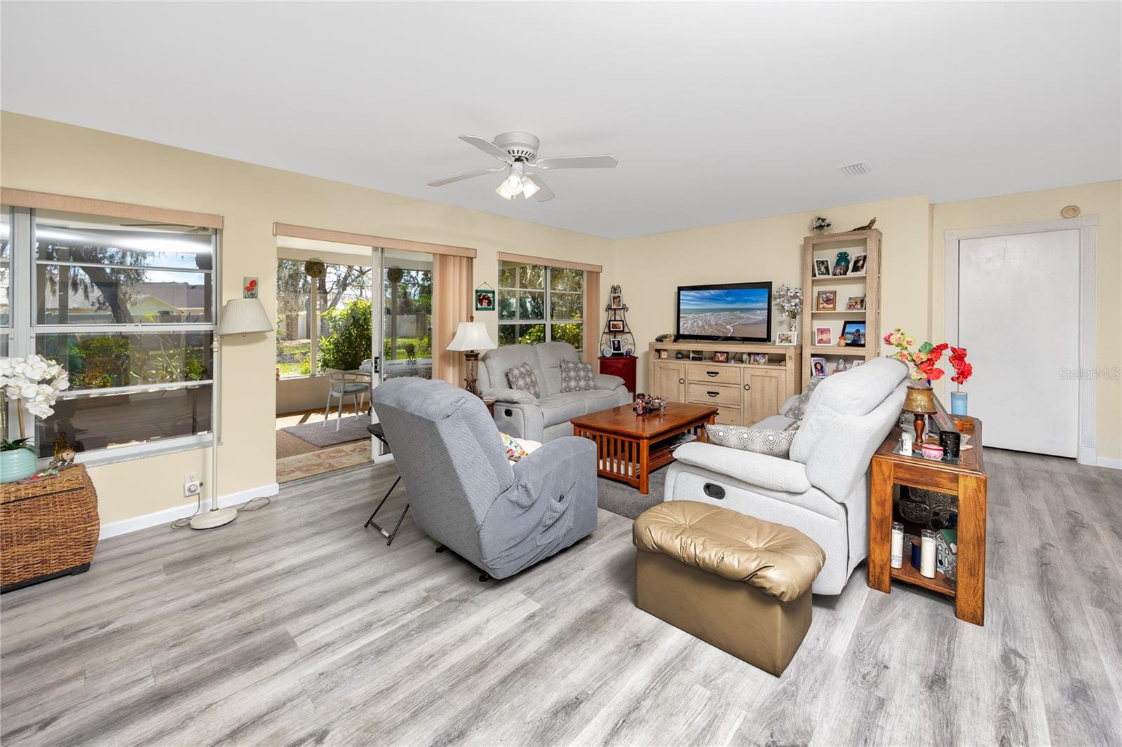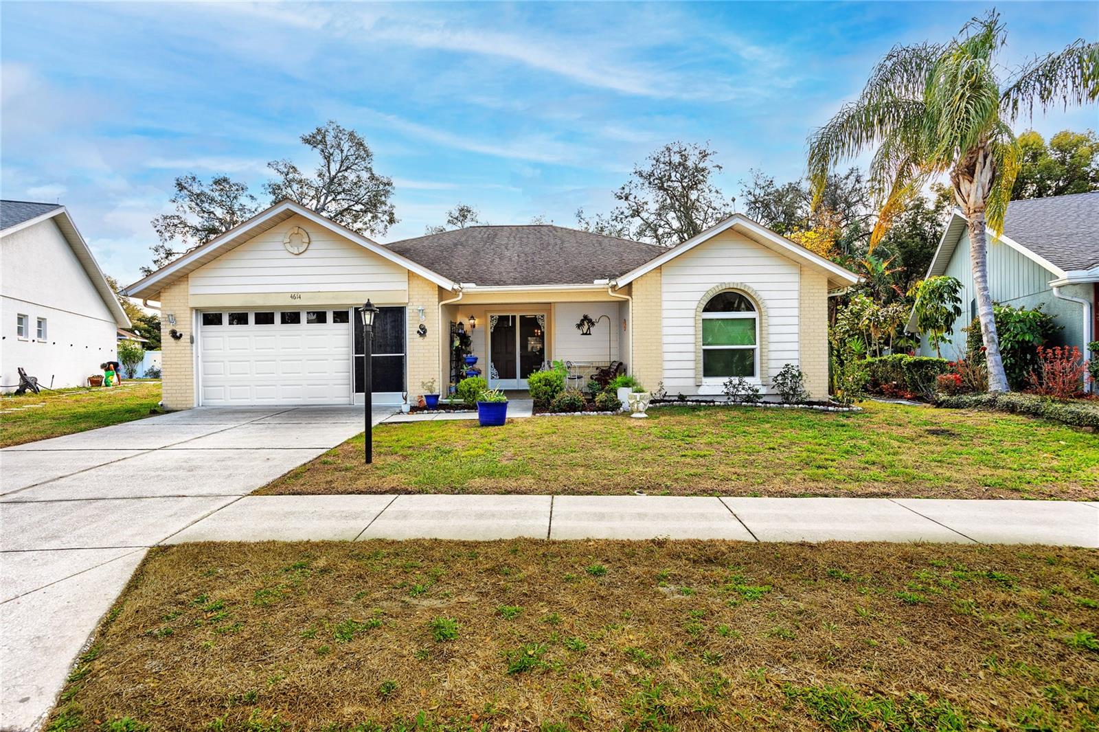 This beautifully remodeled and meticulously maintained 2-bedroom, 2-bathroom home with a 2-car garage perfectly blends comfort, style, and convenience. Featuring a spacious open floor plan, brand new kitchen, brand new windows, ceiling fans, and laminate flooring throughout, with luxury vinyl flooring in the kitchen. The inviting living room and dining room flow seamlessly into the Florida room, offering peaceful views of a spacious private backyard, ensuring both tranquility and privacy. The generously sized kitchen is a standout, complete with an island and a cozy breakfast area, ideal for casual meals or your morning coffee. Outside, the tastefully landscaped front yard enhances the home's curb appeal, while the well-maintained front and backyards provide plenty of space for relaxation. Located in a desirable 55 + community with very low HOA fees, you’ll have access to a community pool, fitness center, library, billiard room, and more. This home is ideally situated just minutes from shopping and the stunning beaches of Florida. Nature lovers will appreciate the proximity to Starkey Ranch and Starkey Wilderness Preserve Park for outdoor recreation. For those needing easy access to the surrounding areas, Downtown New Port Richey is just 10 minutes away, with convenient access to the Tampa Veterans Expressway, only 20 minutes away, and Tampa International Airport just 45 minutes from your doorstep. This home offers the perfect combination of tranquility, privacy, and convenience. Schedule a showing today to see it for yourself! (Room measurements are approximate.)
