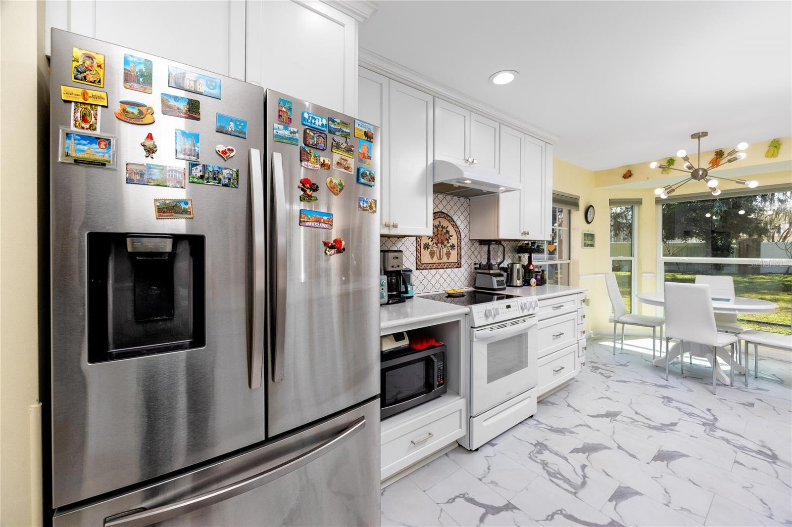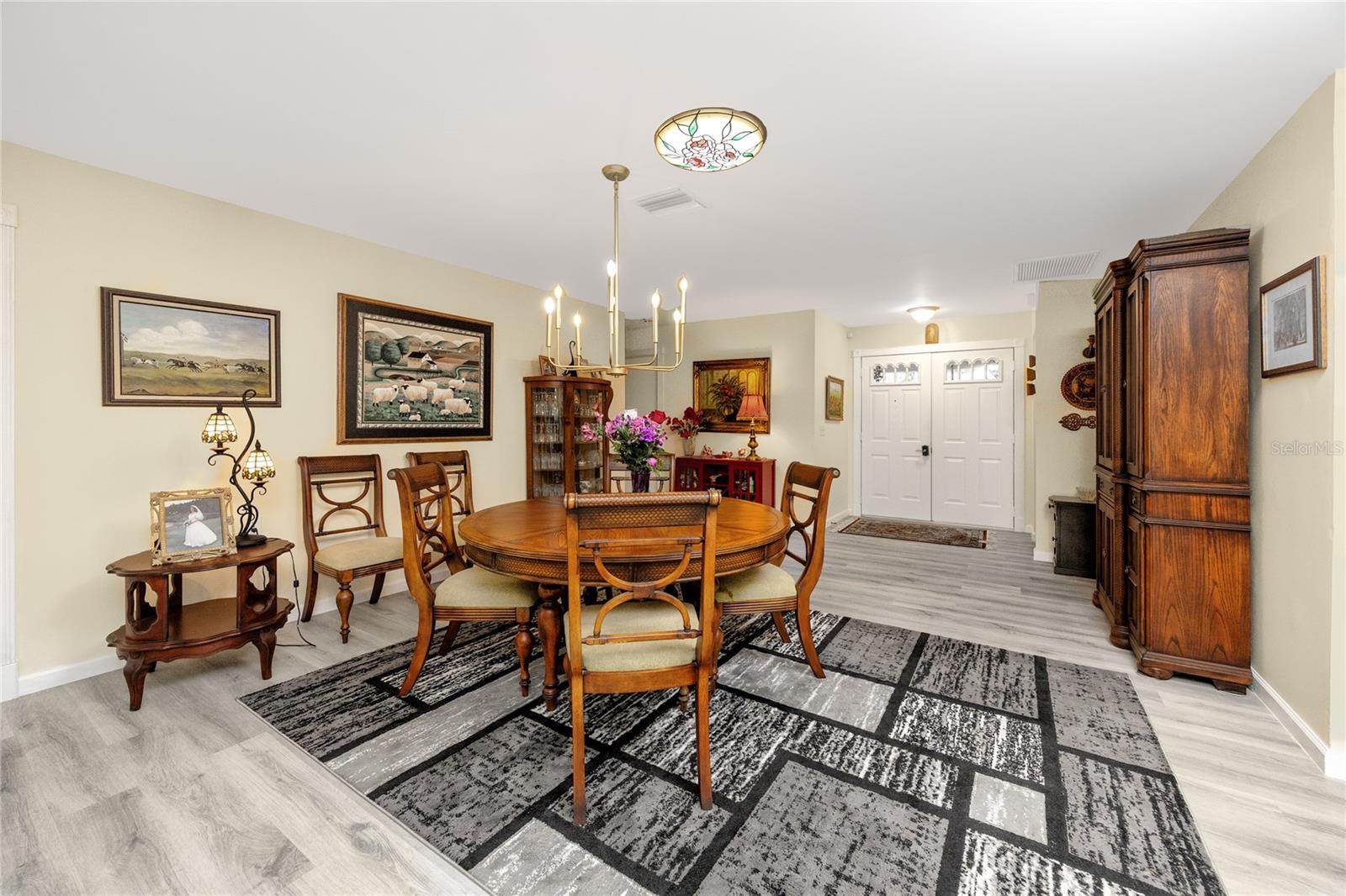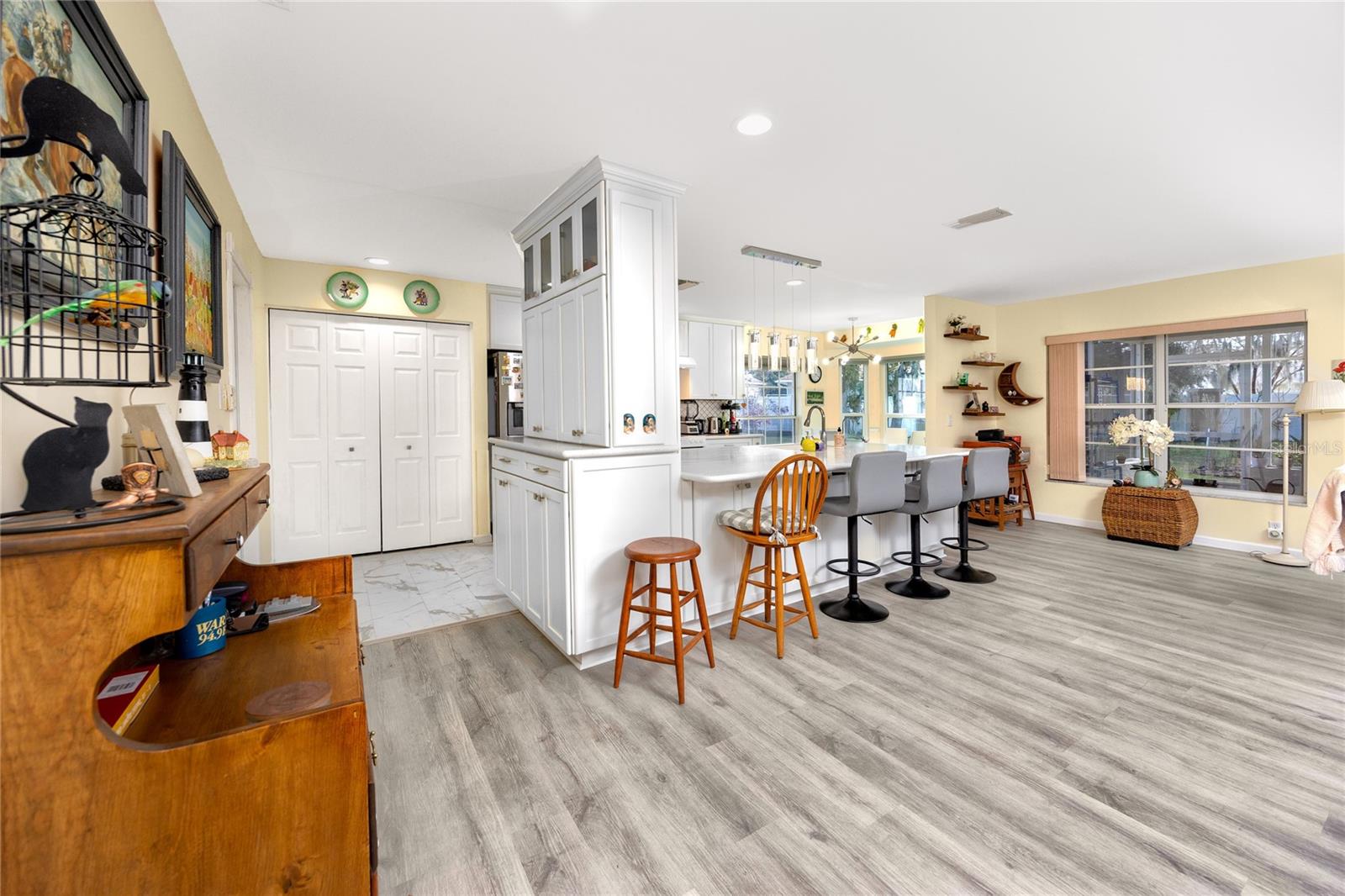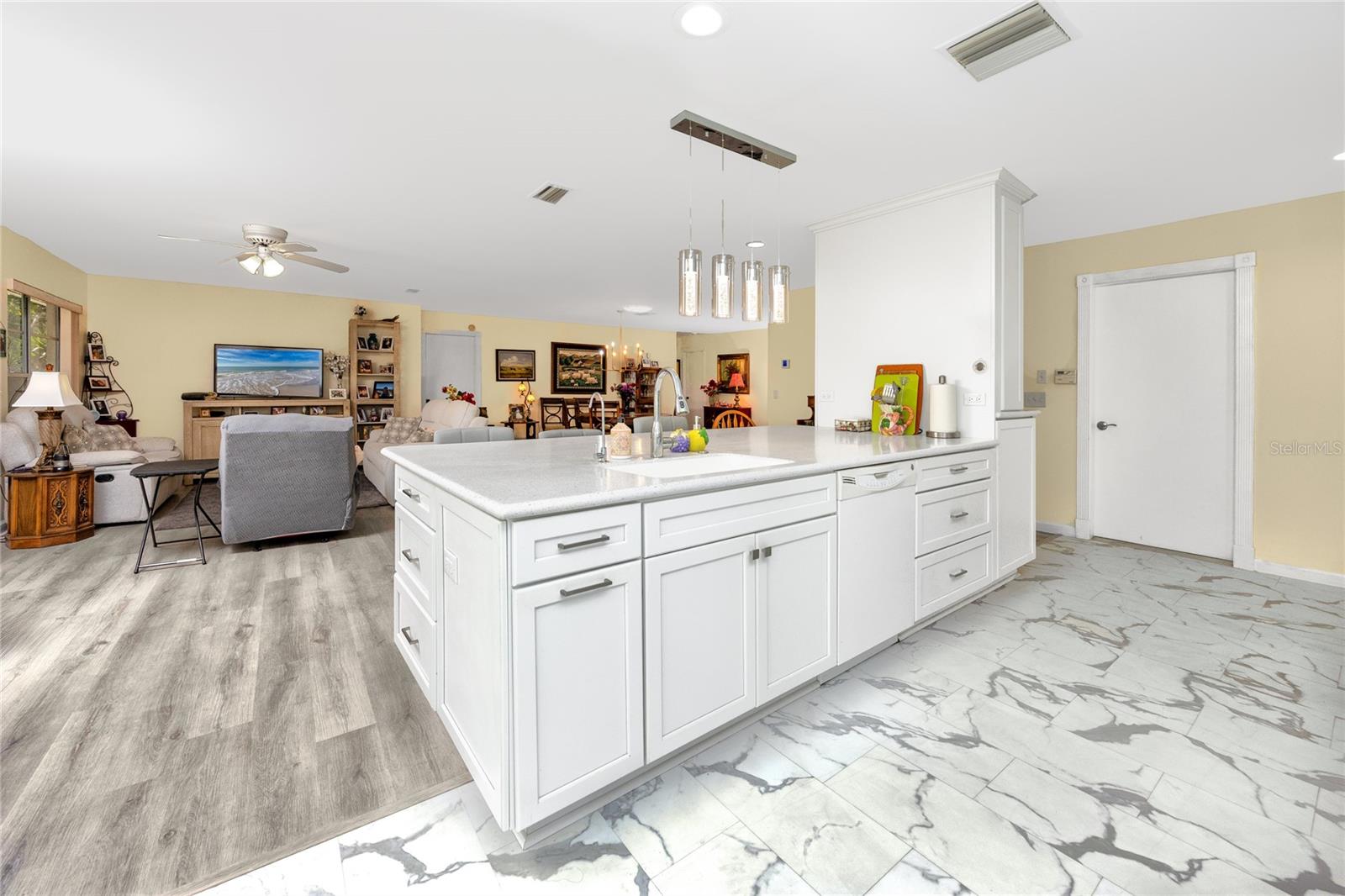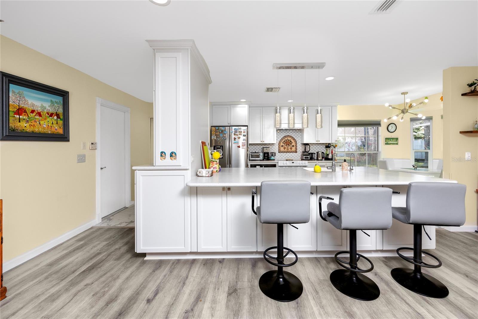 This beautifully remodeled and meticulously maintained 2-bedroom, 2-bathroom home with a 2-car garage perfectly blends comfort, style, and convenience. Featuring a spacious open floor plan, brand new kitchen, brand new windows, ceiling fans, and laminate flooring throughout, with luxury vinyl flooring in the kitchen. The inviting living room and dining room flow seamlessly into the Florida room, offering peaceful views of a spacious private backyard, ensuring both tranquility and privacy. The generously sized kitchen is a standout, complete with an island and a cozy breakfast area, ideal for casual meals or your morning coffee. Outside, the tastefully landscaped front yard enhances the home's curb appeal, while the well-maintained front and backyards provide plenty of space for relaxation. Located in a desirable 55 + community with very low HOA fees, you’ll have access to a community pool, fitness center, library, billiard room, and more. This home is ideally situated just minutes from shopping and the stunning beaches of Florida. Nature lovers will appreciate the proximity to Starkey Ranch and Starkey Wilderness Preserve Park for outdoor recreation. For those needing easy access to the surrounding areas, Downtown New Port Richey is just 10 minutes away, with convenient access to the Tampa Veterans Expressway, only 20 minutes away, and Tampa International Airport just 45 minutes from your doorstep. This home offers the perfect combination of tranquility, privacy, and convenience. Schedule a showing today to see it for yourself! (Room measurements are approximate.)