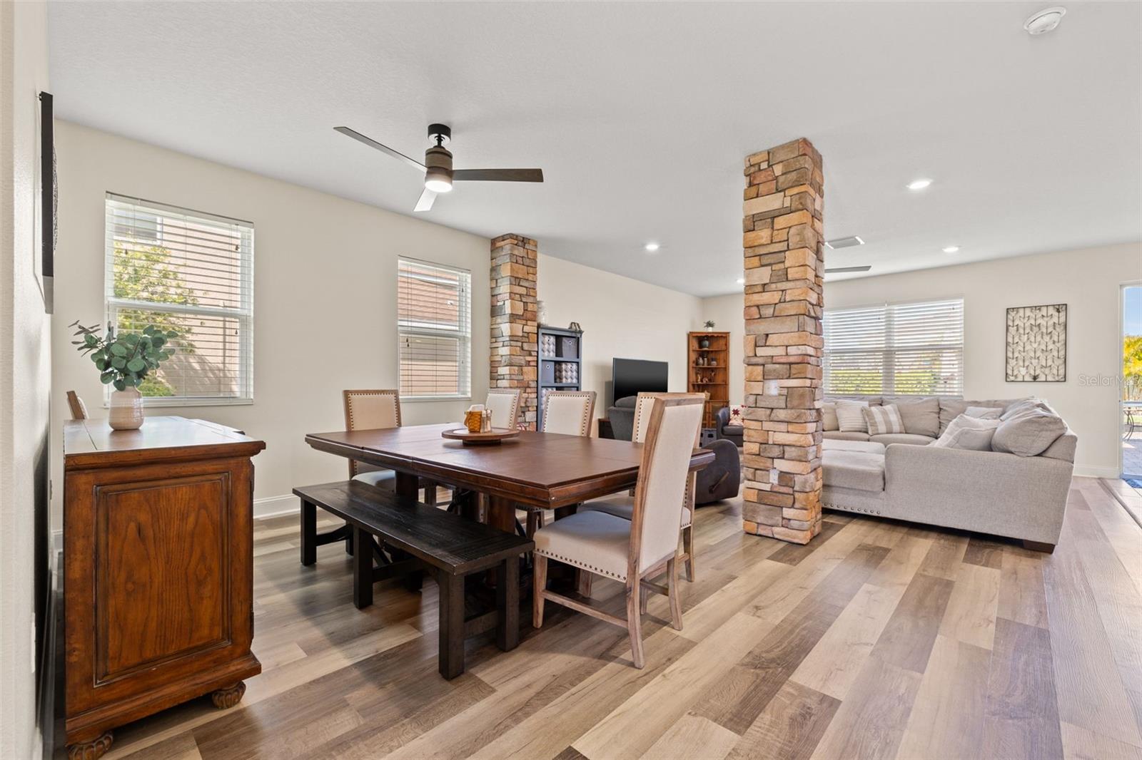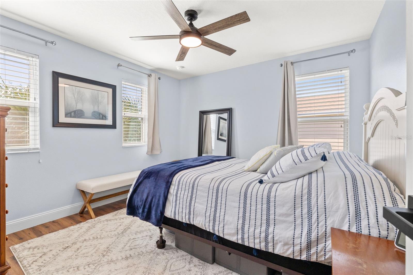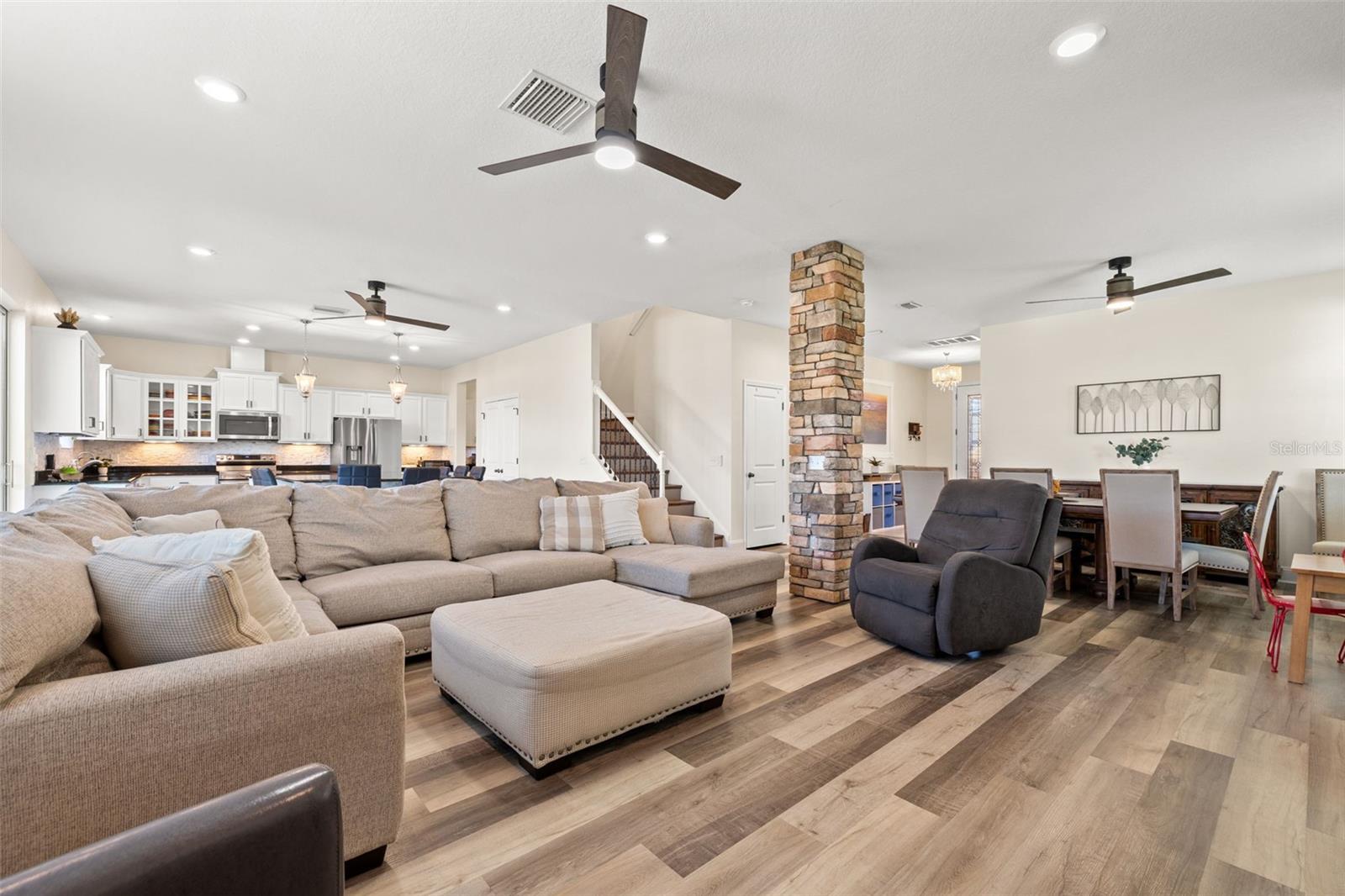 $5,000 Seller Credit - ask about special interest rate BUY-DOWN option! This SPECTACULAR FLORIDA HOME located in the highly sought-after gated community of Willow Reed & Wild Fern Villages at Trinity Lakes, this 5-BEDROOM 4.5-BATH home with an upstairs loft space offers an open and airy floor plan with abundant natural light. The chef-inspired kitchen features an oversized island with extra seating, granite countertops, upgraded pendant lighting, stainless steel appliances, a butler’s pantry, and ample cabinet space, seamlessly flowing into the great room and dining area. A private downstairs bedroom with an en-suite bath provides flexibility for guests or a home office. Upstairs, the SPACIOUS LOFT/movie room is surrounded by four additional bedrooms, including the luxurious primary suite with dual walk-in closets and a spa-like bath with dual sinks, a granite vanity, and a large linen closet. Plus, a thoughtfully designed junior suite has been reimagined to include a stylish office nook and a luxuriously renovated bathroom, featuring a sleek new walk-in shower, elegant quartz floor tiles, and a double vanity topped with pristine quartz countertops—blending modern sophistication with ultimate comfort. More highlights include luxury vinyl and wood flooring, a spacious laundry room with extra storage, hurricane shutters, and fresh interior paint (2023). Enjoy outdoor living in the FULLY FENCED, paved backyard with a gazebo, perfect for entertaining. This home boasts NO CDD fees, a LOW HOA, and no flood insurance required while being conveniently located near top-rated schools, parks, golf courses, shopping, dining, and major highways with easy access to Tampa International Airport, St. Pete/Clearwater Airport, and beautiful Gulf beaches. Schedule your private showing today! (*Bedroom 5 photo and 1 Living Area photo - virtually staged.)
