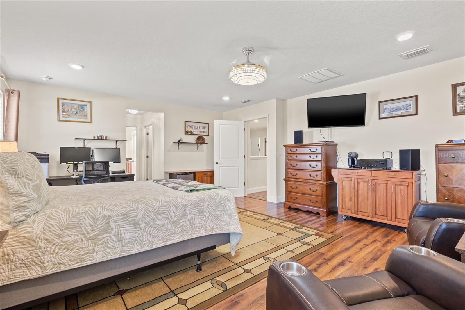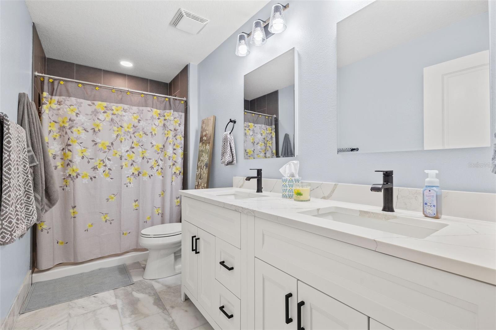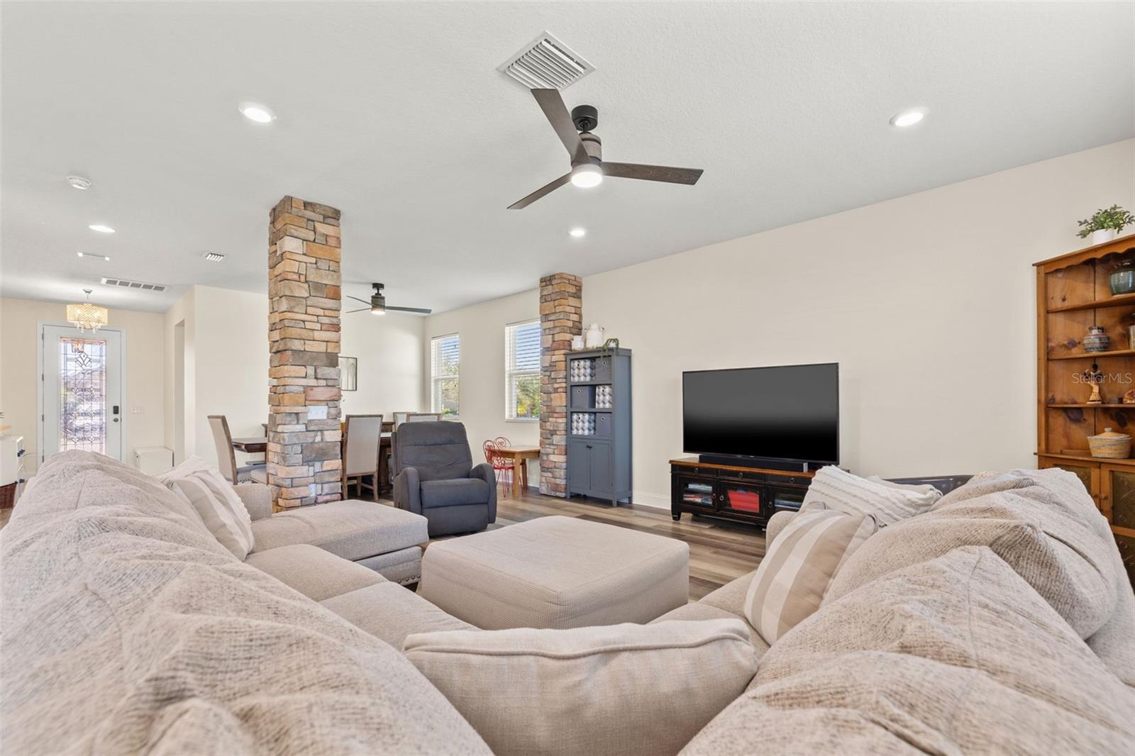 $5,000 Seller Credit - ask about special interest rate BUY-DOWN option! This SPECTACULAR FLORIDA HOME located in the highly sought-after gated community of Willow Reed & Wild Fern Villages at Trinity Lakes, this 5-BEDROOM 4.5-BATH home with an upstairs loft space offers an open and airy floor plan with abundant natural light. The chef-inspired kitchen features an oversized island with extra seating, granite countertops, upgraded pendant lighting, stainless steel appliances, a butler’s pantry, and ample cabinet space, seamlessly flowing into the great room and dining area. A private downstairs bedroom with an en-suite bath provides flexibility for guests or a home office. Upstairs, the SPACIOUS LOFT/movie room is surrounded by four additional bedrooms, including the luxurious primary suite with dual walk-in closets and a spa-like bath with dual sinks, a granite vanity, and a large linen closet. Plus, a thoughtfully designed junior suite has been reimagined to include a stylish office nook and a luxuriously renovated bathroom, featuring a sleek new walk-in shower, elegant quartz floor tiles, and a double vanity topped with pristine quartz countertops—blending modern sophistication with ultimate comfort. More highlights include luxury vinyl and wood flooring, a spacious laundry room with extra storage, hurricane shutters, and fresh interior paint (2023). Enjoy outdoor living in the FULLY FENCED, paved backyard with a gazebo, perfect for entertaining. This home boasts NO CDD fees, a LOW HOA, and no flood insurance required while being conveniently located near top-rated schools, parks, golf courses, shopping, dining, and major highways with easy access to Tampa International Airport, St. Pete/Clearwater Airport, and beautiful Gulf beaches. Schedule your private showing today! (*Bedroom 5 photo and 1 Living Area photo - virtually staged.)