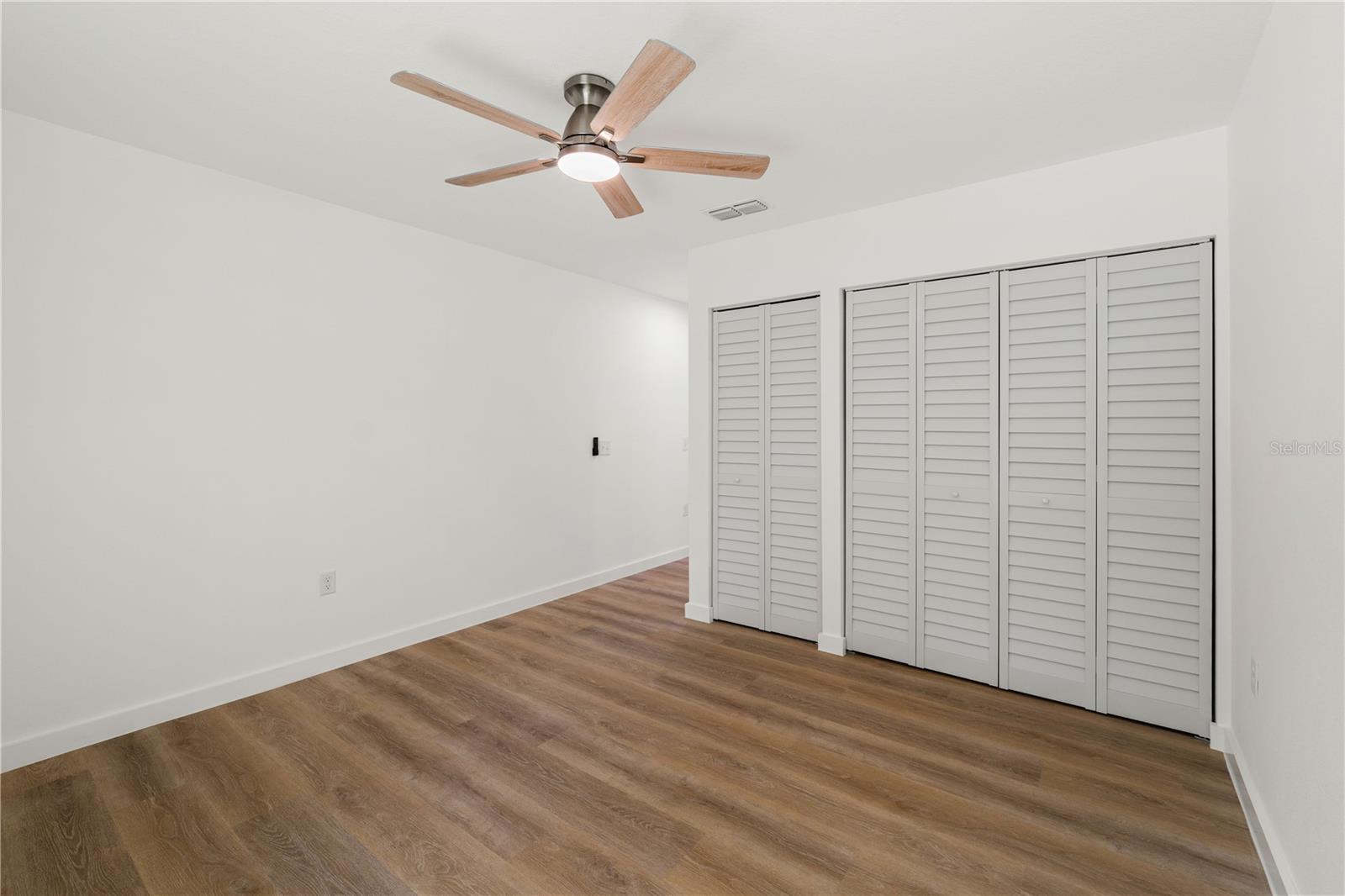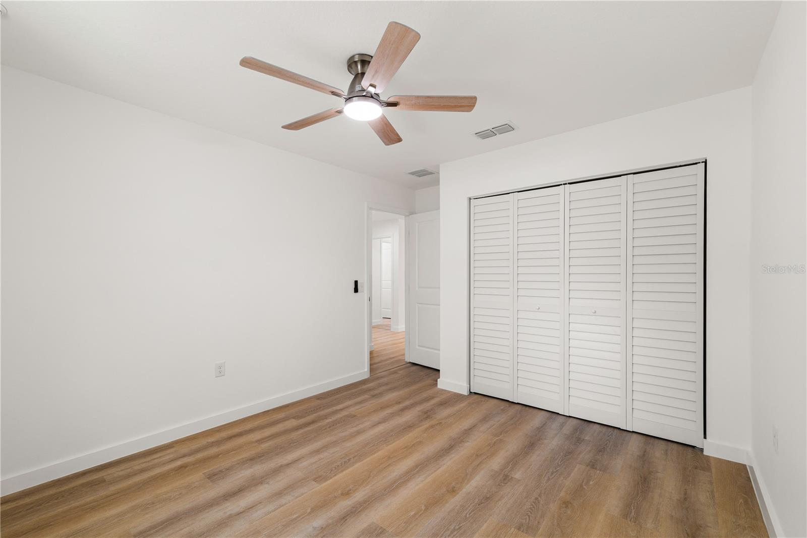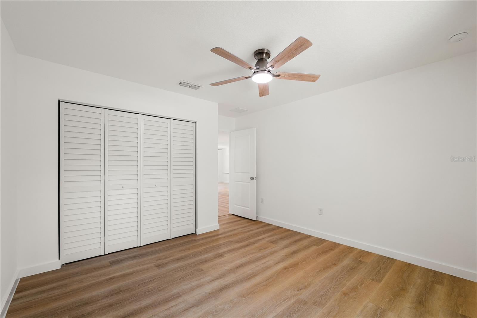 One or more photo(s) has been virtually staged. QUALIFIES FOR A SPECIAL FINANCING PROGRAM WITH UP TO 100% FINANCING, NO MORTGAGE INSURANCE, AND BELOW-MARKET INTEREST RATES. Affordable new construction home on a DOUBLE LOT. 0.36 acres offers endless possibilities for storage, parking, or building your ideal yard project. Fully completed and available now! Investors: potential rental income for this home is approximately $2,150/month. Buyers: Limited opportunity to keep costs down, making your mortgage cheaper than renting long term. As with all new construction homes, the home insurance premium is usually much lower than older homes. With a brand-new private well system, you'll also have no water/sewer bills, and being out of a high-risk flood zone, flood insurance is NOT required. No HOA here either, allowing you to maximize your property at your leisure. This builder prioritizes energy efficiency by using superior insulation, low-E windows, recessed LED lighting and ceiling fans which enhance comfort. Two exterior 110-V soffit outlets for easy installation of security cameras. The home offers 3 bedrooms, 2 bathrooms, and a thoughtfully designed open layout. Enjoy peace of mind with impact-resistant windows and exterior doors rated for hurricane-force winds, and 160-mph shingles, while the luxury vinyl plank flooring, premium quartz countertops, and contemporary bathroom tile add a touch of elegance. The kitchen is equipped with new stainless steel appliances, shaker cabinets with soft-close hinges, and undermount sink for easy clean up. The private laundry room includes a new stackable washer and dryer combo, plus a cabinet for storage and added convenience. Plus, a builder’s warranty is included which provides peace of mind, making this home the perfect blend of style, durability, and savings! Minutes from the home is beautiful Moon Lake Park where families can enjoy access to the lake with a boat ramp for boating, kayaking or canoeing. There are also picnic tables, BBQ grills, basketball hoop, playgrounds, and bathrooms available.