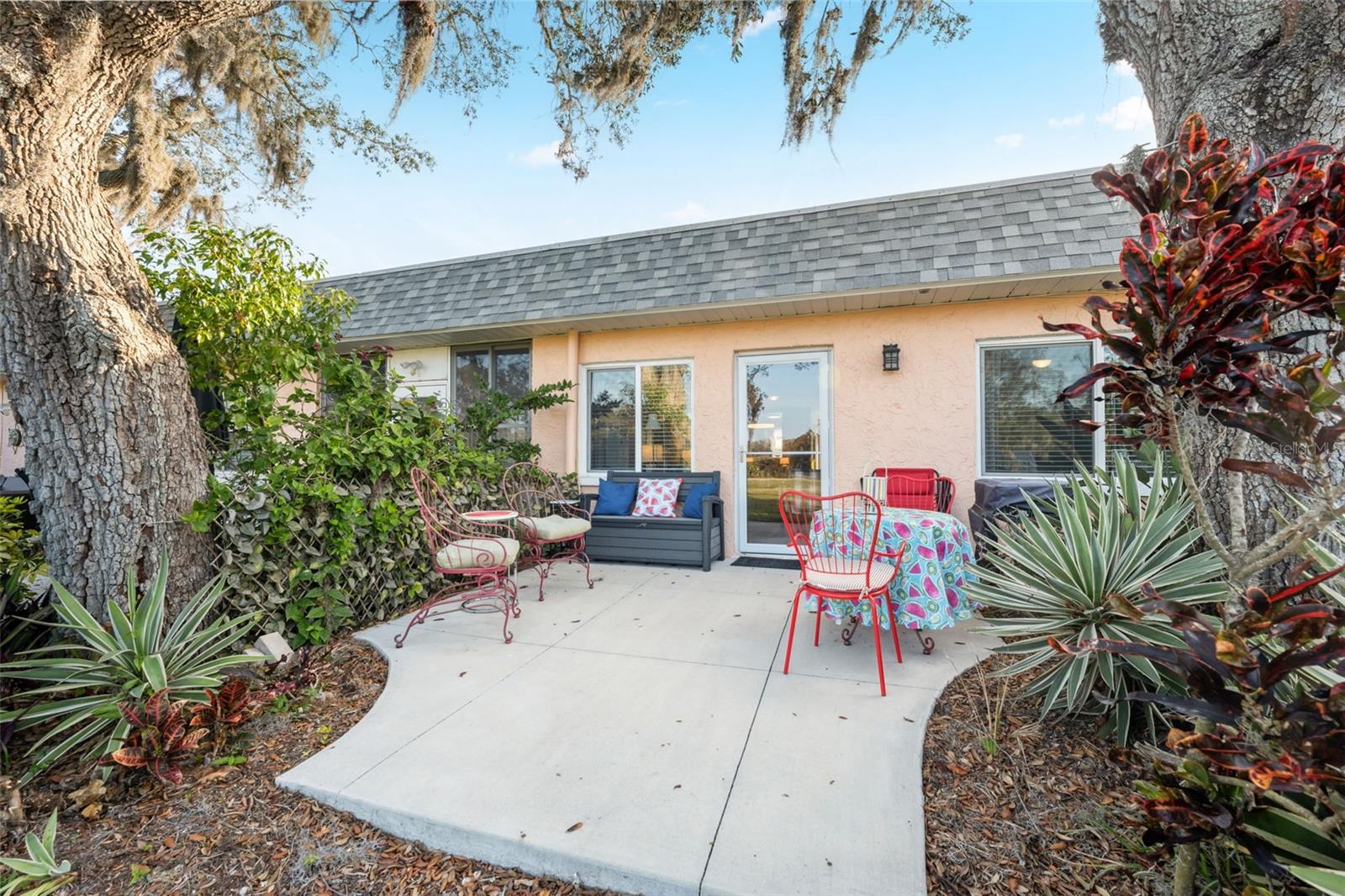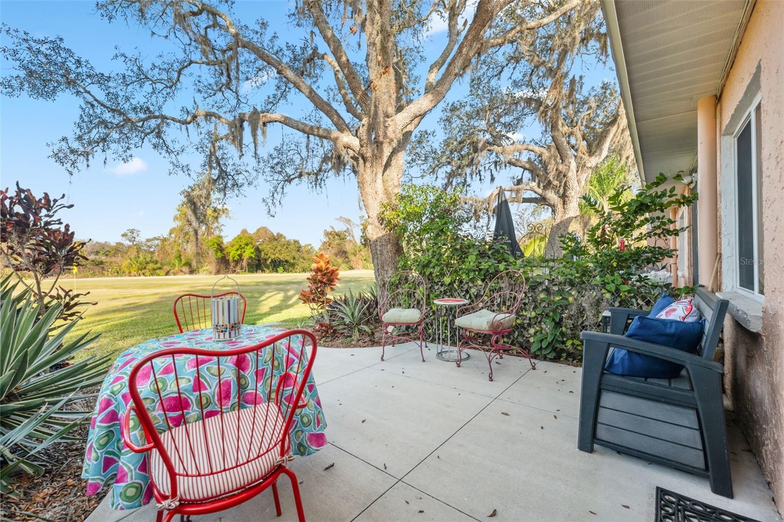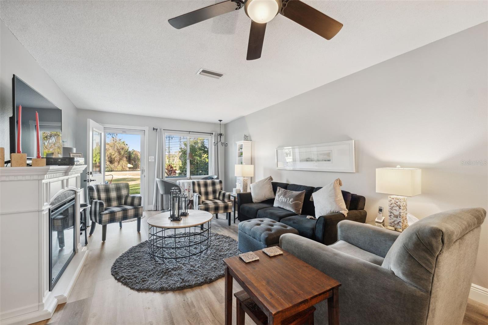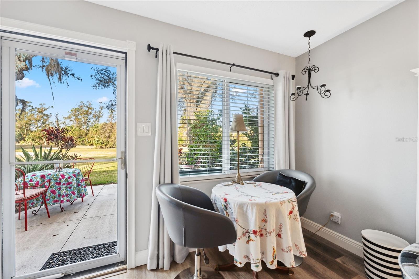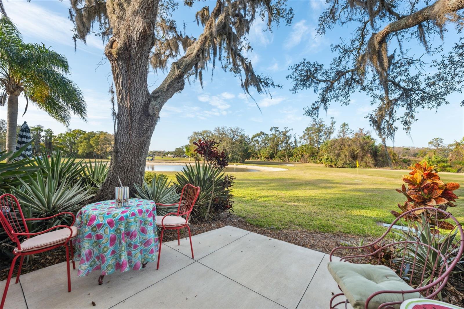 Located on Hole 10 of the golf course, this updated 2-bedroom, 2-bathroom villa provides a perfect blend of modern living and peaceful surroundings. The kitchen features sleek quartz countertops and new soft close cabinetry, while beautiful luxury vinyl flooring flows throughout. Double-panel windows bring in natural light and frame views of the lush golf course and mature trees. The master suite includes a private bathroom with a walk-in glass corner shower and elegant tilework. Both bathrooms have new vanities . Tankless Hot Water Heater updated in 2022, HVAC 2020! Step outside to the new concrete patio, perfect for relaxing while overlooking the pond and golf course, these owners have only seen 3 balls in their 5 years of ownership in their backyard, its the perfect lay up to the 10th hole! Enjoy the perks of living in a golf community with access to a clubhouse, pool, tennis courts, and golf cart-friendly pathways. Also included in your HOA are Water, Trash, Sewer, Internet, & Cable + so much more! This home combines modern comforts with serene outdoor living—schedule a tour today and experience it for yourself!