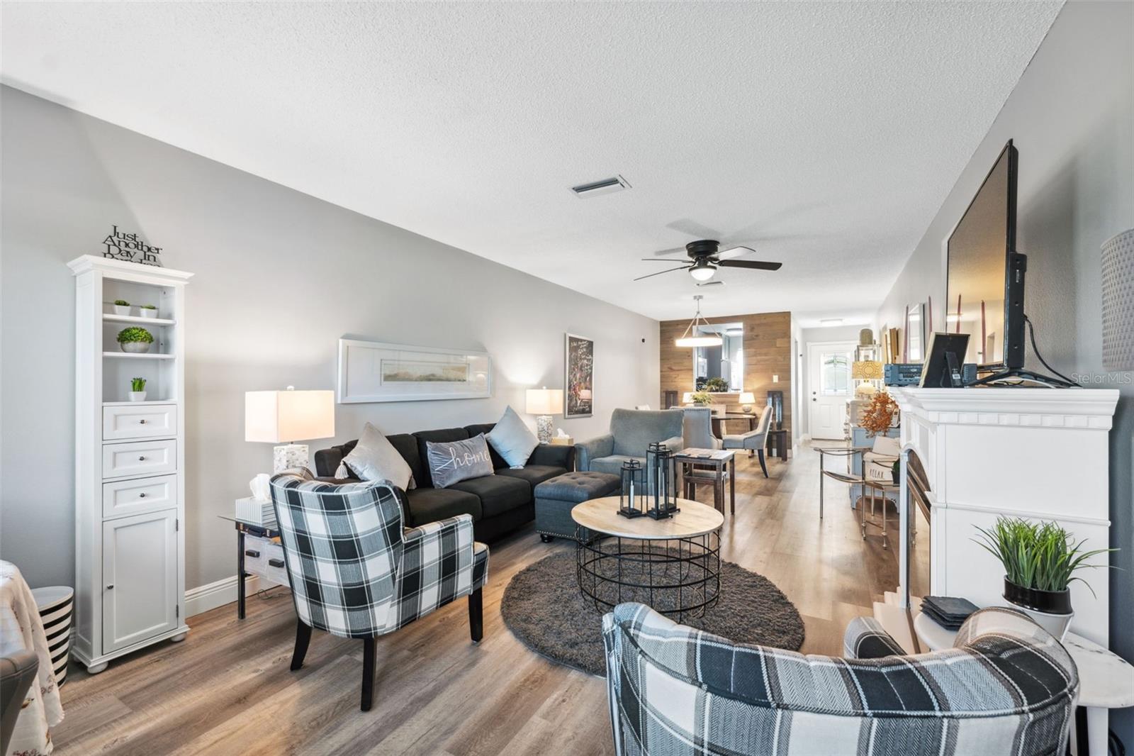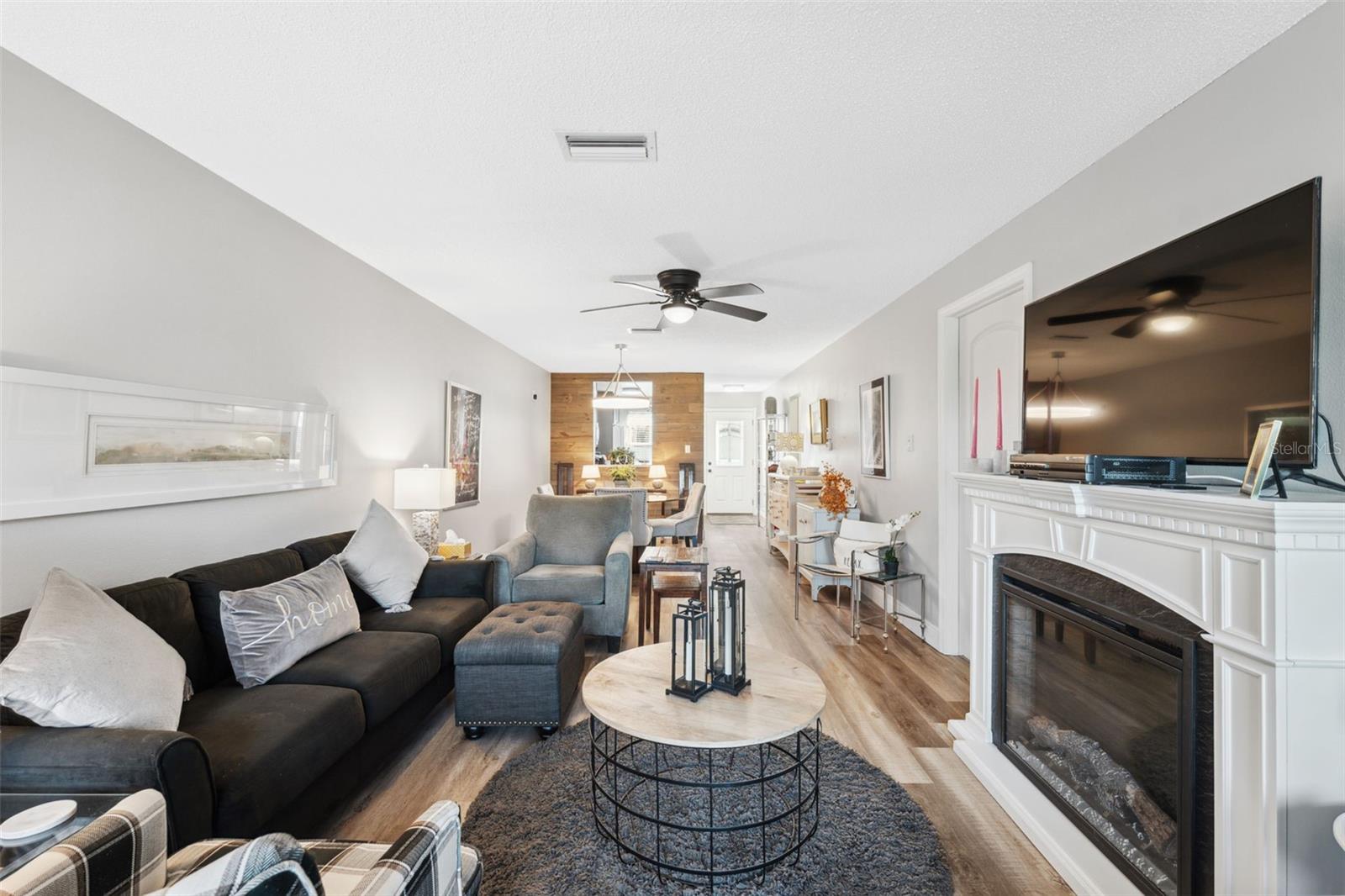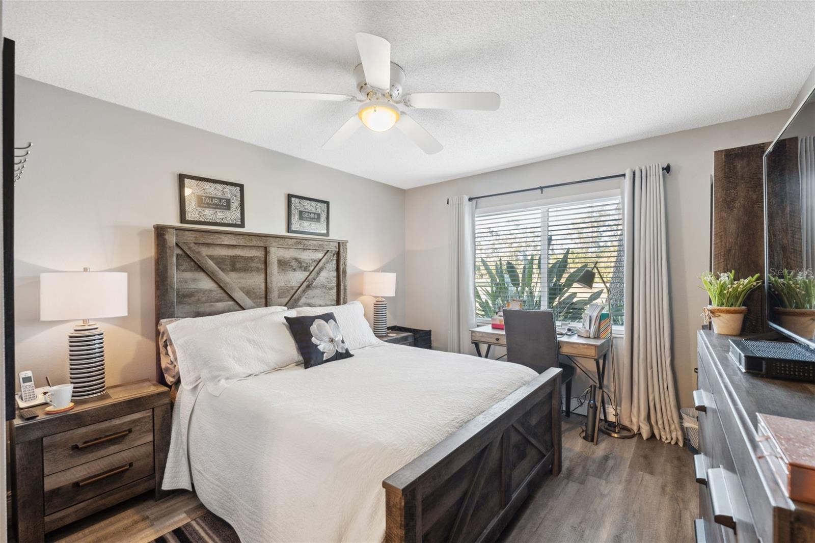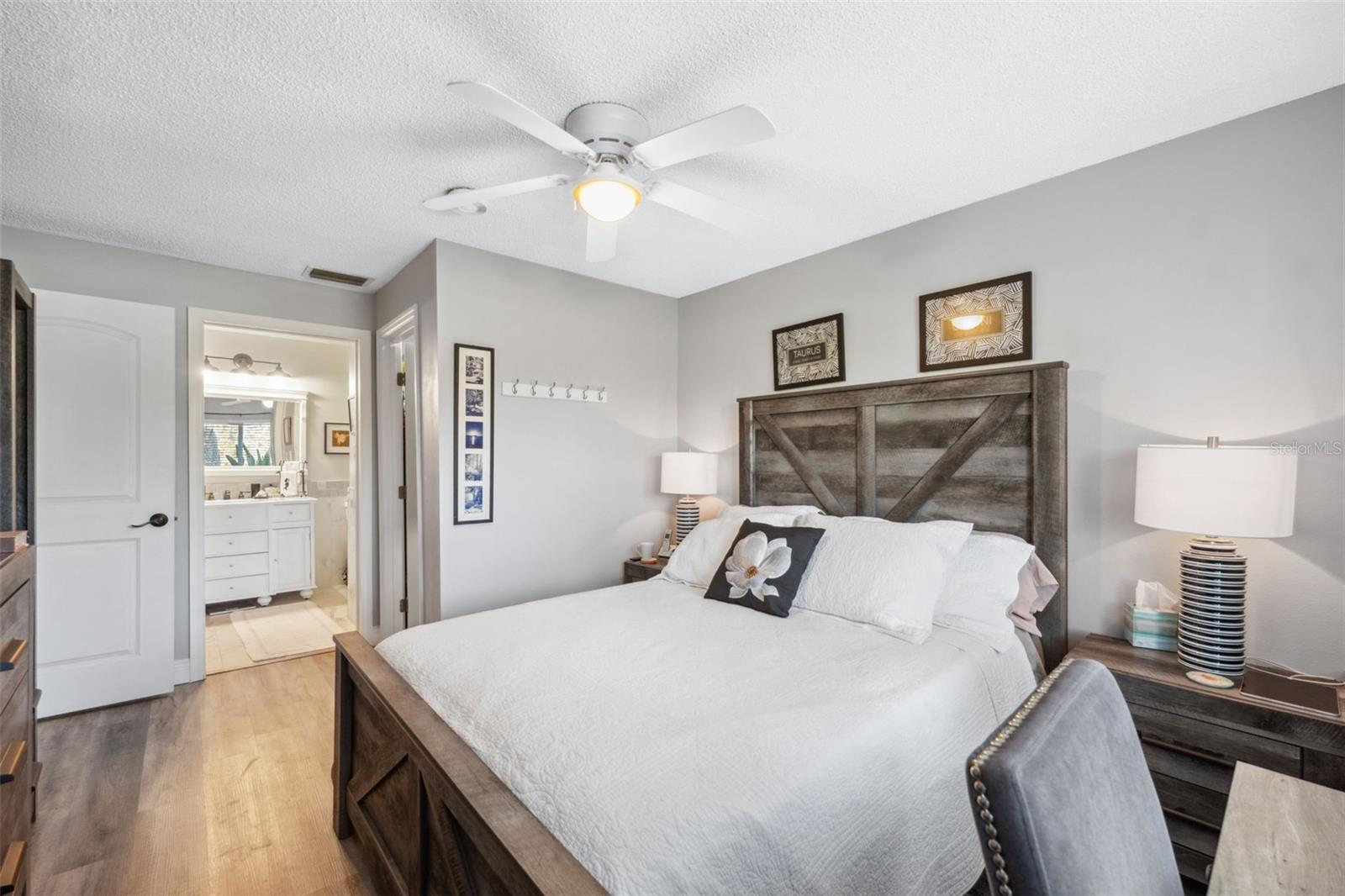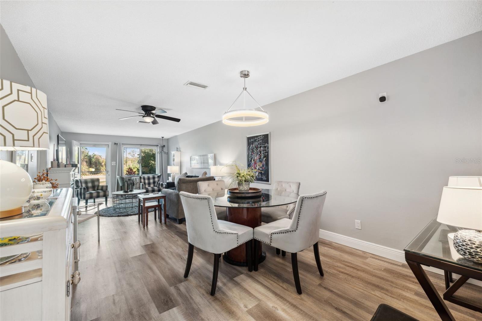 Located on Hole 10 of the golf course, this updated 2-bedroom, 2-bathroom villa provides a perfect blend of modern living and peaceful surroundings. The kitchen features sleek quartz countertops and new soft close cabinetry, while beautiful luxury vinyl flooring flows throughout. Double-panel windows bring in natural light and frame views of the lush golf course and mature trees. The master suite includes a private bathroom with a walk-in glass corner shower and elegant tilework. Both bathrooms have new vanities . Tankless Hot Water Heater updated in 2022, HVAC 2020! Step outside to the new concrete patio, perfect for relaxing while overlooking the pond and golf course, these owners have only seen 3 balls in their 5 years of ownership in their backyard, its the perfect lay up to the 10th hole! Enjoy the perks of living in a golf community with access to a clubhouse, pool, tennis courts, and golf cart-friendly pathways. Also included in your HOA are Water, Trash, Sewer, Internet, & Cable + so much more! This home combines modern comforts with serene outdoor living—schedule a tour today and experience it for yourself!