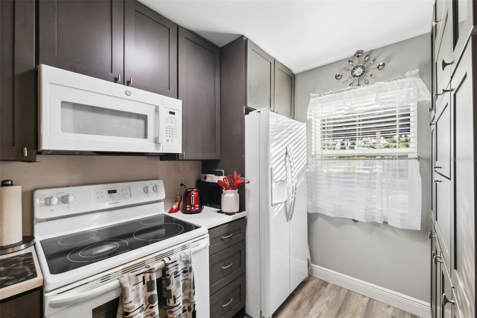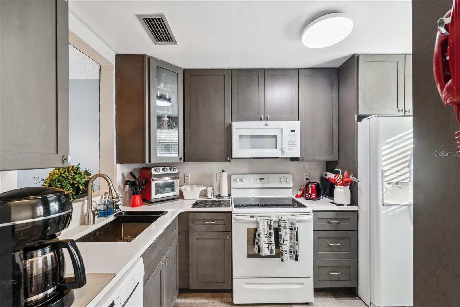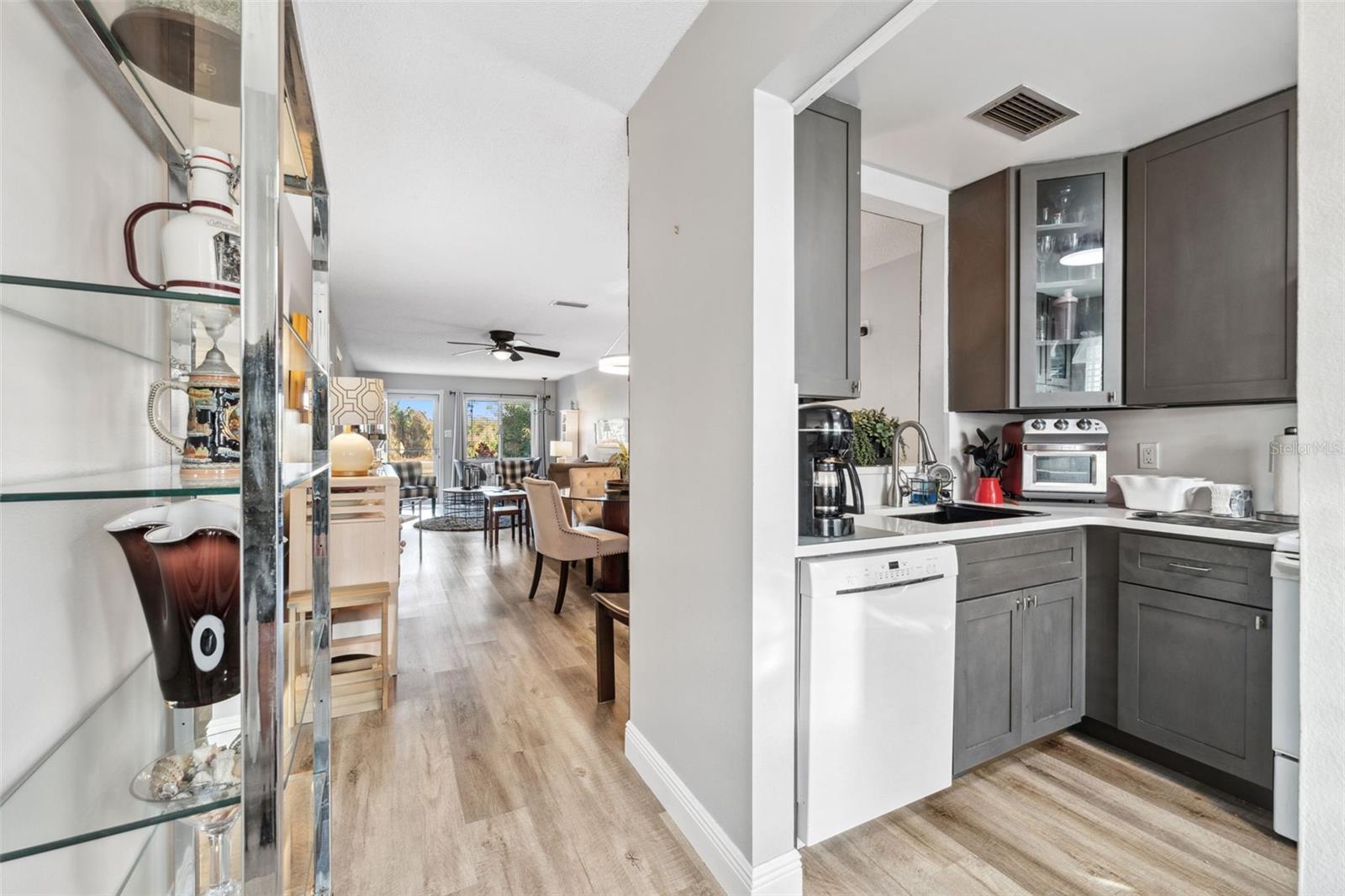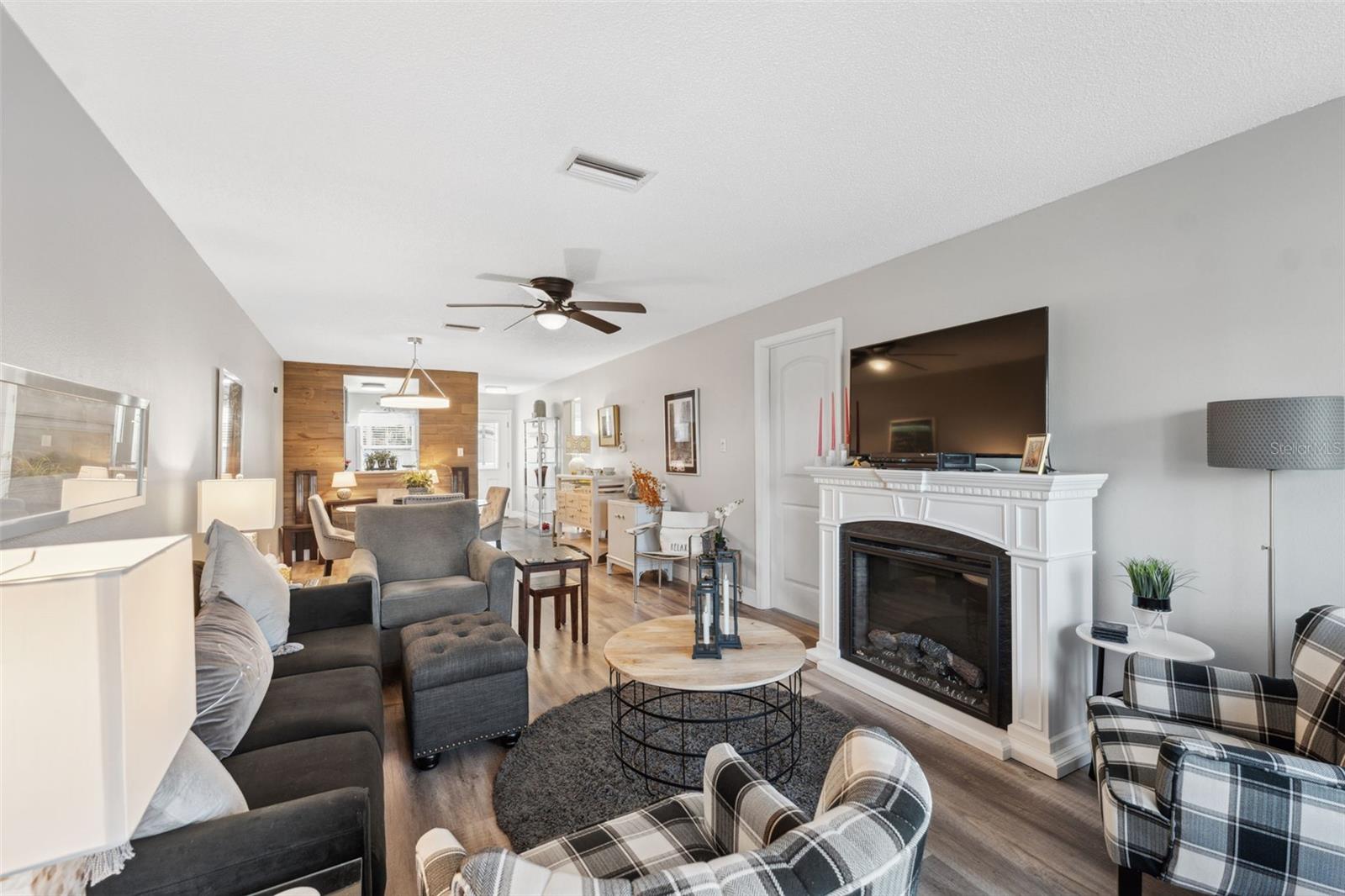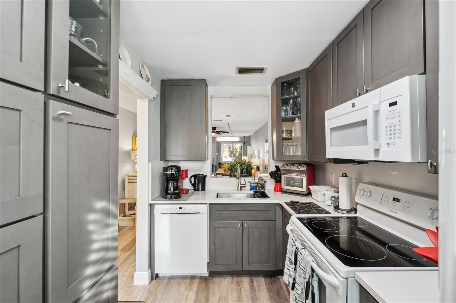 Located on Hole 10 of the golf course, this updated 2-bedroom, 2-bathroom villa provides a perfect blend of modern living and peaceful surroundings. The kitchen features sleek quartz countertops and new soft close cabinetry, while beautiful luxury vinyl flooring flows throughout. Double-panel windows bring in natural light and frame views of the lush golf course and mature trees. The master suite includes a private bathroom with a walk-in glass corner shower and elegant tilework. Both bathrooms have new vanities . Tankless Hot Water Heater updated in 2022, HVAC 2020! Step outside to the new concrete patio, perfect for relaxing while overlooking the pond and golf course, these owners have only seen 3 balls in their 5 years of ownership in their backyard, its the perfect lay up to the 10th hole! Enjoy the perks of living in a golf community with access to a clubhouse, pool, tennis courts, and golf cart-friendly pathways. Also included in your HOA are Water, Trash, Sewer, Internet, & Cable + so much more! This home combines modern comforts with serene outdoor living—schedule a tour today and experience it for yourself!
