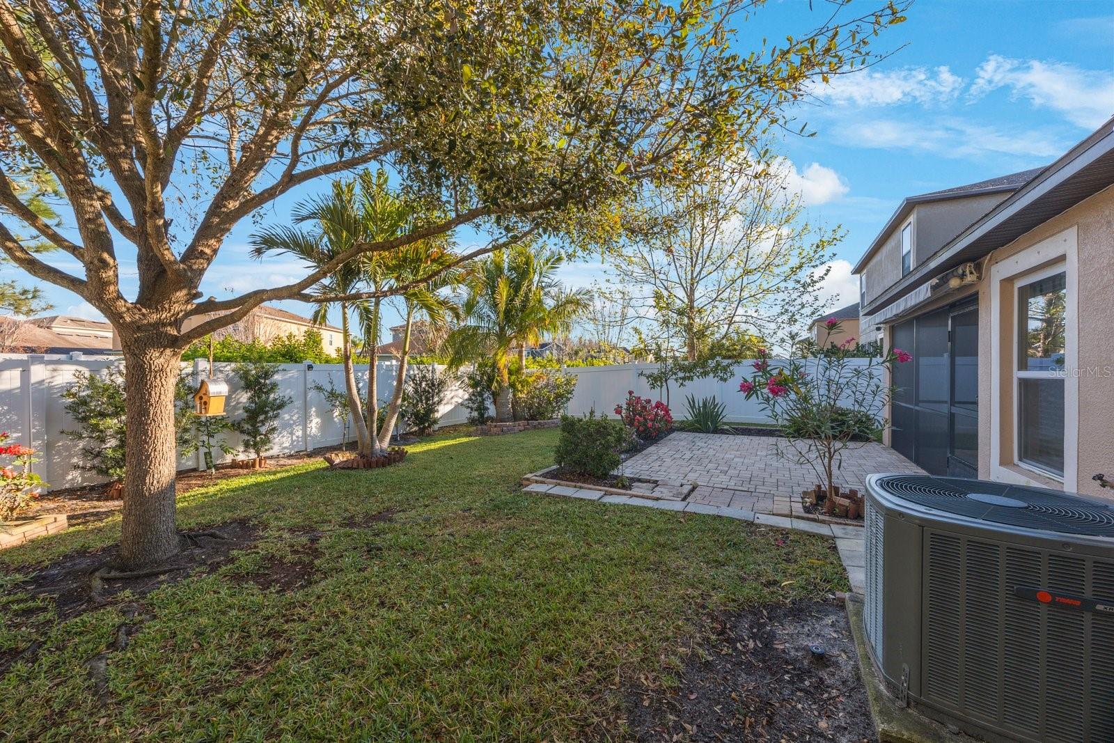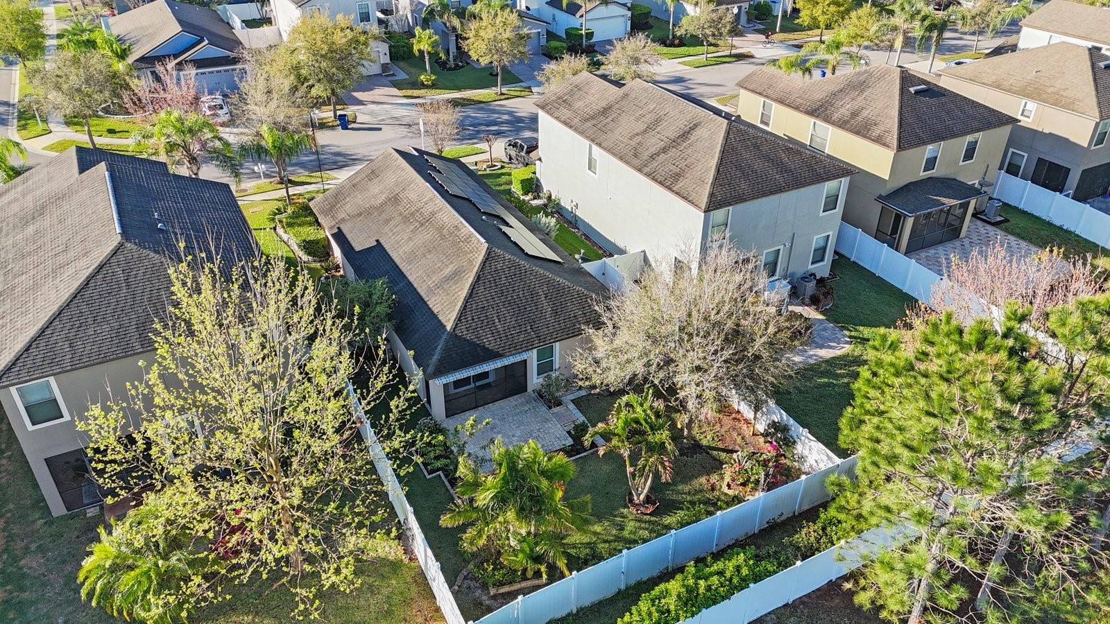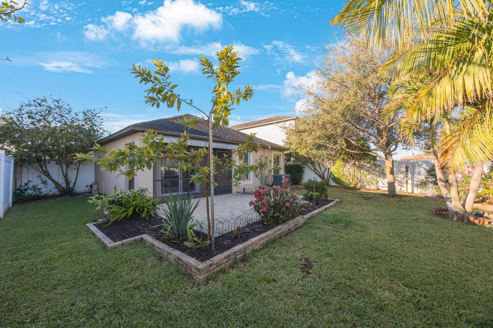 Don't miss your opportunity to own in the lovely, gated community of Trinity Preserve. This charming home is located on a quiet cul-de-sac and is absolutely move-in ready! Beautiful home with an eat in kitchen and open floor plan with lots of cabinets and counter space. Loaded with upgrades like granite kitchen counter tops, ceramic tile in the wet areas, Professionally painted and new carpet in all 3 bedrooms. The master bedroom features a large walk in closet. The screened patio overlooks the serene backyard landscaped with fruit trees, mature plants and retractable awning to extend your outdoor enjoyment. Rear yard is fully fenced. Inside laundry room. Solar panels provide lower electric bills.