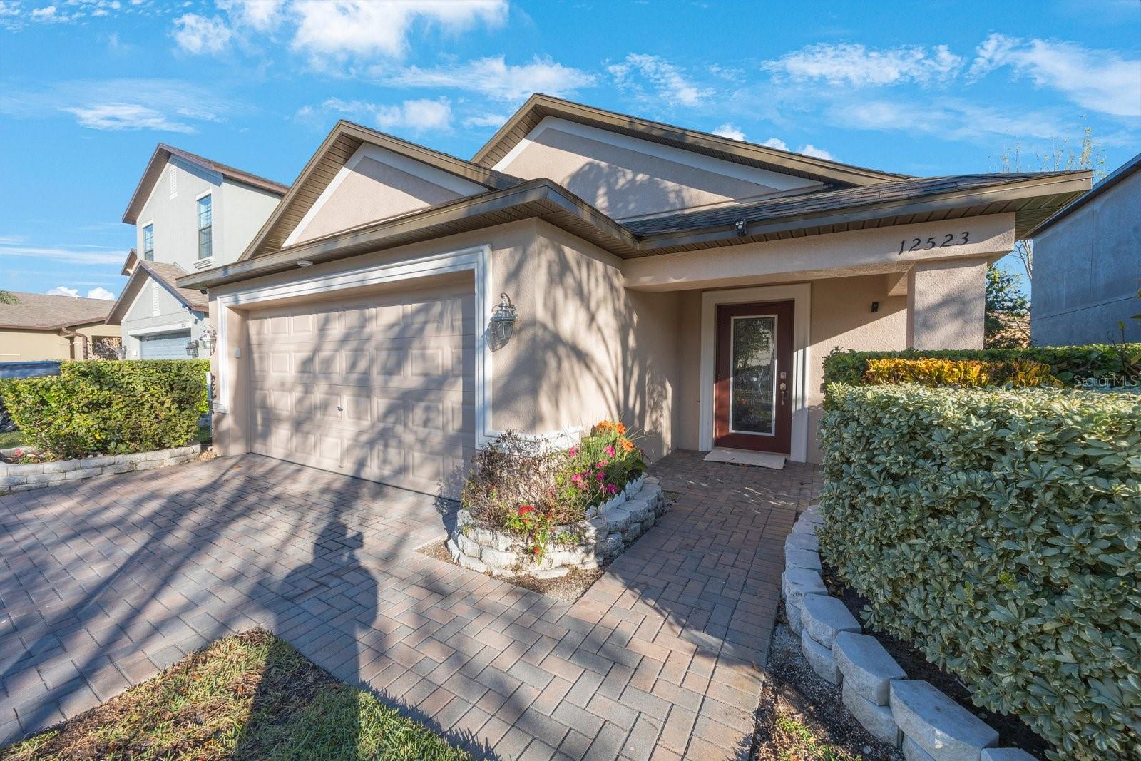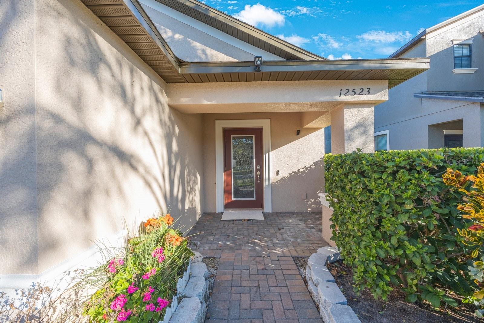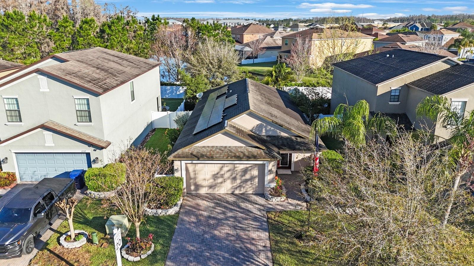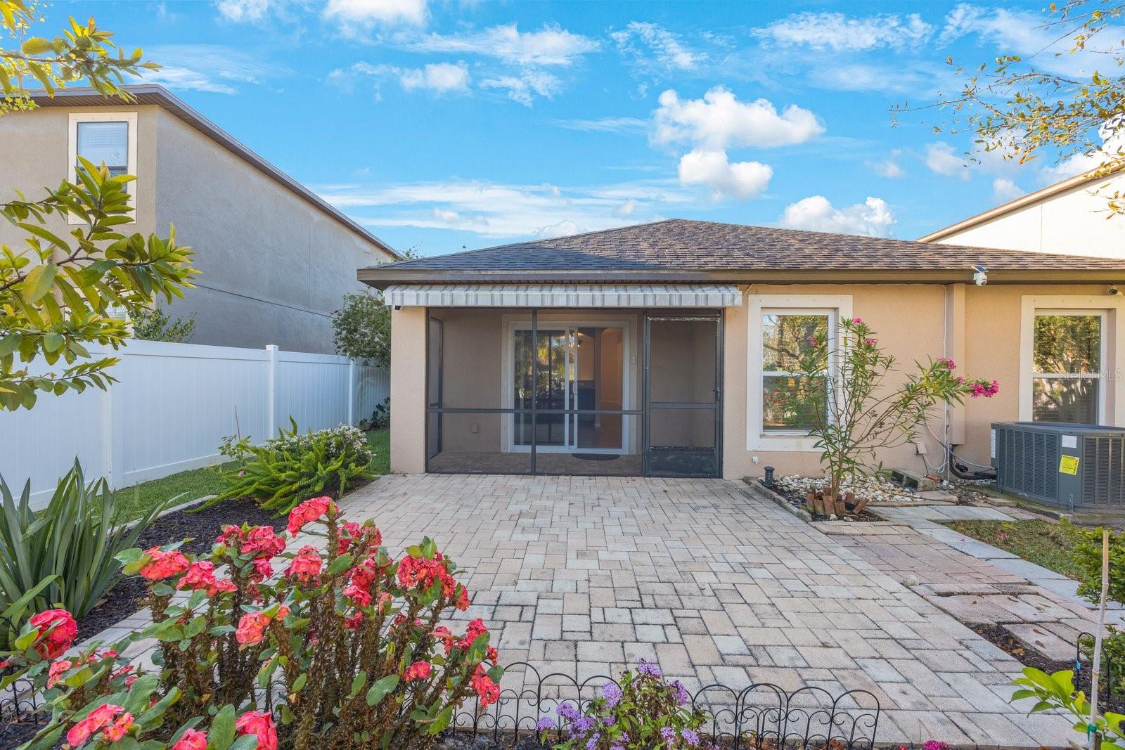 Don't miss your opportunity to own in the lovely, gated community of Trinity Preserve. This charming home is located on a quiet cul-de-sac and is absolutely move-in ready! Beautiful home with an eat in kitchen and open floor plan with lots of cabinets and counter space. Loaded with upgrades like granite kitchen counter tops, ceramic tile in the wet areas, Professionally painted and new carpet in all 3 bedrooms. The master bedroom features a large walk in closet. The screened patio overlooks the serene backyard landscaped with fruit trees, mature plants and retractable awning to extend your outdoor enjoyment. Rear yard is fully fenced. Inside laundry room. Solar panels provide lower electric bills.