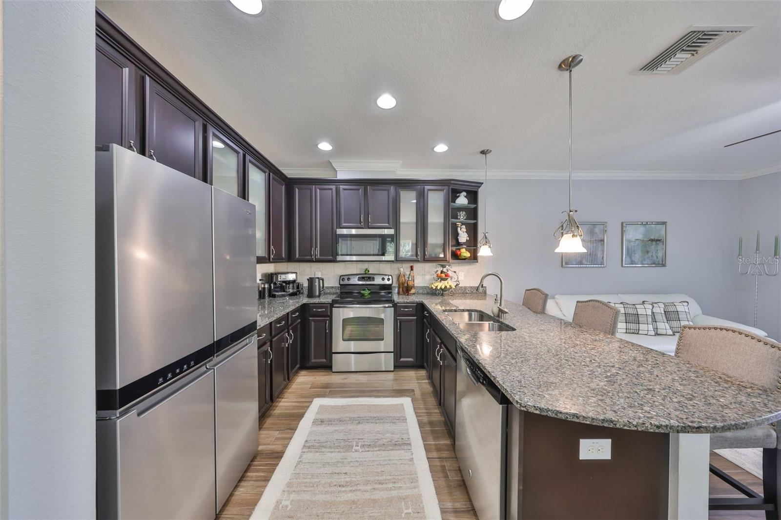 Just perfect! Beautifully upgraded, meticulously maintained 3-story townhome in the gated community of Sea Forest Beach Club Townhomes. Very private END UNIT in the back of the complex with a LANAI and the LARGEST PATIO in the community; great for gathering or private retreat. You need to see this elegant home in person. VERY SPACIOUS. Open floor plan. Fabulous leaving area with a BALCONY of the leaving room. BONUS ROOM with a large walk-in closet is currently used a dinning room; it can be used as 3rd BEDROOM. Laundry room is located on 3rd level for convenience. Split bedroom plan. All bedrooms have big walk-in closets This STUNNING HOME is ready to move in. Built by a quality builder, Ryland Homes, in 2013 and upgraded even more in the last couple years. This unit has a PRIVATE ELEVATOR! Great neighborhood with two pools and fitness center. Small pets ok. Access to the PRIVATE BEACH at Gulf Harbors Beach Club is included in the HOA fee. Fantastic location, close to shopping, restaurants and Florida attractions.
