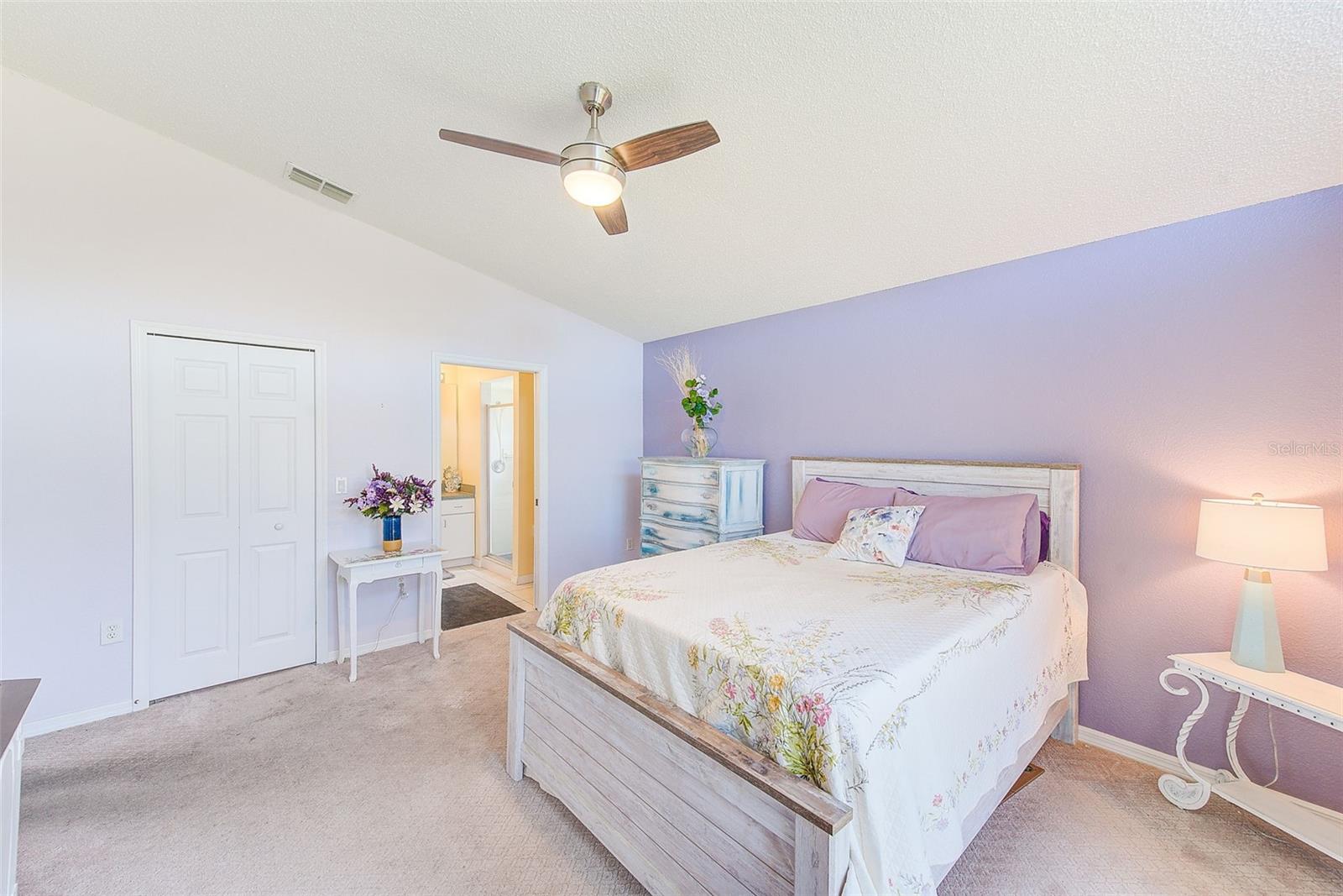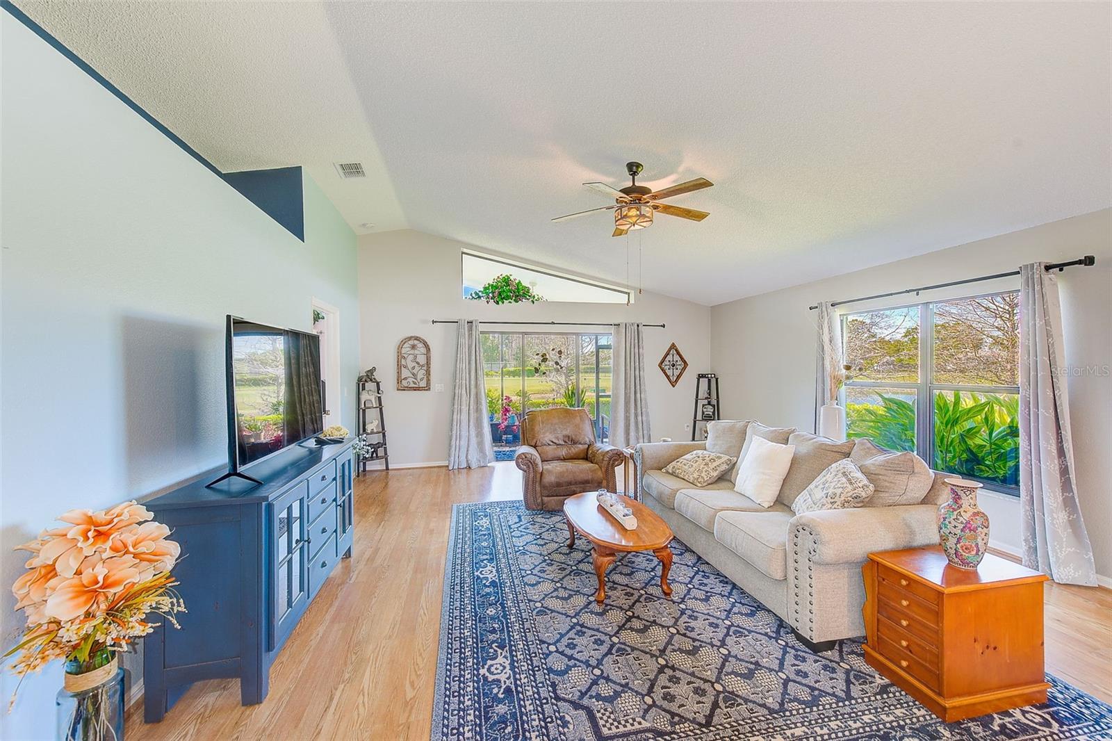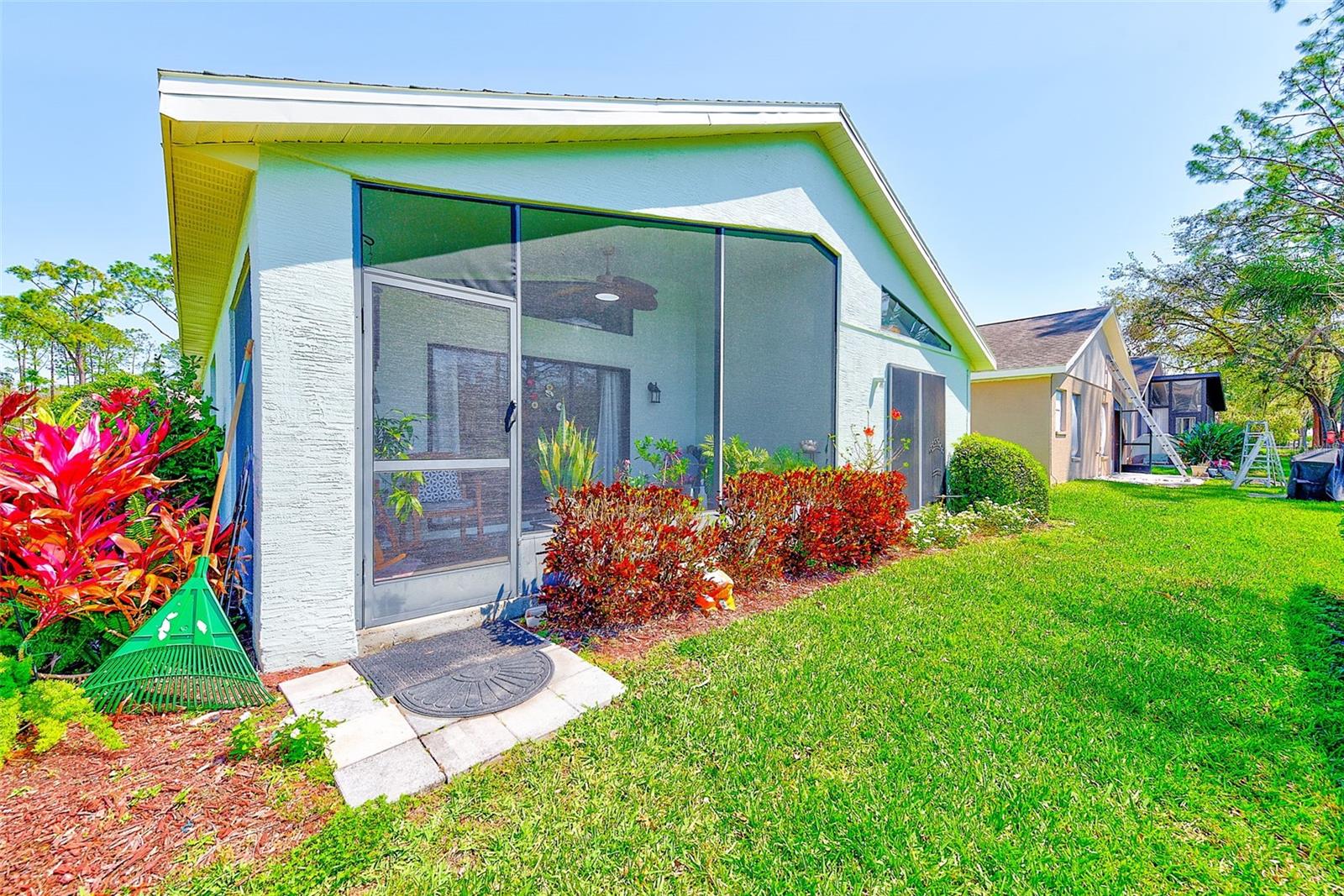 AMAZING SUNSETS OVER THE POND ON THE 16TH HOLE IN THE 55+ TIMBER GREENS GOLF COMMUNITY! This gated 2-bedroom, 2-bathroom, 2-car garage patio home is situated on one of the best CORNER LOTS located at the end of the street on a cul-de-sac. Step inside to a beautiful move-in ready home offering an open concept with abundant natural light, great room with high ceilings, laminate flooring, a spacious eat-in kitchen with stainless steel appliances, and convenient split bedroom floorplan. Enjoy the golf course view from the primary bedroom with en-suite bathroom and expansive walk-in closet. The attached garage features the laundry area and a convenient space for golf cart parking. Exit through the sliding glass doors to a screened lanai to relax and appreciate the outdoors with lush landscaping and spectacular views! Experience ease of mind with recent improvements including exterior paint 2025, ROOF 2021, A/C 2020, water heater 2018, water softener 2022, appliances (3-4 yrs), & light and ceiling fan fixtures in 2021. Timber Greens is a coveted community inviting you to live your best active and social life! Extensive amenities provide access to an immaculate 18 Hole par 71 golf course, clubhouse, golf pro shop, community pool and spa, pickleball and tennis courts, bocce, shuffleboard, arts and crafts, the 19th hole Bar and Grill, card room, library and much more!