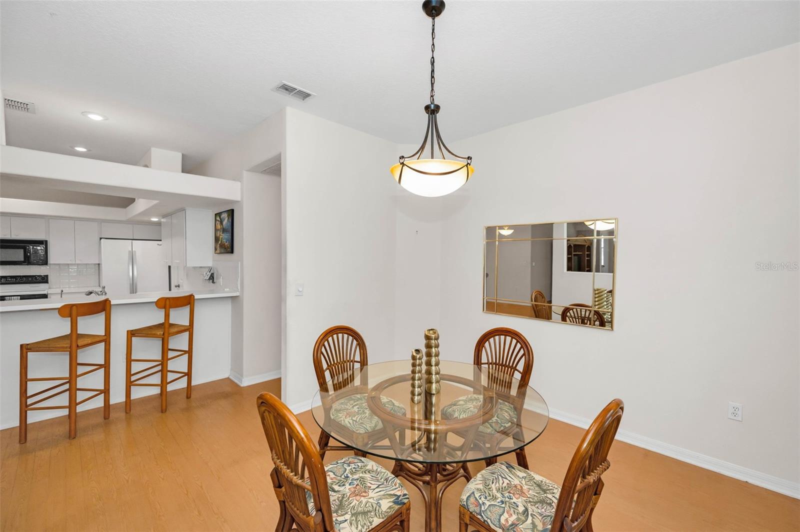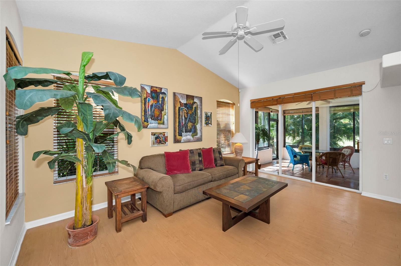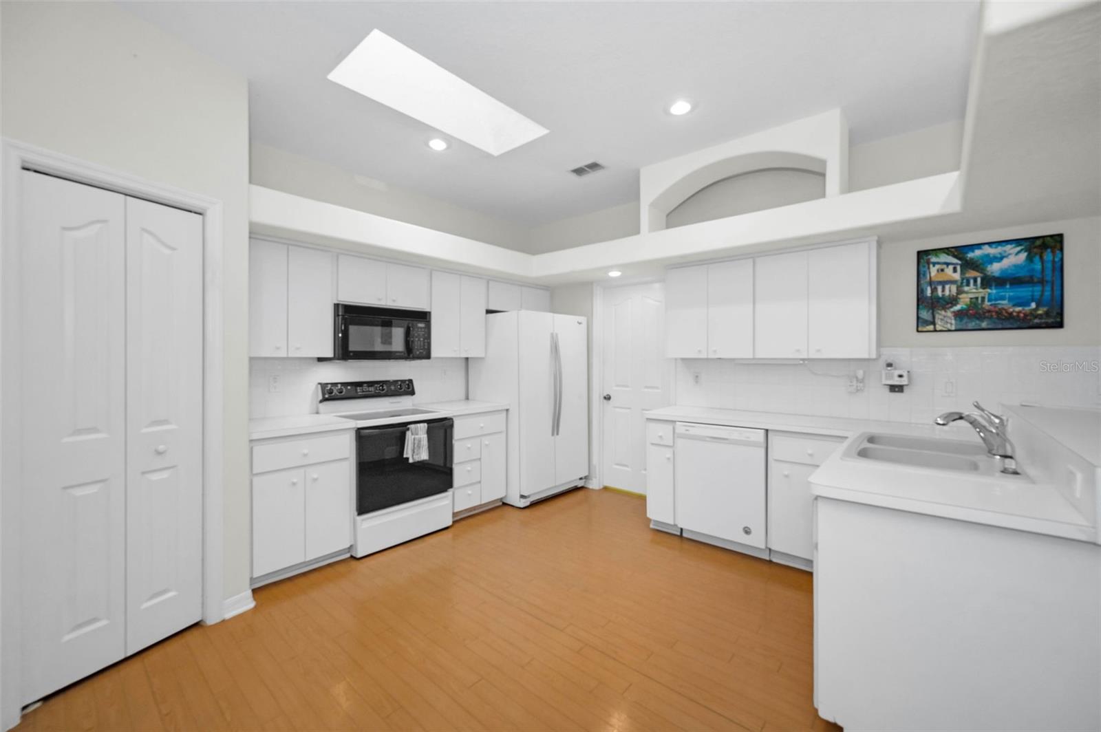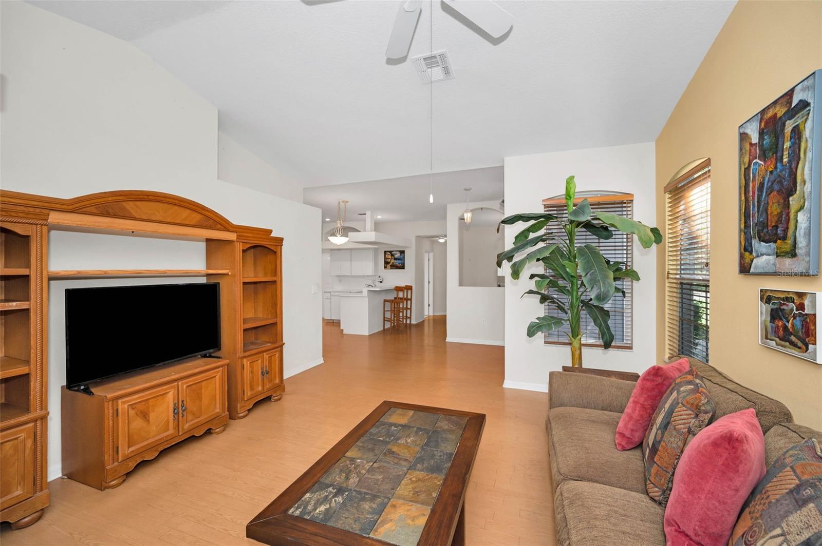 A sun-dappled yard welcomes you to this lovely villa in Summertree, a gated, 55+ subdivision in New Port Richey. Overlooking the golf course with no neighbors to the left, this 2-bedroom, 2 full bath home shines with pride of ownership. A NEWER roof was installed in 2019. Beyond the stately entrance topped with a transom window, sunlight illuminates a beautiful living room complete with vaulted ceilings and views straight out to the four-season lanai. To the right of the entry foyer, a unique cutout reveals the formal dining room, framed by a picture window. The adjacent eat-in kitchen is wide open and luminous, dressed in stunning white cabinetry and countertops. Recessed lighting and the breakfast bar add to the contemporary vibe. Two sets of doors - one leading to the well-appointed laundry room, and the other to a handy pantry closet - complete the picture. The spacious master suite boasts twin windows and sliders for private access to the lanai. Complete with a ceiling fan and large walk-in closet, the companion en suite bath offers ample storage, dual sinks, a shower room, and a deep soaking tub. As for the second bedroom, it is large enough to function for an array of purposes: as a guest room, home office, playroom, personal gym space, or a den. Sliders from both the master suite and the living room introduce this amazing space featuring tiled flooring, with windows showcasing the backyard. You’ll enjoy hours of relaxation in this versatile room. The patio is its wonderful extension, providing a platform for your BBQ and your sun lounging. With a NEWLY renovated clubhouse and a community pool, you’ve got your pick of a plethora of activities including tennis, pickleball, shuffleboard, bocce ball, horseshoes, sauna, hot tub, billiards, cards, fitness center, crafts, library, and a computer room. The reasonable HOA fees cover cable, internet, trash, exterior ground/building, and recreational amenities. This might just be the very home you’re seeking!