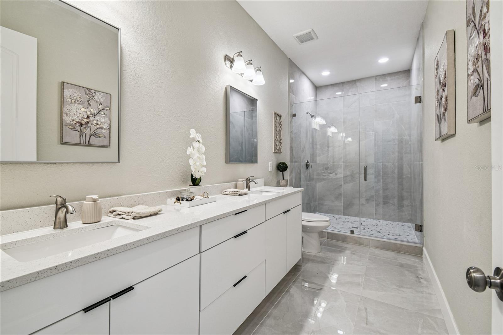 SELLER OFFERING $5,000 CREDIT to be applied to Buyer’s closing costs and pre-paids with an acceptable offer. THIS HOME IS THE BEST DEAL IN NEW PORT RICHEY! Stunning price for a rare new construction elevated home in desirable Gulf Harbors. Designed to meet the latest hurricane codes, this contemporary coastal retreat has it all and offers 2,137 square feet of thoughtfully designed living space, including 4 spacious bedrooms, 2.5 designer bathrooms, a 4-car epoxy-finished garage and beautiful enclosed lanai with screened in swimming pool! Step inside to discover a bright and expansive open-concept living and dining area, ideal for both everyday living and entertaining. The oversized living room with tray ceiling and decorative ceiling fan/light provides bountiful space for family gatherings and hosting guests in style. A chef-inspired kitchen is a true showstopper, featuring sleek quartz countertops, stainless steel appliances, modern light cabinetry, and a generous center island that doubles as a prep station and casual dining space, the perfect place for morning coffee or quick bites. Adjacent to the kitchen, a spacious dining area invites memorable family meals. Enjoy seamless indoor-outdoor living with balcony access from both the kitchen and primary suit, ideal for taking in views of the screen-enclosed resort-style pool and expansive paver patio below. An additional front-facing balcony with tiled floors and ceiling fans provides a tranquil spot to soak in the Florida sunshine. The backyard oasis includes a large covered lanai, perfect for lounging or dining al fresco. There's plenty of room to customize your outdoor lifestyle—whether that means creating a full outdoor kitchen, lounge area, or dining space. The home’s 4-car garage offers not only abundant parking but also extra room for storage, all finished with a durable and stylish epoxy floor. As a Gulf Harbors resident, you also have the option to join the exclusive Gulf Harbors Beach Club for just $200/year, granting access to a private beach, covered pavilions, picnic areas, grills, and restrooms—a perfect spot for sunny weekends and family gatherings. Don't miss this exceptional opportunity to own a modern, elevated home in one of the area’s most desirable waterfront communities. Schedule your private showing today!