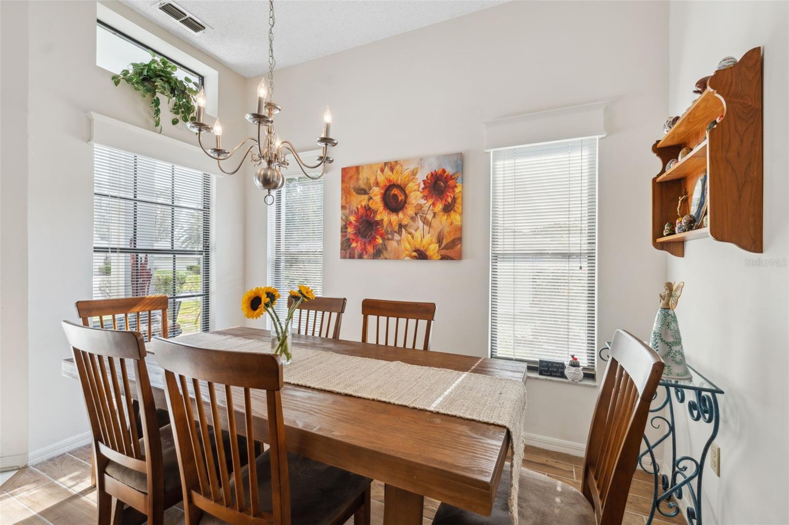 HUGE PRICE IMPPROVEMENT! THESE SAME MODELS HAVE BEEN SELLING FOR $50,000 MORE ! Looking for the country club lifestyle, Pools, pickleball, golf & so much more! 2-bedroom, 2-bathroom condominium in the sought-after Golf View Villas community. This home is the perfect blend of comfort, functionality, and style, creating an inviting atmosphere throughout. Step through the front patio, where you can unwind and enjoy the fresh air and pleasant weather, creating your own serene retreat right at home. As you enter, the open floor plan draws you in, with tile flooring flowing seamlessly throughout the living spaces. The living room features soaring high ceilings that enhance the sense of space and light. Mirrored accents add an elegant touch, and double-wide sliding glass doors lead out to the patio, inviting natural light to fill the room. The separate kitchen is designed for both practicality and enjoyment. Surrounded by windows, the breakfast nook provides a lovely spot for casual meals with views of the outdoors. The kitchen itself boasts generous counter space and ample cabinetry, perfect for preparing meals or entertaining friends and family. The spacious master bedroom is a true retreat, complete with plush carpeting and a set of sliding glass doors leading to the enclosed back patio. High ceilings provide an airy, open feel, while the master bathroom features dual sinks, a walk-in shower with sliding glass doors, and thoughtful details throughout. The guest bedroom is equally inviting, with large closets and a ceiling fan to keep things cool. The guest bathroom, featuring a single sink and shower/tub combination, offers convenience for family or visitors. For added practicality, the home includes an indoor laundry room with cabinetry for storage, making everyday chores effortless. The enclosed back patio is an impressive space, perfect for enjoying the outdoors in privacy. With ample room and a ceiling fan, it's ideal for relaxation or hosting gatherings. Located in a peaceful community with easy access to nearby amenities, this condo is a perfect combination of comfort and convenience. Don't miss the chance to experience this well-maintained home—schedule your private tour today!