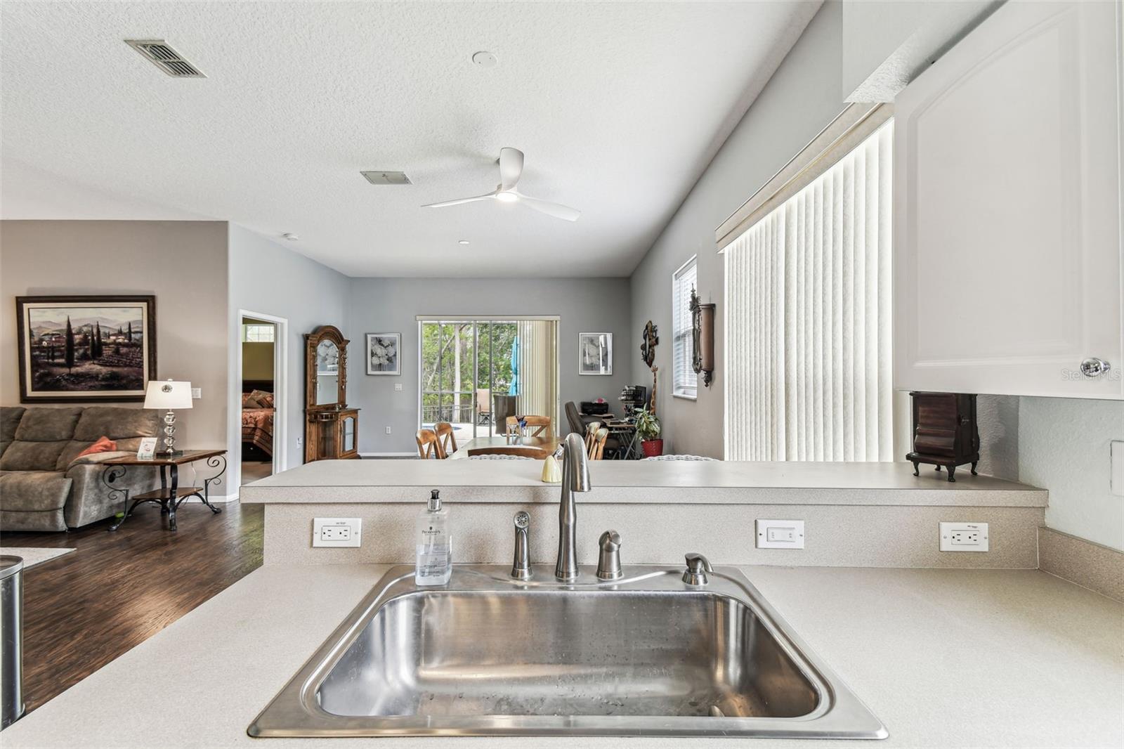 Welcome to this beautifully maintained 3-bedroom, 2-bath home in the highly desirable 55+ Summertree community! Designed for both comfort and style, this home boasts a bright, open floor plan with soaring ceilings and an abundance of natural light. The spacious living room flows effortlessly into the formal living/dining room combination, which then opens into the inviting family room. From here, step out onto the screened-in patio, where large pavers surround a gorgeous pool and spa, creating the perfect retreat for relaxation or entertaining. The eat-in kitchen is a chef’s delight, featuring stylish white cabinetry, ample counter space, pendant lighting, plant shelves, a breakfast bar, and a large pantry for all your storage needs. The primary bedroom suite is a private oasis, complete with a walk-in closet and a luxurious ensuite bathroom featuring dual sinks and a walk-in shower. The split floor plan offers two additional spacious bedrooms, ensuring privacy for guests or a home office setup. A dedicated laundry room with extra cabinet space adds convenience to everyday living. Beyond your front door, Summertree is bursting with activity! This golf cart-friendly community offers a privately owned golf course, fitness center, pool, pickleball and shuffleboard courts, game rooms, library, workout room, and so much more. From tennis and yoga to social events, card games, and line dancing, there’s always something happening in this vibrant community! Don’t miss the chance to live in this active, amenity-rich neighborhood—schedule your private tour today!