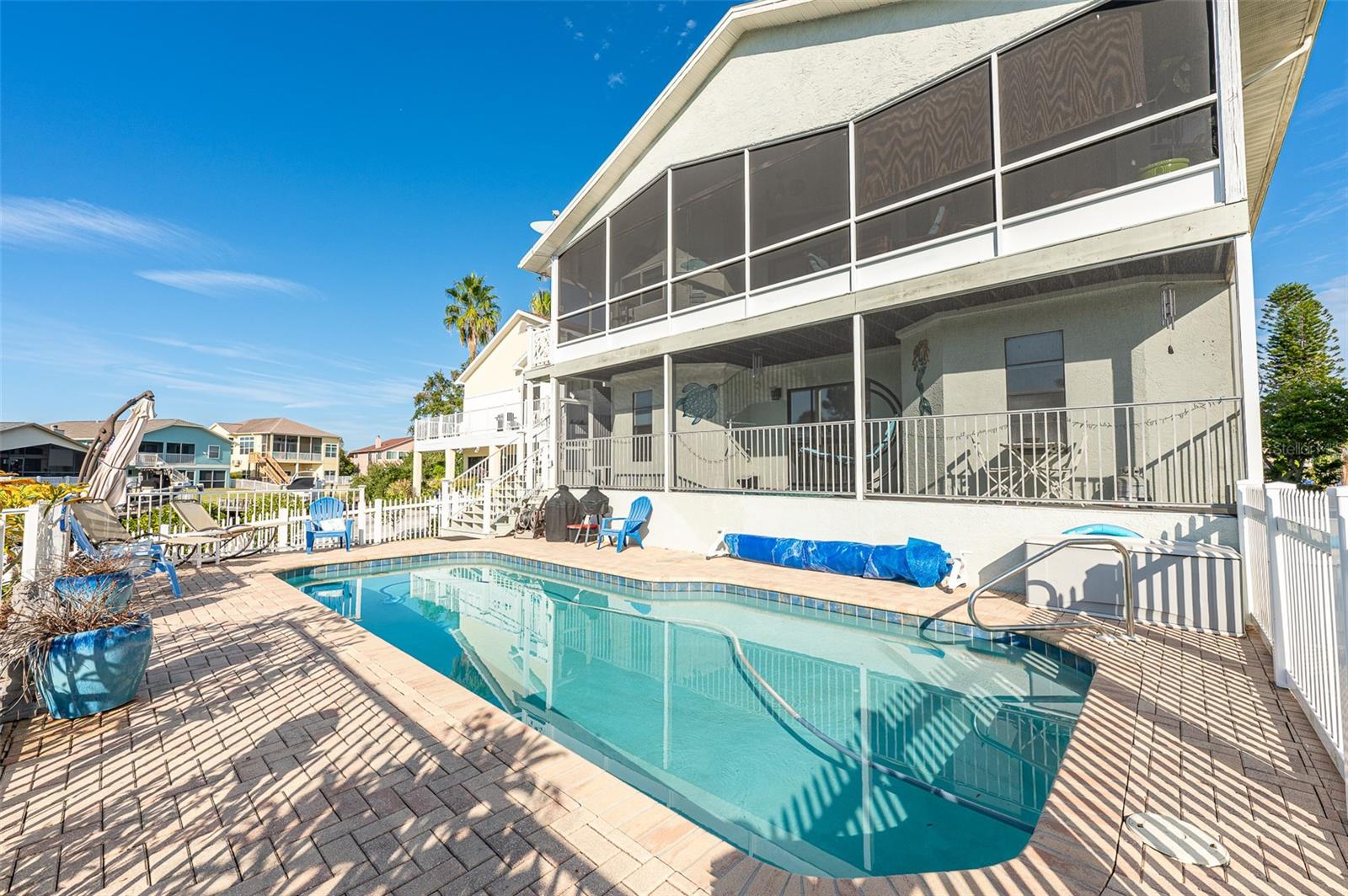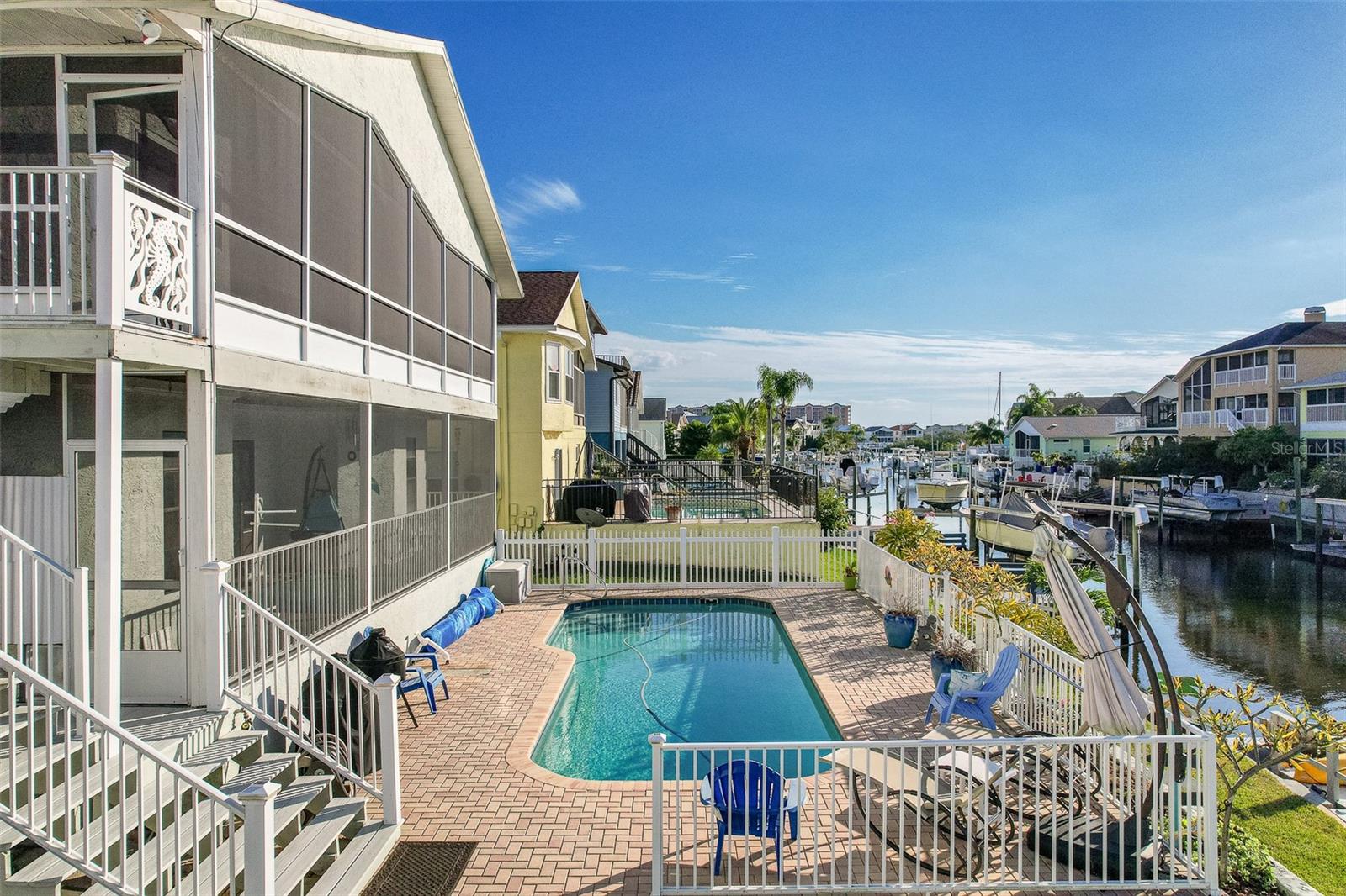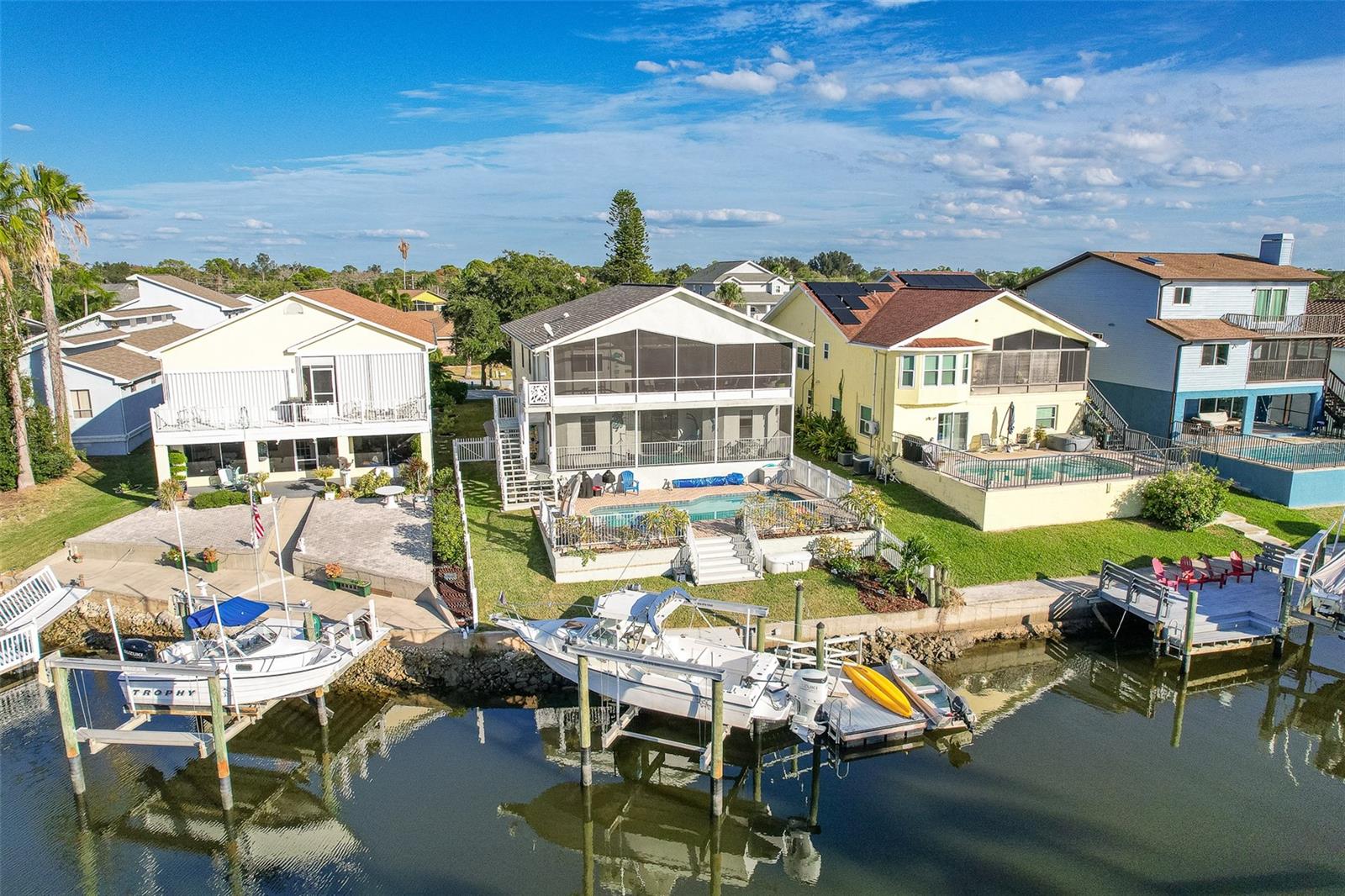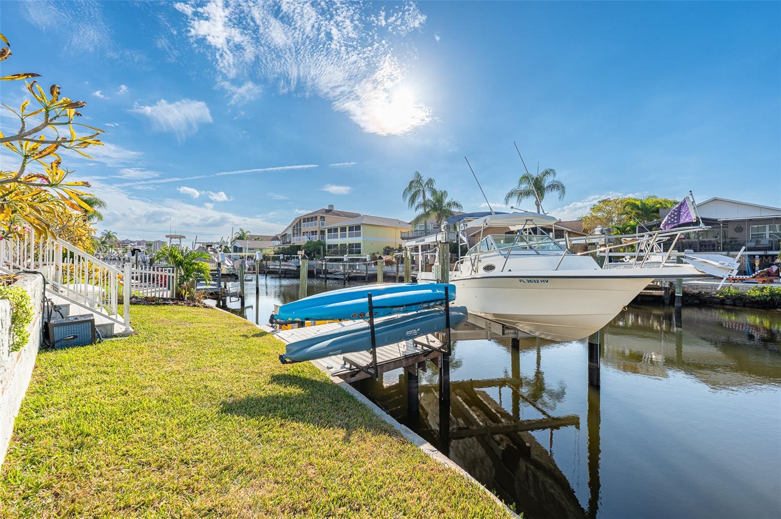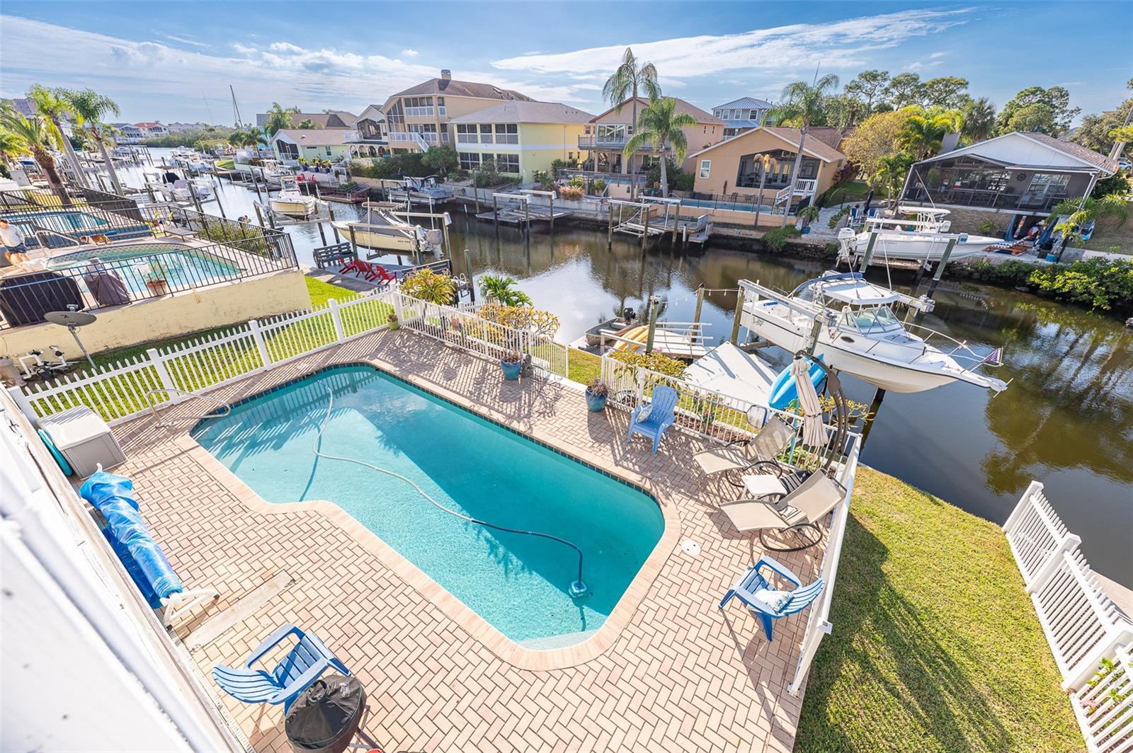 NO FLOOD DAMAGE FROM MILTON OR HELENE. Catch fresh fish right off your dock for the perfect Taco Tuesday fish tacos every week, all while basking in sunsets every evening. You won't want to miss the opportunity to own a slice of the Florida dream. Make your dreams a reality with this Gulf Harbors waterfront home that has been renovated with a lot of love and thoughtfulness. The main, upper floor boasts an open floor plan with soaring ceilings and stunning canal views. The floor plan is open which makes it perfect for entertaining and enjoying company while cooking, relaxing in the living room or enjoying a meal. The kitchen features granite countertops, stainless appliances, alabaster 42" cabinets and a breakfast bar. The main upper floor has new luxury vinyl flooring, recent paint, all new fixtures, plenty of natural light that comes through all of the windows. The primary suite is separate from the two other bedrooms with a slider that opens to the back screened in balcony. His and her closets have been updated with custom closet organizers, the en suite bathroom has also been updated with a double vanity and a tub/shower combo. The secondary bedrooms boast plenty of space and feature sliding doors to the front shared screened in balcony. The main floor secondary bathroom has also been remodeled to include an accessible shower. The bottom floor has had a complete overhaul and is perfect for a multigenerational family, or even frequent guests making it the perfect in-law suite, including 2 bedrooms a bathroom, living room, dinette space, the main laundry and a kitchenette. The bottom floor has luxury vinyl throughout and has been completely remodeled in the last couple of years. The main floor A/C was replaced in 2021 and the bottom floor two mini-splits were installed 2021. Roll down blinds throughout the entire home, all slider blinds are remote operated. The oversized 2 car garage has plenty of space for your vehicles and a ton of storage for all of your toys and recreational gear. All new railing in the front and back of the home. The front and back balconies have all new screens. The back stairs are new with Treks. The dock was installed by Ameridocks and has a 10,000 lb. boat lift with electric and water. There is also a floating docks and kayak storage. The dock was completed in 2020 and Trek was also installed. When you aren't fishing or enjoying the ocean, you can take a dip in your salt water pool and sun yourself on the paver deck. Rinse off in the outdoor shower before coming back in the house to make your fish tacos. The windows all have film that is hurricane rated from 120-135 mph. Every details has been thought of with this home. If the details and updates aren't enough, you have access to a private beach at Gulf Harbors Beach Club. It doesn't get any better than this. Close to shopping, schools, medical and more. Schedule your private showing today.
