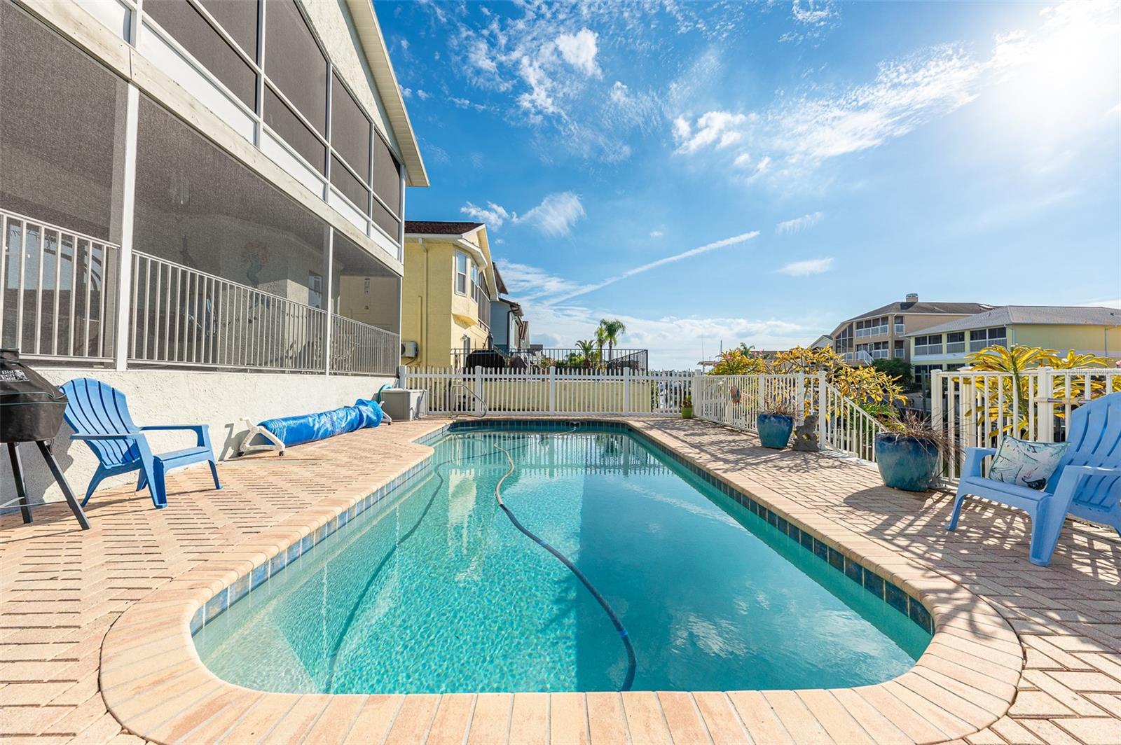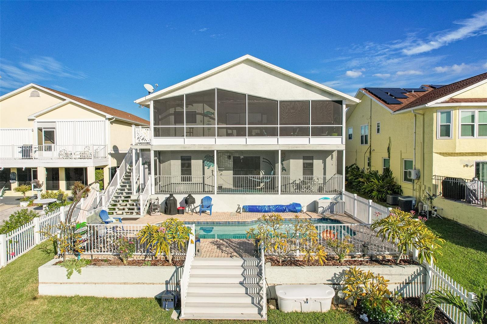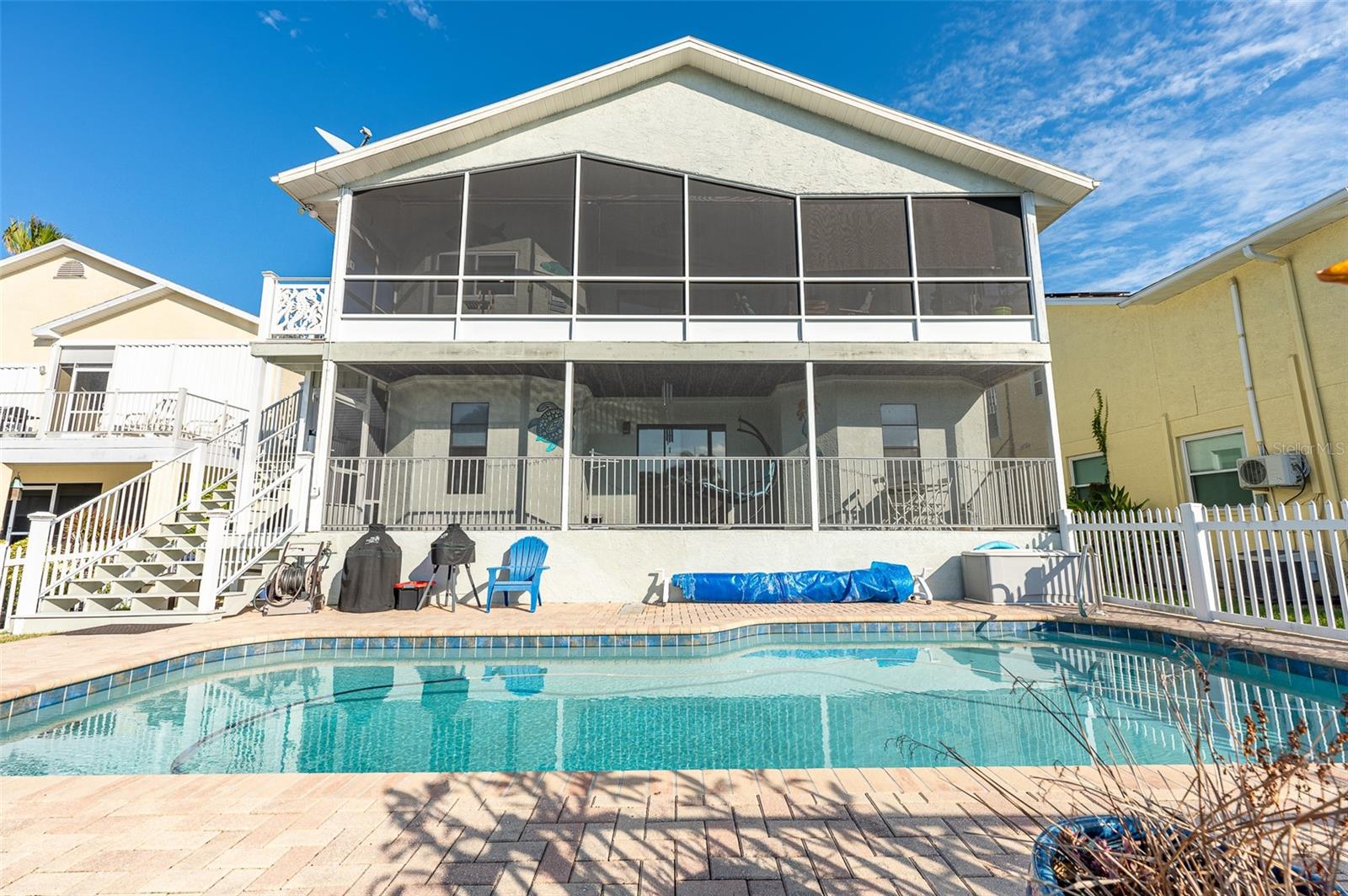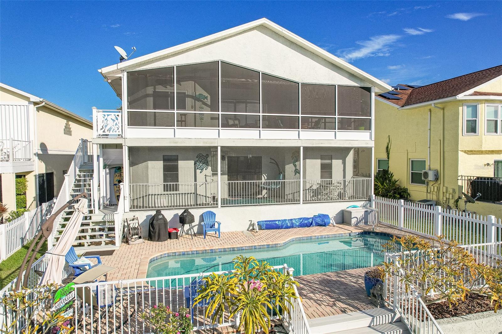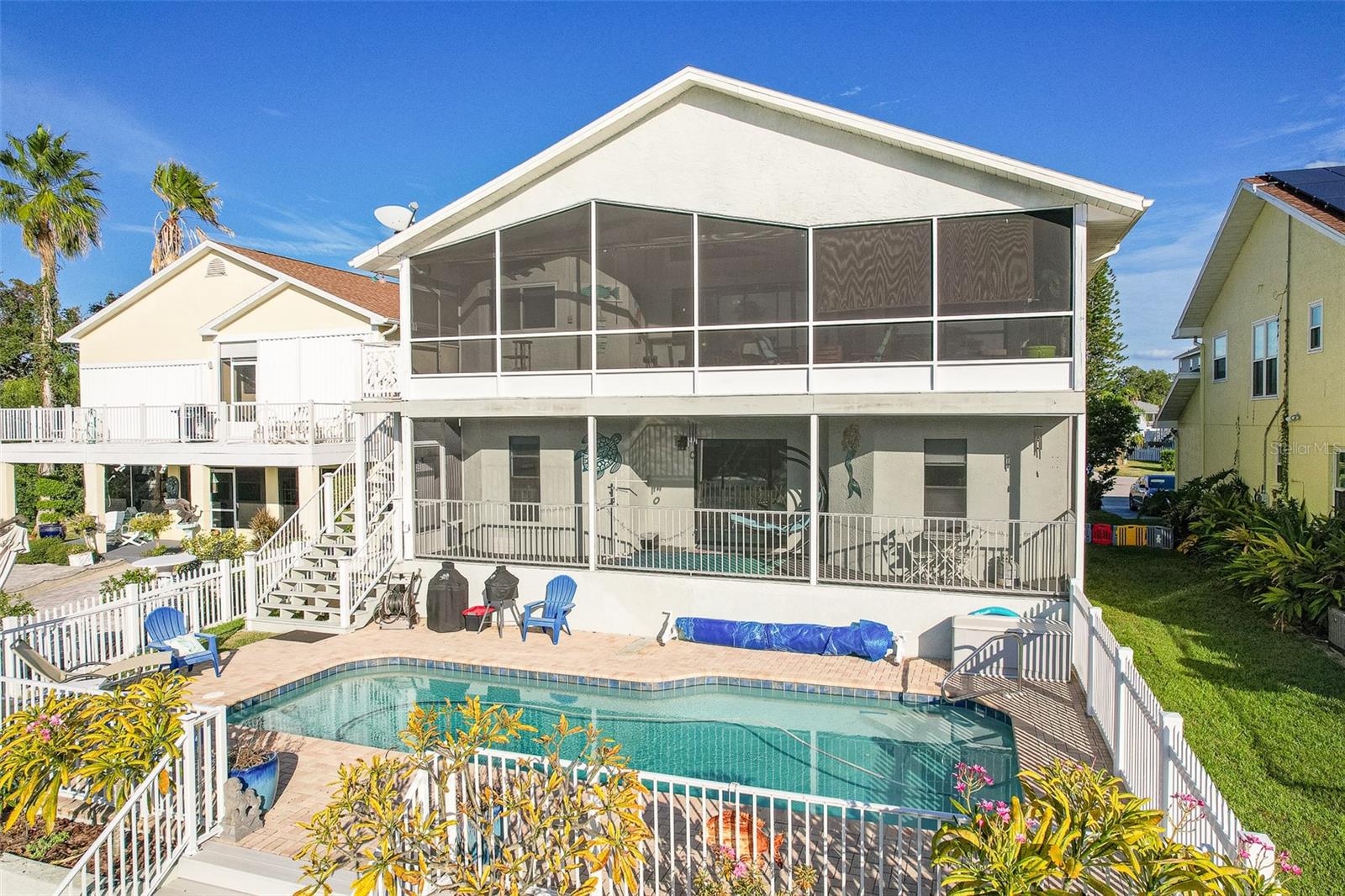 NO FLOOD DAMAGE FROM MILTON OR HELENE. Catch fresh fish right off your dock for the perfect Taco Tuesday fish tacos every week, all while basking in sunsets every evening. You won't want to miss the opportunity to own a slice of the Florida dream. Make your dreams a reality with this Gulf Harbors waterfront home that has been renovated with a lot of love and thoughtfulness. The main, upper floor boasts an open floor plan with soaring ceilings and stunning canal views. The floor plan is open which makes it perfect for entertaining and enjoying company while cooking, relaxing in the living room or enjoying a meal. The kitchen features granite countertops, stainless appliances, alabaster 42" cabinets and a breakfast bar. The main upper floor has new luxury vinyl flooring, recent paint, all new fixtures, plenty of natural light that comes through all of the windows. The primary suite is separate from the two other bedrooms with a slider that opens to the back screened in balcony. His and her closets have been updated with custom closet organizers, the en suite bathroom has also been updated with a double vanity and a tub/shower combo. The secondary bedrooms boast plenty of space and feature sliding doors to the front shared screened in balcony. The main floor secondary bathroom has also been remodeled to include an accessible shower. The bottom floor has had a complete overhaul and is perfect for a multigenerational family, or even frequent guests making it the perfect in-law suite, including 2 bedrooms a bathroom, living room, dinette space, the main laundry and a kitchenette. The bottom floor has luxury vinyl throughout and has been completely remodeled in the last couple of years. The main floor A/C was replaced in 2021 and the bottom floor two mini-splits were installed 2021. Roll down blinds throughout the entire home, all slider blinds are remote operated. The oversized 2 car garage has plenty of space for your vehicles and a ton of storage for all of your toys and recreational gear. All new railing in the front and back of the home. The front and back balconies have all new screens. The back stairs are new with Treks. The dock was installed by Ameridocks and has a 10,000 lb. boat lift with electric and water. There is also a floating docks and kayak storage. The dock was completed in 2020 and Trek was also installed. When you aren't fishing or enjoying the ocean, you can take a dip in your salt water pool and sun yourself on the paver deck. Rinse off in the outdoor shower before coming back in the house to make your fish tacos. The windows all have film that is hurricane rated from 120-135 mph. Every details has been thought of with this home. If the details and updates aren't enough, you have access to a private beach at Gulf Harbors Beach Club. It doesn't get any better than this. Close to shopping, schools, medical and more. Schedule your private showing today.
