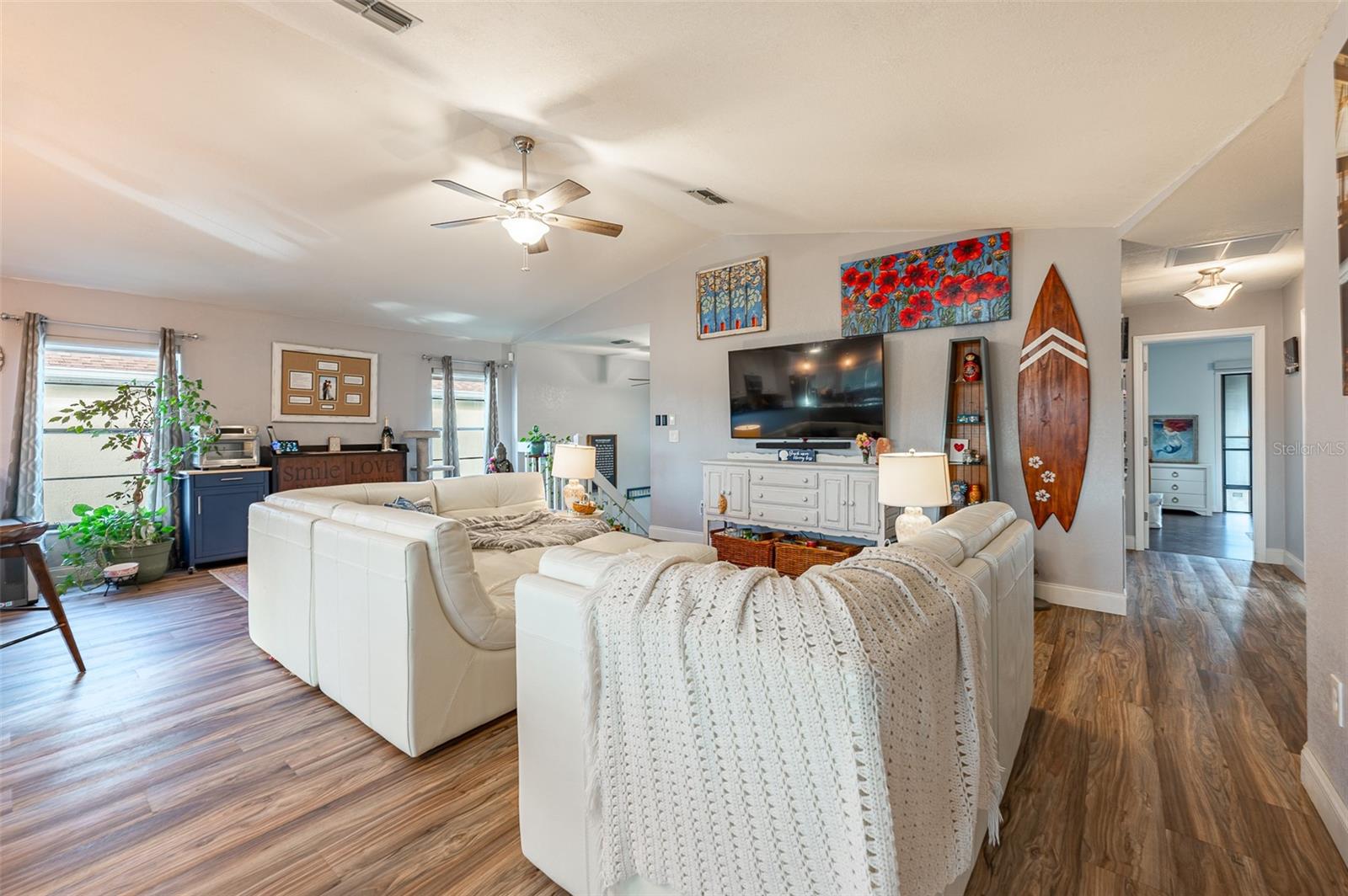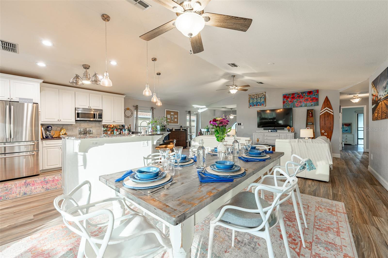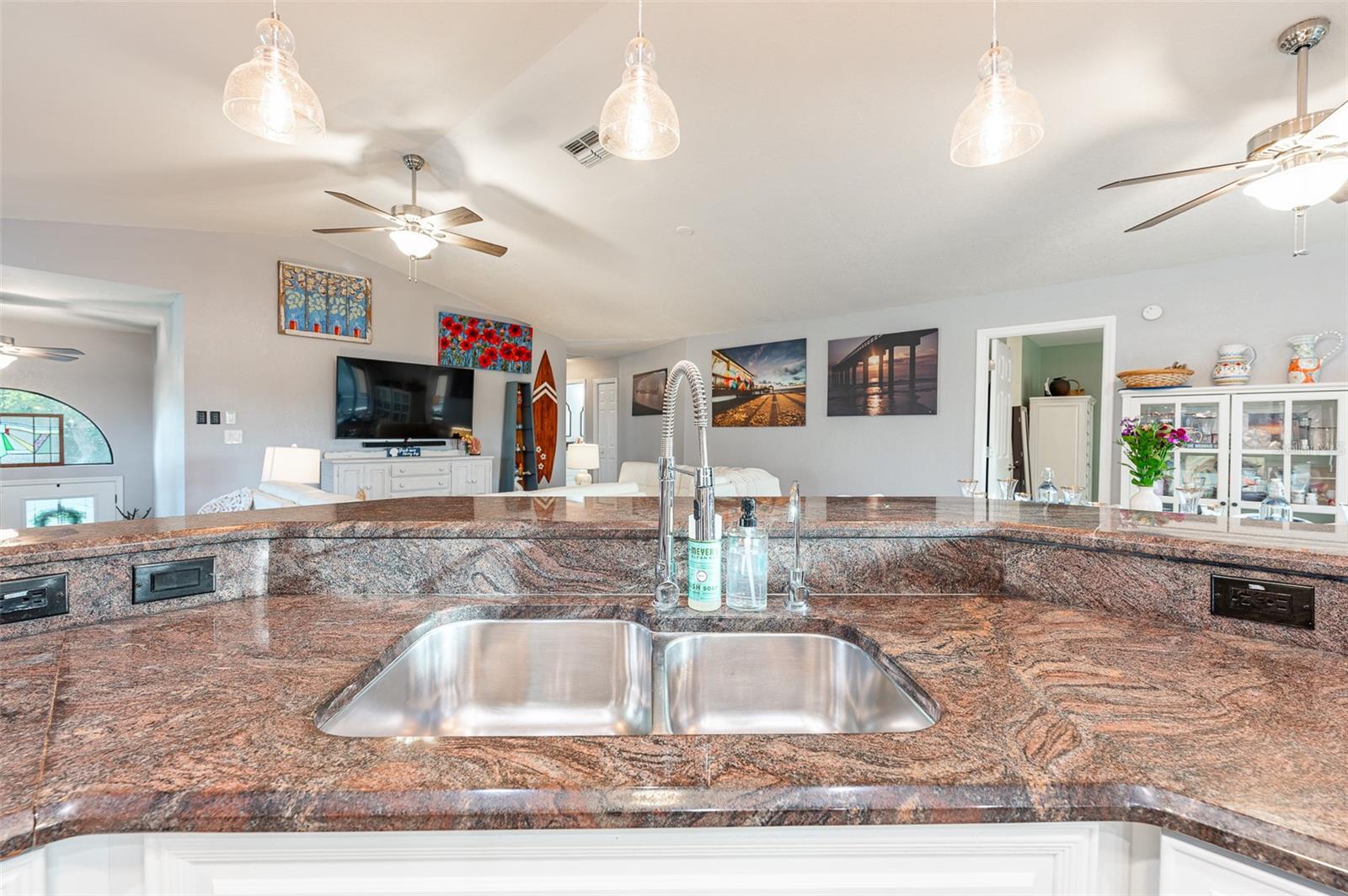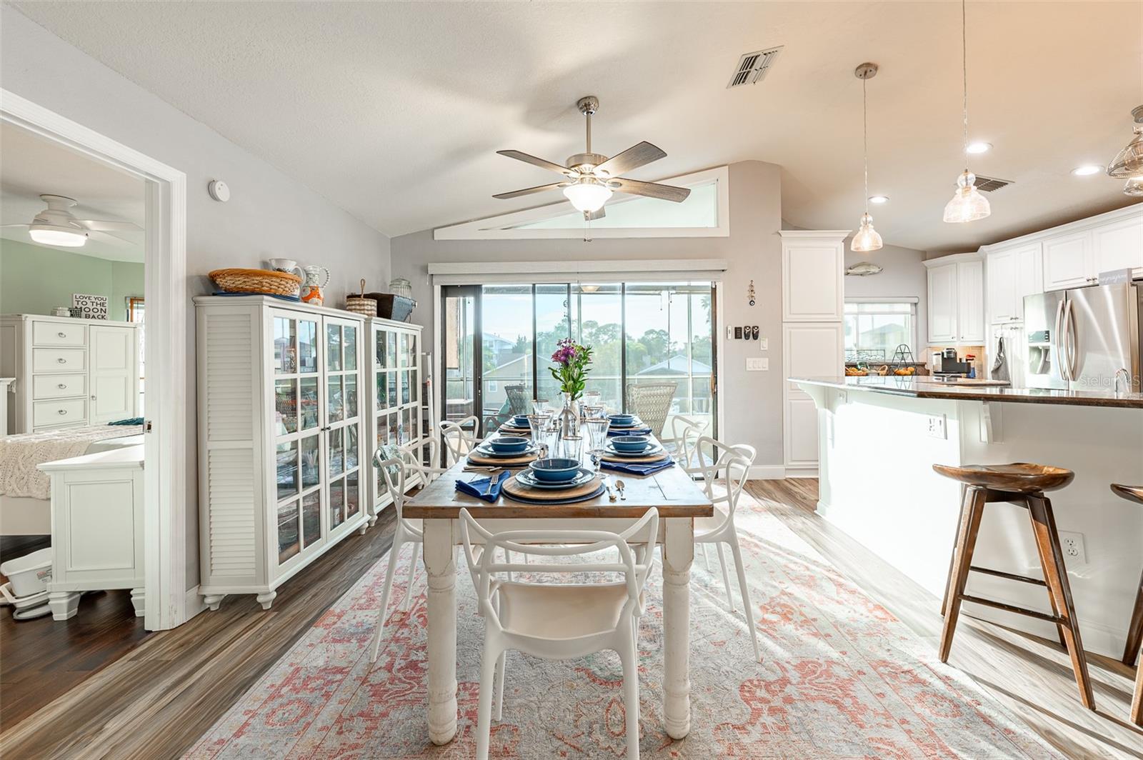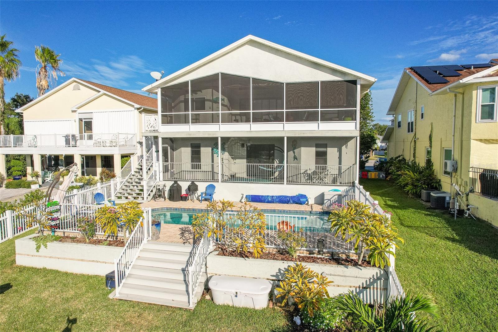 NO FLOOD DAMAGE FROM MILTON OR HELENE. Catch fresh fish right off your dock for the perfect Taco Tuesday fish tacos every week, all while basking in sunsets every evening. You won't want to miss the opportunity to own a slice of the Florida dream. Make your dreams a reality with this Gulf Harbors waterfront home that has been renovated with a lot of love and thoughtfulness. The main, upper floor boasts an open floor plan with soaring ceilings and stunning canal views. The floor plan is open which makes it perfect for entertaining and enjoying company while cooking, relaxing in the living room or enjoying a meal. The kitchen features granite countertops, stainless appliances, alabaster 42" cabinets and a breakfast bar. The main upper floor has new luxury vinyl flooring, recent paint, all new fixtures, plenty of natural light that comes through all of the windows. The primary suite is separate from the two other bedrooms with a slider that opens to the back screened in balcony. His and her closets have been updated with custom closet organizers, the en suite bathroom has also been updated with a double vanity and a tub/shower combo. The secondary bedrooms boast plenty of space and feature sliding doors to the front shared screened in balcony. The main floor secondary bathroom has also been remodeled to include an accessible shower. The bottom floor has had a complete overhaul and is perfect for a multigenerational family, or even frequent guests making it the perfect in-law suite, including 2 bedrooms a bathroom, living room, dinette space, the main laundry and a kitchenette. The bottom floor has luxury vinyl throughout and has been completely remodeled in the last couple of years. The main floor A/C was replaced in 2021 and the bottom floor two mini-splits were installed 2021. Roll down blinds throughout the entire home, all slider blinds are remote operated. The oversized 2 car garage has plenty of space for your vehicles and a ton of storage for all of your toys and recreational gear. All new railing in the front and back of the home. The front and back balconies have all new screens. The back stairs are new with Treks. The dock was installed by Ameridocks and has a 10,000 lb. boat lift with electric and water. There is also a floating docks and kayak storage. The dock was completed in 2020 and Trek was also installed. When you aren't fishing or enjoying the ocean, you can take a dip in your salt water pool and sun yourself on the paver deck. Rinse off in the outdoor shower before coming back in the house to make your fish tacos. The windows all have film that is hurricane rated from 120-135 mph. Every details has been thought of with this home. If the details and updates aren't enough, you have access to a private beach at Gulf Harbors Beach Club. It doesn't get any better than this. Close to shopping, schools, medical and more. Schedule your private showing today.