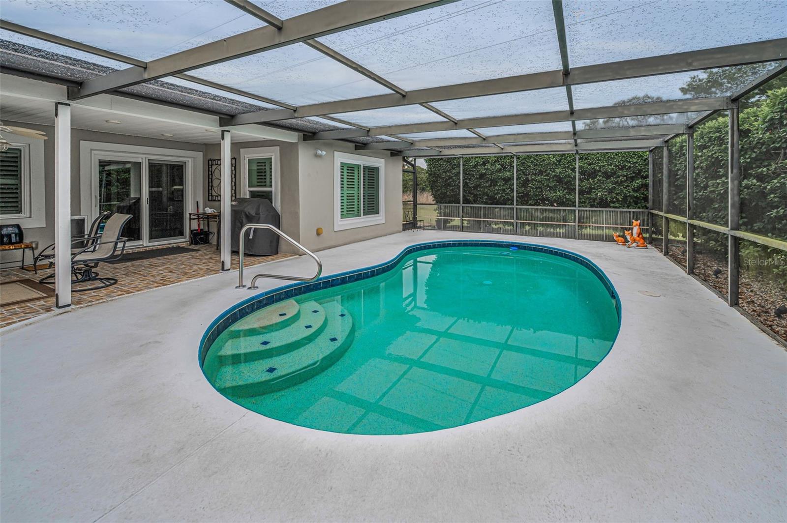 Situated in the highly sought-after Deer Park community, this beautifully maintained 2-bedroom, 2-bathroom POOL home (with a flexible bonus room that could be converted into a third bedroom) offers an ideal blend of comfort, functionality, and modern upgrades. Step inside to discover a thoughtfully updated interior featuring hurricane-impact double-pane windows and doors (installed just 2 years ago), a 7-year-old HVAC system, and extra blown-in insulation with all-new ductwork for year-round energy efficiency. The home is also equipped with owned solar panels that power both the house and pool, keeping electric bills impressively low. The spacious two-car garage is fully upgraded with an insulated hurricane-rated door, screen enclosure, water conditioning system, tankless water heater, upgraded electrical panel and outlets, a heavy-duty 375 lb. rated attic ladder, attic flooring, and an XL utility sink. Inside, enjoy elevated details such as plantation shutters, crown and baseboard molding, engineered hardwood plank flooring, and custom recessed LED dimmable lighting throughout. The gourmet kitchen boasts stainless steel appliances, an induction cooktop with convection oven, stylish cabinetry and hardware, and a high-efficiency lazy Susan in the corner cabinetry. Additional highlights include: XL capacity washer & dryer, updated bathrooms with high-efficiency elongated toilets, upgraded cabinetry, countertops, and fixtures, lighted cologne/perfume display in the guest bath, custom master bath with large mirror, one-piece fiberglass shower with glass door, and extra recessed storage, HD closet organizers in both bedrooms, 5 ceiling fans for added comfort throughout the home, popcorn ceilings removed in most of the home and a versatile flex space off the primary bedroom—ideal as an office, nursery, or sitting room The private backyard oasis features a screened-in pool area with a refinished pool surface, new pool pump motor, white LED lighting, and pool heat pump—perfect for entertaining or enjoying a quiet afternoon outdoors. Exterior upgrades continue with LED landscape lighting (dusk to dawn), repainted soffits and gutters, a concrete step path, tool shed, two sprinkler systems, and a 30/50 amp RV electrical hookup—ideal for guests or recreational use. Located in a peaceful, established neighborhood with easy access to shopping, dining, and top-rated schools. Plus, enjoy close proximity to Jay B. Starkey Wilderness Park for hiking, biking, and nature lovers. Downtown New Port Richey is just a short drive away, offering a vibrant mix of restaurants, entertainment, and local charm.
