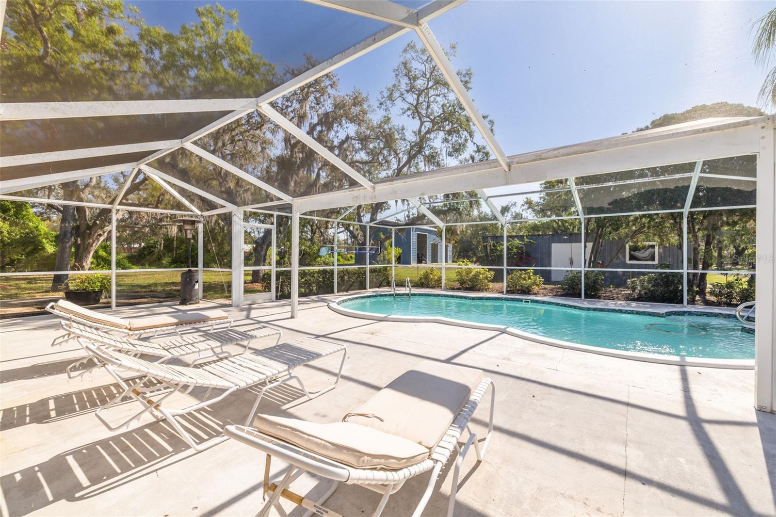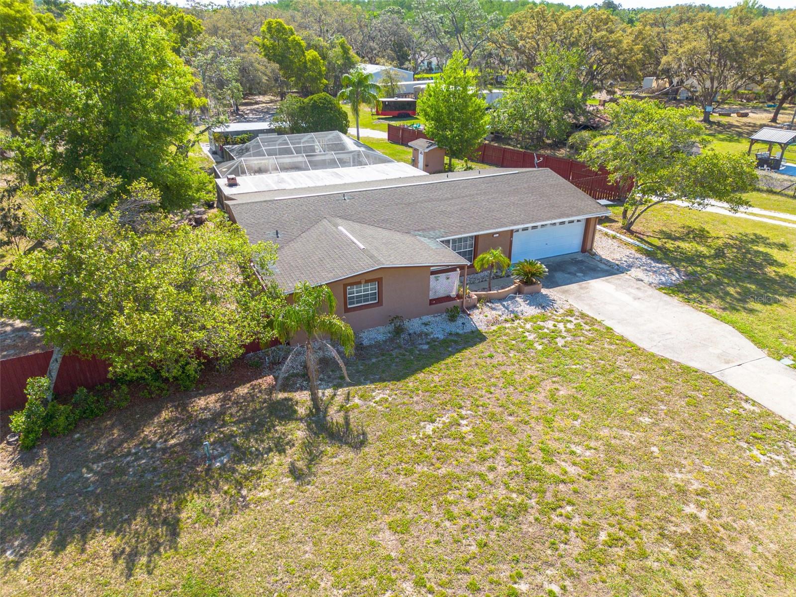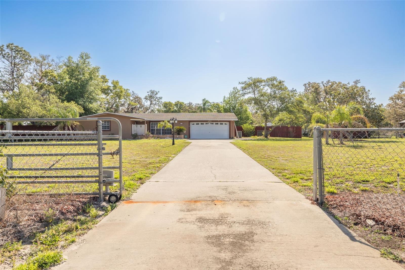 NEW TO MARKET!!! NEW TO MARKET!!! NEW TO MARKET!!! Seller may consider a rate buy down for the new buyer. Laid-back living at its finest in HOA-FREE Golden Acres!!! Tucked away on just under 2 peaceful acres in the heart of New Port Richey, this 3-bedroom, 2-bathroom home offers that perfect blend of comfort, space, and good ol’ Florida charm. Start your mornings slow on the inviting front porch, sipping coffee. Step inside to a warm, welcoming layout with plenty of natural light, a cozy living area, and a kitchen that’s made for Sunday breakfasts or a pot of chili on the stove. The split-bedroom floor plan gives everyone their own space, with a private primary suite that’s just right for unwinding after a long day. There is a huge inside laundry/mud room. Additional features are: NO WATER BILL, as there is a well, Flood Zone X, home is on septic, chicken coup, in ground bbq, fire pit, AC is newer, brand new water heater, new cabinets & new high end appliances But the real fun is out back—a spacious, caged-in pool is perfect for lazy weekends, splash time with the kids, or just floating under the sky. And for those personal projects or hobbies, you’ll love the separate he-shed and she-shed, giving everyone their own little getaway space. The backyard features a huge screened-in pool area that features a wood burning, brick pizza oven/rotisserie, pool table and plenty of room to lounge around. There is an outside bath for convenience. Want more? How about the HUGE, Tubular Steel, 150 mph wind rated structure (over $75K in value) that could be made into an inlaw quarters, storage for your cars, boats, game/movie room... Truly whatever you want. It's brand new and done to code. Still want more? There is also a "she-shed" as well! 2 separate structures for whatever your heart desires. With plenty of open land, you’ve got room to roam, garden, raise a few chickens, have horses, pigs, chickens, and goats right in the privacy of your own backyard. Enjoy the fruits of your avocado tree, pear, kumquat and fig trees. Peaceful and private, but still close to town, this home is country living without the long drive. If you’re looking for space to breathe and a place to kick off your boots, this Golden Heights gem is ready to welcome you home.
