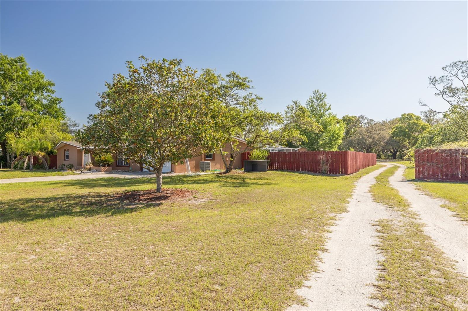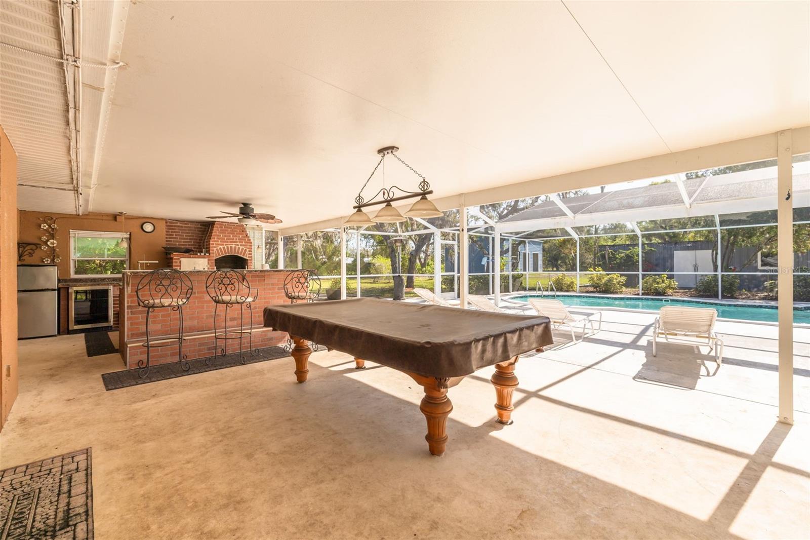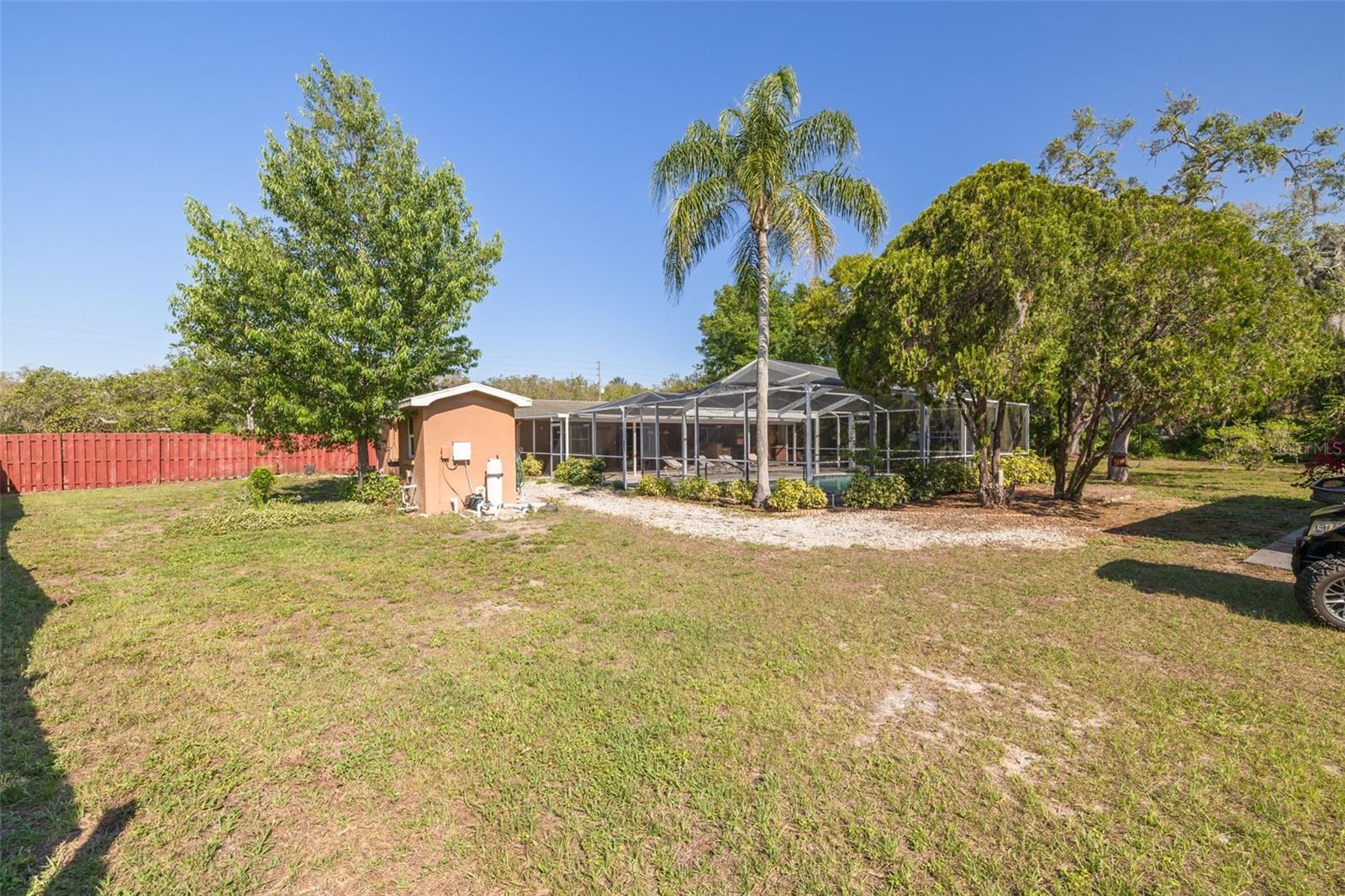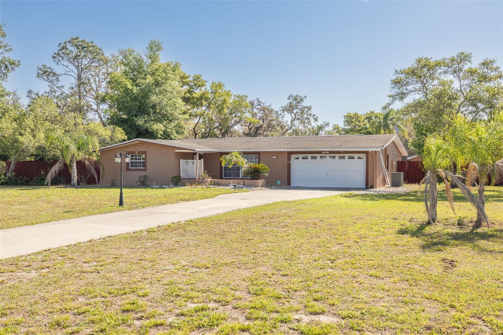 NEW TO MARKET!!! NEW TO MARKET!!! NEW TO MARKET!!! Seller may consider a rate buy down for the new buyer. Laid-back living at its finest in HOA-FREE Golden Acres!!! Tucked away on just under 2 peaceful acres in the heart of New Port Richey, this 3-bedroom, 2-bathroom home offers that perfect blend of comfort, space, and good ol’ Florida charm. Start your mornings slow on the inviting front porch, sipping coffee. Step inside to a warm, welcoming layout with plenty of natural light, a cozy living area, and a kitchen that’s made for Sunday breakfasts or a pot of chili on the stove. The split-bedroom floor plan gives everyone their own space, with a private primary suite that’s just right for unwinding after a long day. There is a huge inside laundry/mud room. Additional features are: NO WATER BILL, as there is a well, Flood Zone X, home is on septic, chicken coup, in ground bbq, fire pit, AC is newer, brand new water heater, new cabinets & new high end appliances But the real fun is out back—a spacious, caged-in pool is perfect for lazy weekends, splash time with the kids, or just floating under the sky. And for those personal projects or hobbies, you’ll love the separate he-shed and she-shed, giving everyone their own little getaway space. The backyard features a huge screened-in pool area that features a wood burning, brick pizza oven/rotisserie, pool table and plenty of room to lounge around. There is an outside bath for convenience. Want more? How about the HUGE, Tubular Steel, 150 mph wind rated structure (over $75K in value) that could be made into an inlaw quarters, storage for your cars, boats, game/movie room... Truly whatever you want. It's brand new and done to code. Still want more? There is also a "she-shed" as well! 2 separate structures for whatever your heart desires. With plenty of open land, you’ve got room to roam, garden, raise a few chickens, have horses, pigs, chickens, and goats right in the privacy of your own backyard. Enjoy the fruits of your avocado tree, pear, kumquat and fig trees. Peaceful and private, but still close to town, this home is country living without the long drive. If you’re looking for space to breathe and a place to kick off your boots, this Golden Heights gem is ready to welcome you home.