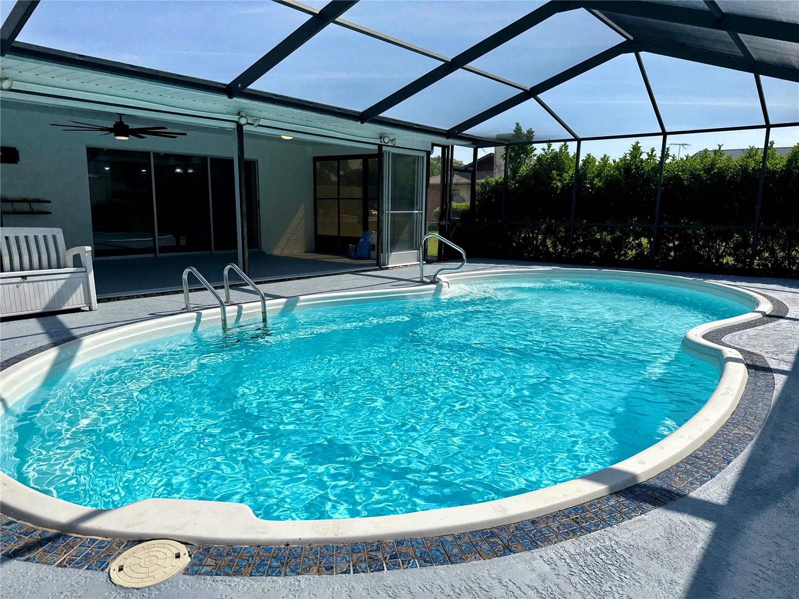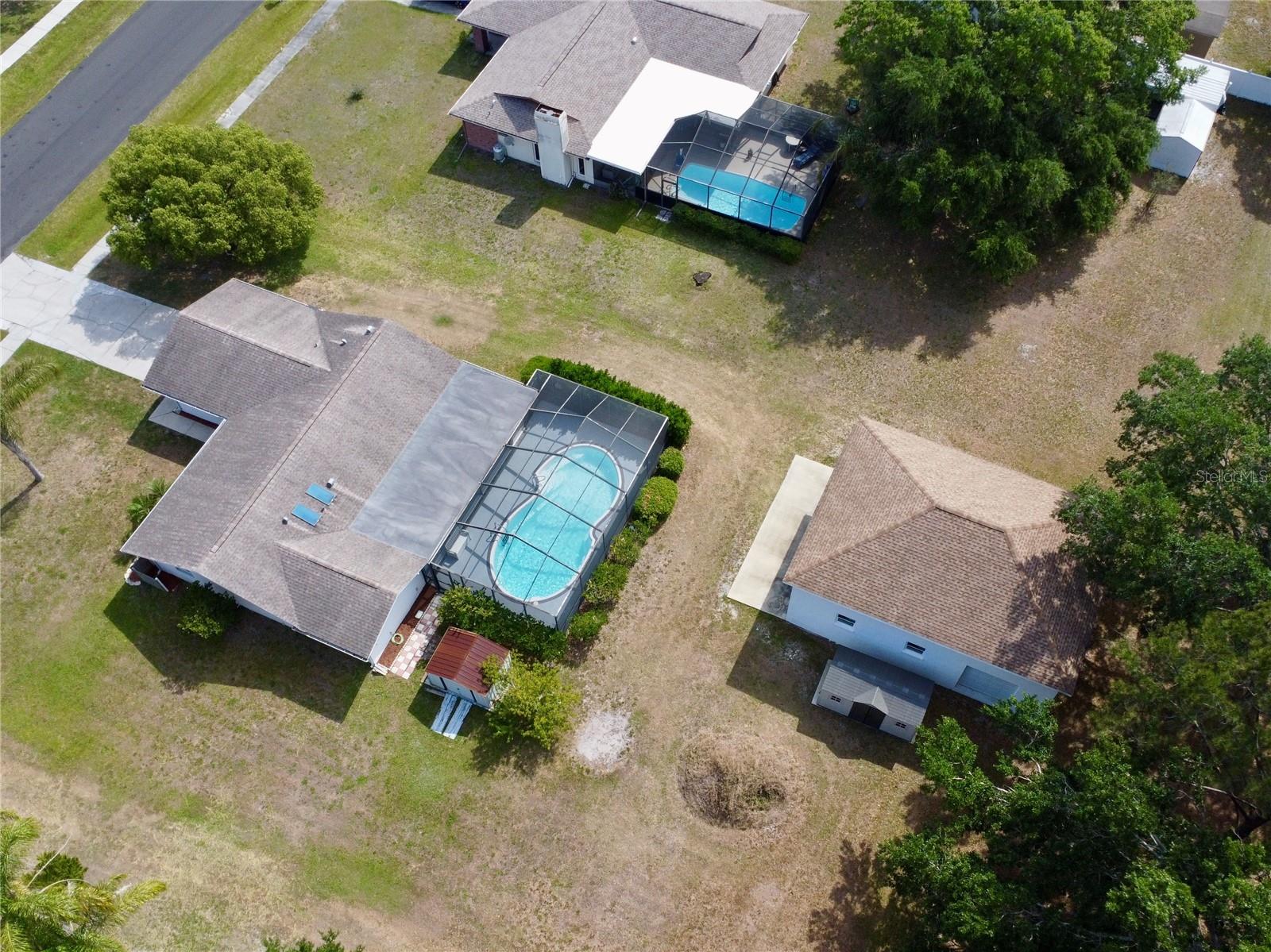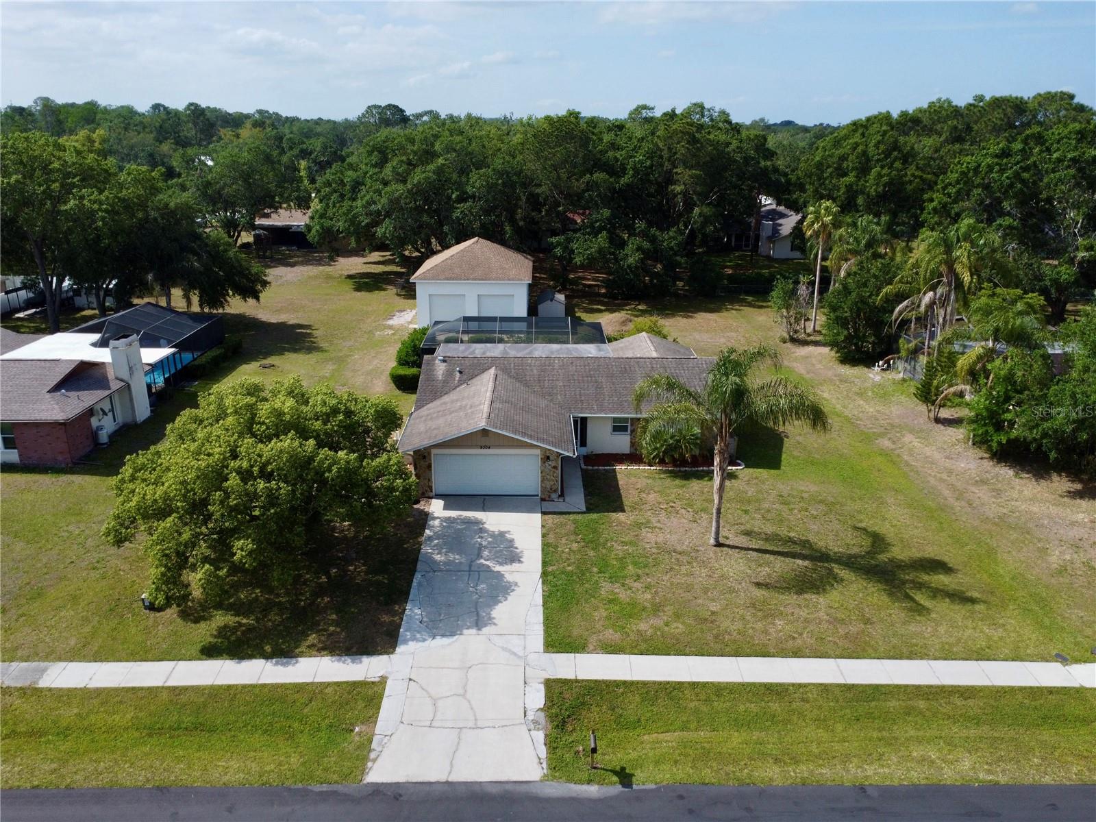 If you’re looking for a spacious home that offers the perfect balance of comfort, functionality, and room to entertain—this is the one! Nestled on a generous half-acre lot in the highly sought-after community of Riverside Village, this property is a rare gem that seamlessly blends indoor charm with the best of outdoor Florida living. Step into your own private oasis featuring an in-ground saltwater pool, perfect for refreshing dips or weekend gatherings. The expansive covered lanai provides the ideal space for outdoor dining, relaxing, or simply enjoying the serene view of your lush backyard. A standout feature is the massive 1,200 sq ft detached garage/workshop (30'x40'x14'), offering endless possibilities for hobbies, storage, or even a home-based business. Features 2-10'x10' and 1-8'x8' hurricane-rated roll up doors, track jack openers and locks. Hurricane windows, 6" thick re enforced concrete slab and re enforced concrete block construction it’s built to last and tucked privately in the rear of the property. Inside, the home boasts a bright open-concept layout, thoughtfully designed for both everyday living and entertaining. Recent upgrades include hurricane-impact windows and solid core interior doors, providing peace of mind and energy efficiency. Tankless Water Heater 2025, AC 2019, Roof 2015. Newer stainless steel appliances. Newer skylights in both bathrooms. Natural light fills the airy living spaces, enhancing the home’s welcoming atmosphere. Located just minutes from shopping centers, top-rated schools, restaurants, parks, and public sports facilities, this property combines space, privacy, and convenience in one unbeatable package. Homes like this don’t come along often. No HOA, No CDD, schedule your private showing today and make this one-of-a-kind property yours!
