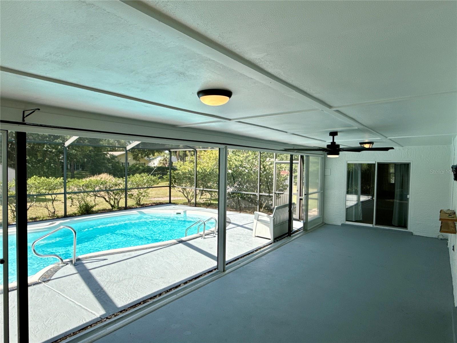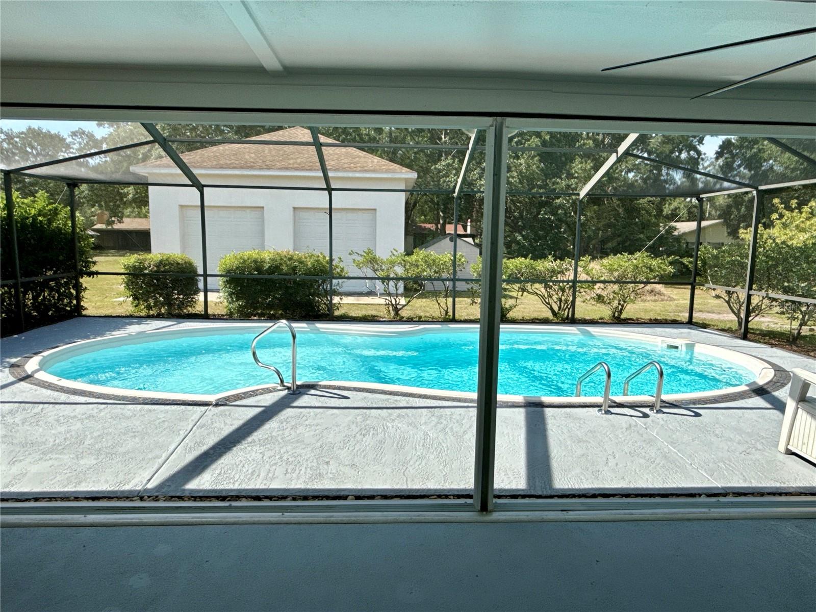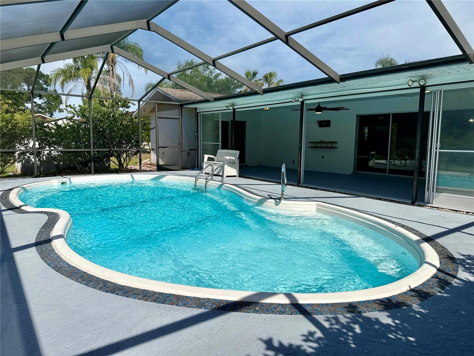 If you’re looking for a spacious home that offers the perfect balance of comfort, functionality, and room to entertain—this is the one! Nestled on a generous half-acre lot in the highly sought-after community of Riverside Village, this property is a rare gem that seamlessly blends indoor charm with the best of outdoor Florida living. Step into your own private oasis featuring an in-ground saltwater pool, perfect for refreshing dips or weekend gatherings. The expansive covered lanai provides the ideal space for outdoor dining, relaxing, or simply enjoying the serene view of your lush backyard. A standout feature is the massive 1,200 sq ft detached garage/workshop (30'x40'x14'), offering endless possibilities for hobbies, storage, or even a home-based business. Features 2-10'x10' and 1-8'x8' hurricane-rated roll up doors, track jack openers and locks. Hurricane windows, 6" thick re enforced concrete slab and re enforced concrete block construction it’s built to last and tucked privately in the rear of the property. Inside, the home boasts a bright open-concept layout, thoughtfully designed for both everyday living and entertaining. Recent upgrades include hurricane-impact windows and solid core interior doors, providing peace of mind and energy efficiency. Tankless Water Heater 2025, AC 2019, Roof 2015. Newer stainless steel appliances. Newer skylights in both bathrooms. Natural light fills the airy living spaces, enhancing the home’s welcoming atmosphere. Located just minutes from shopping centers, top-rated schools, restaurants, parks, and public sports facilities, this property combines space, privacy, and convenience in one unbeatable package. Homes like this don’t come along often. No HOA, No CDD, schedule your private showing today and make this one-of-a-kind property yours!
