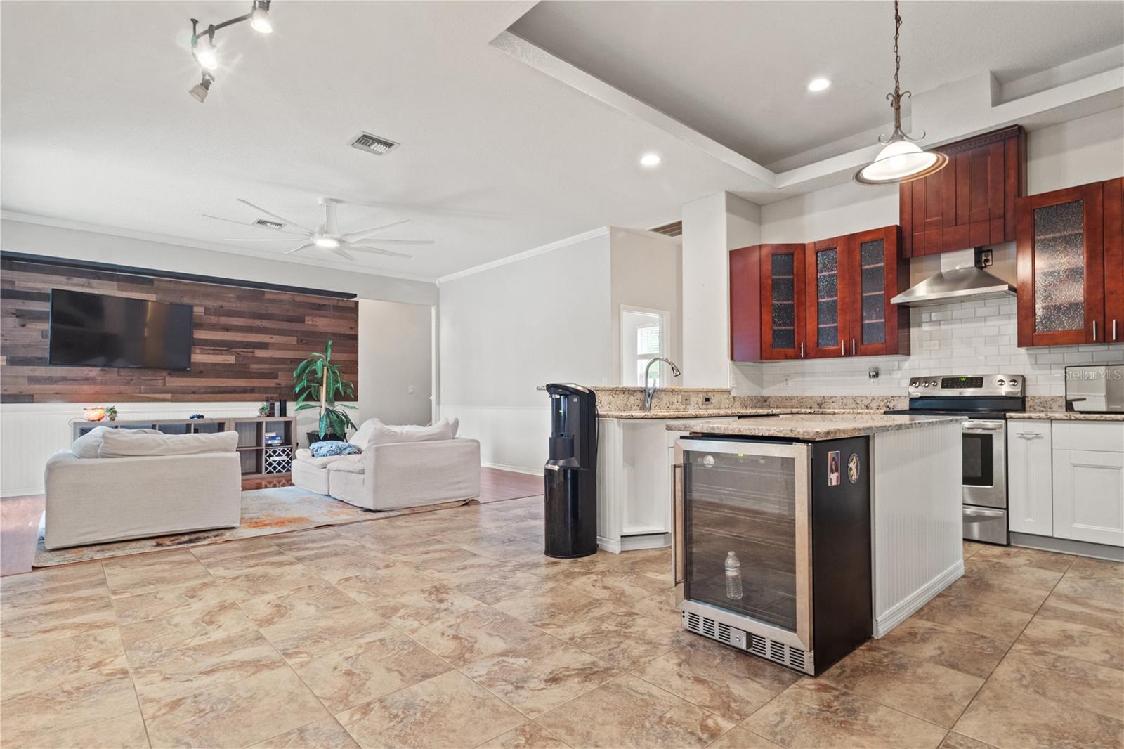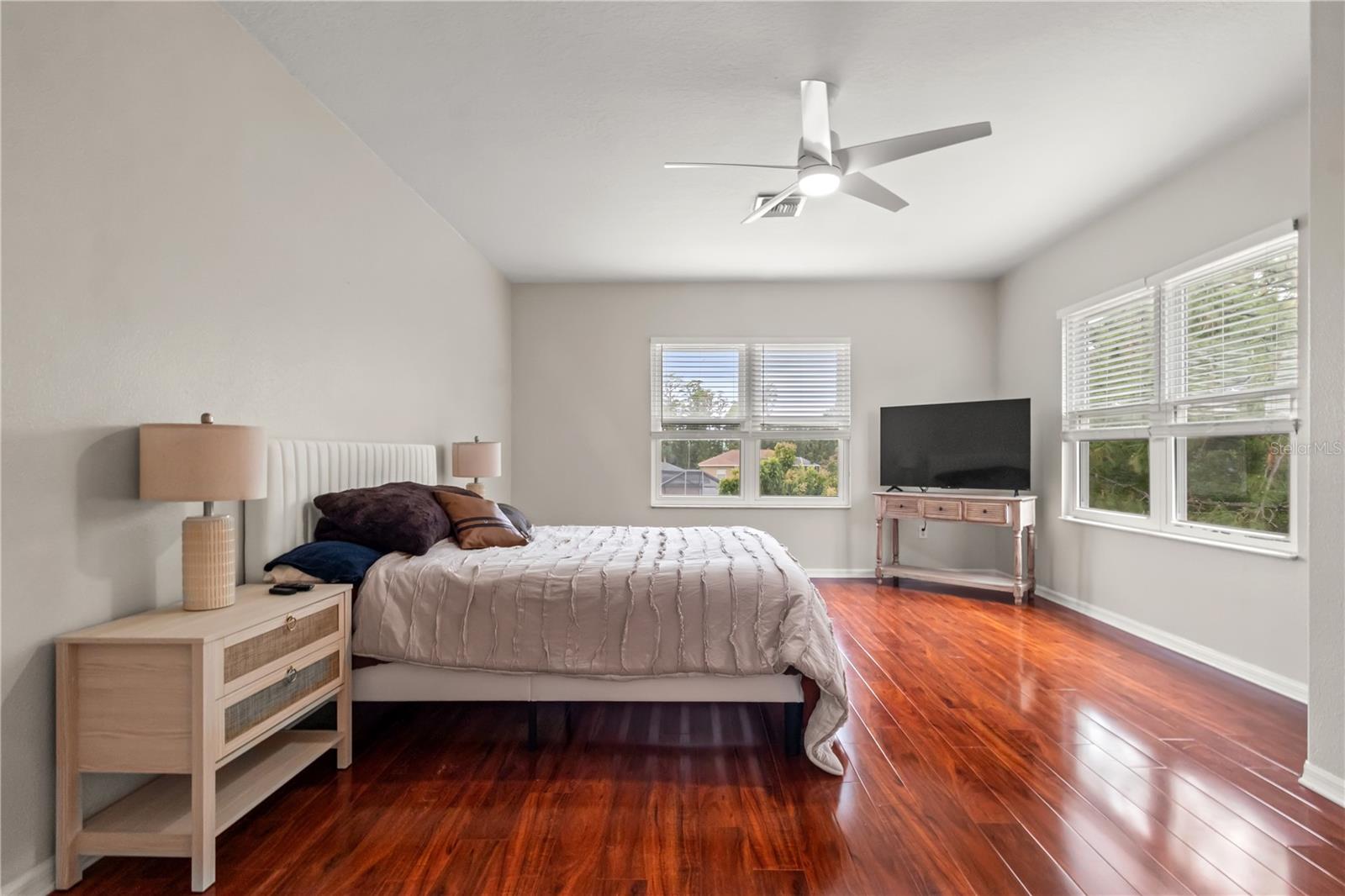 Welcome to this beautifully updated 6-bedroom, 4-bathroom single-family home featuring three luxurious primary suites, ideal for multi-generational living or guest accommodations. Nestled in a quiet neighborhood with no rear neighbors, this spacious 3,292 sq ft home is perfect for families seeking privacy, comfort, and modern amenities. Enjoy a private pool with a screened-in lanai, a newly updated roof (2022), AC (2018), and water heater (2022), along with an upgraded irrigation system and exterior (2025). Inside, you'll find fresh interior paint (2024), an updated pool filter system (2024), and a combination of ceramic tile and luxury vinyl flooring (2025). The renovated kitchen and updated bedrooms give stylish and functional living spaces, while French doors open to the outdoor area for seamless indoor-outdoor living. Additional highlights include walk-in closets, ceiling fans, crown molding, and custom blinds/shades. A 3-car garage, paved driveway, low HOA fees ($122 quarterly), and a pet-friendly policy make this home even more appealing. This home is an entertainer’s dream, offering an expansive open layout perfect for family gatherings and a backyard oasis surrounded by mature trees for ultimate relaxation. Located in a sought-after community with convenient access to shopping, amenities, and top-rated schools, this exceptional home offers the perfect blend of space, style, and convenience. Don’t miss the opportunity to make it yours—schedule your private showing today!